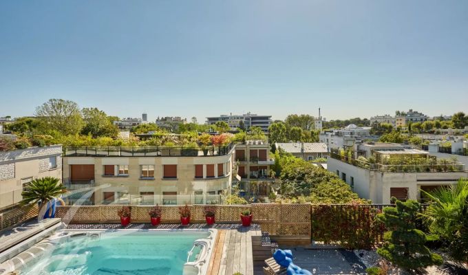 Con vistas a los jardines de Ranelagh y a la Torre Eiffel sin obstáculos, este piso de ...