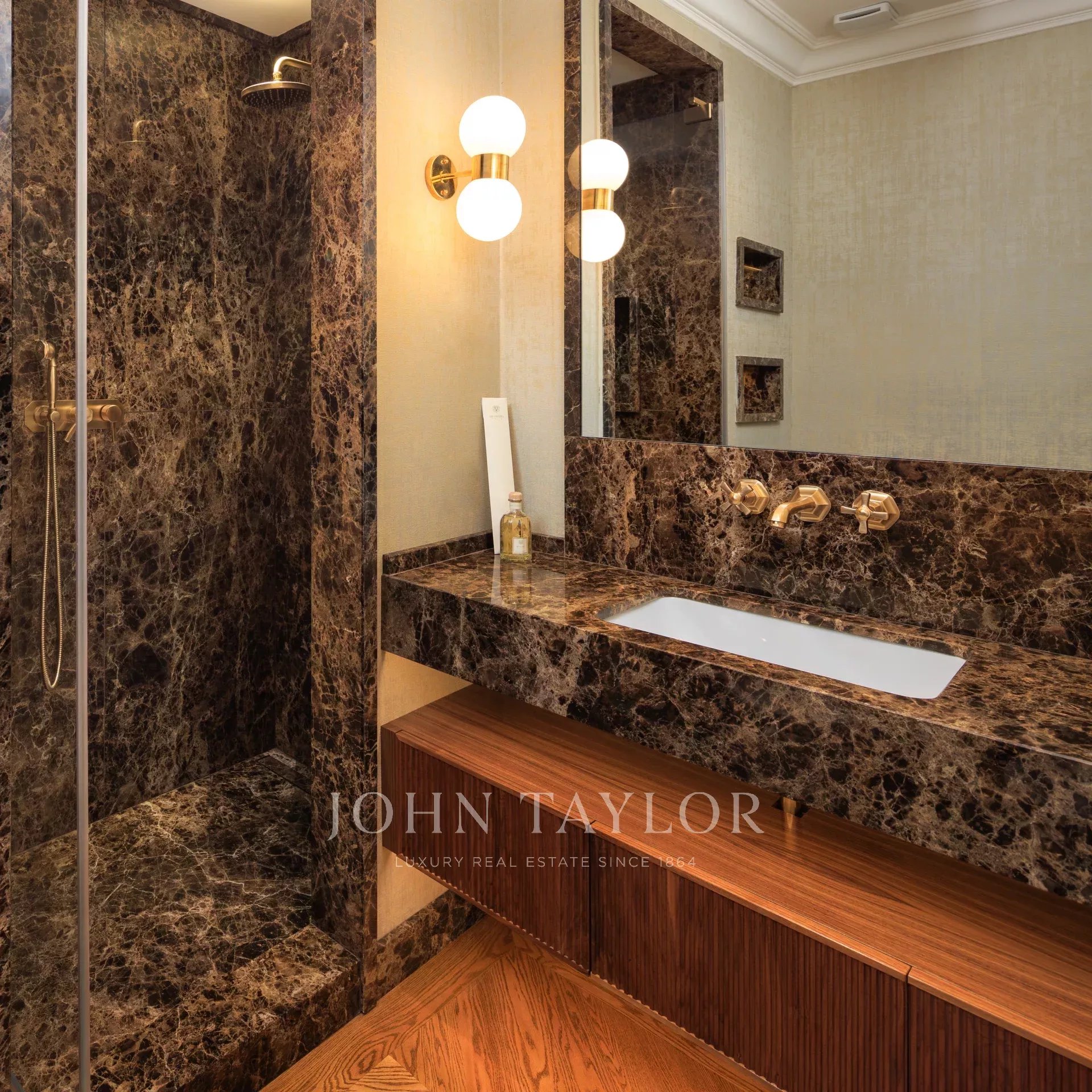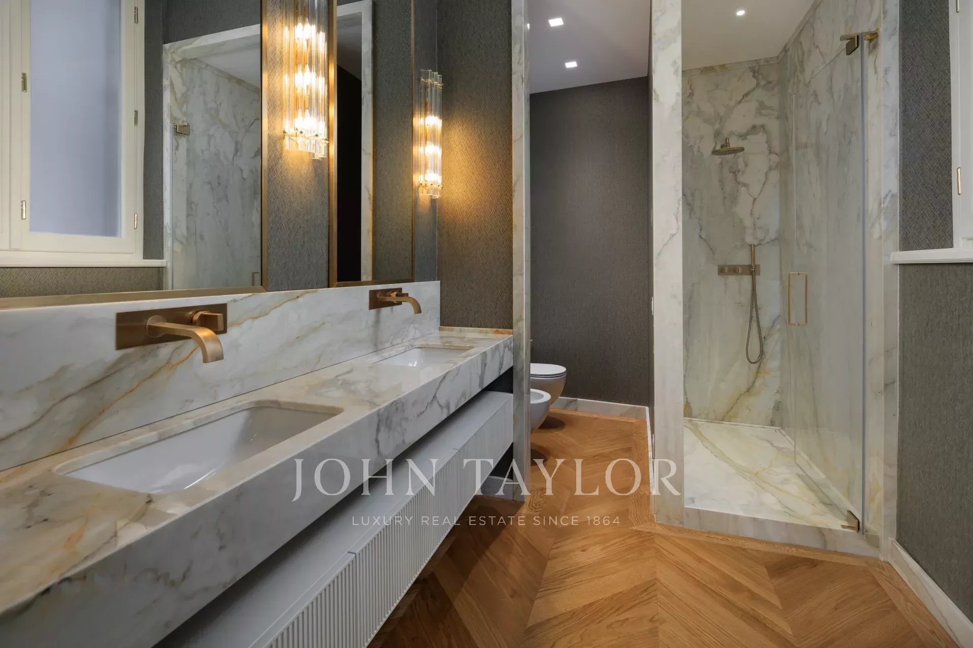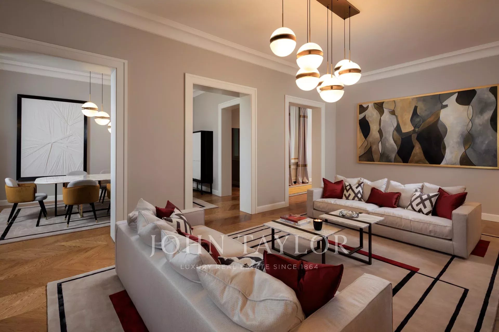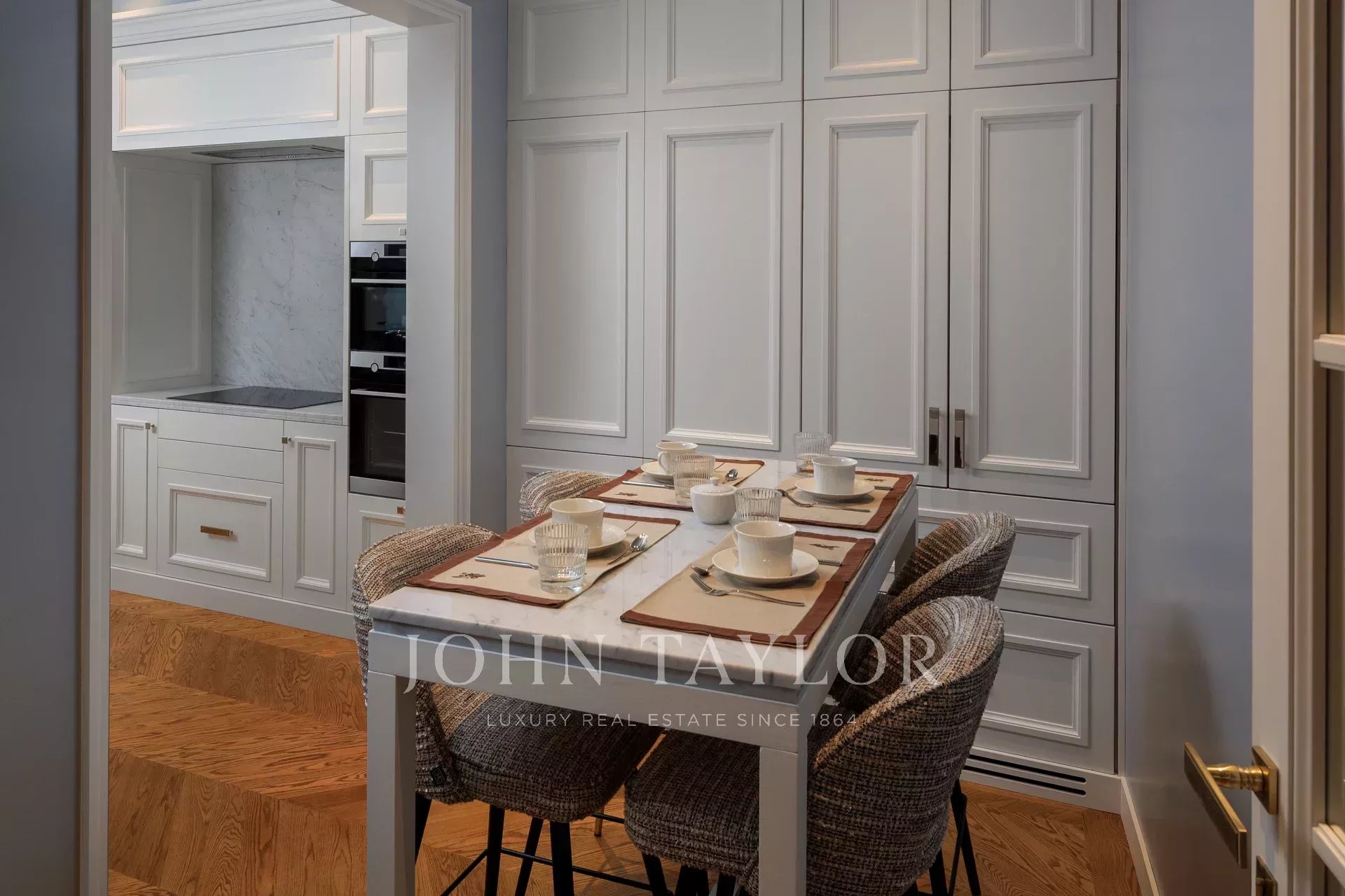 Compuesto por cuatro habitaciones suntuosamente amuebladas, cada una con su cuarto de baño privado de mármol, el piso combina confort y refinamiento.