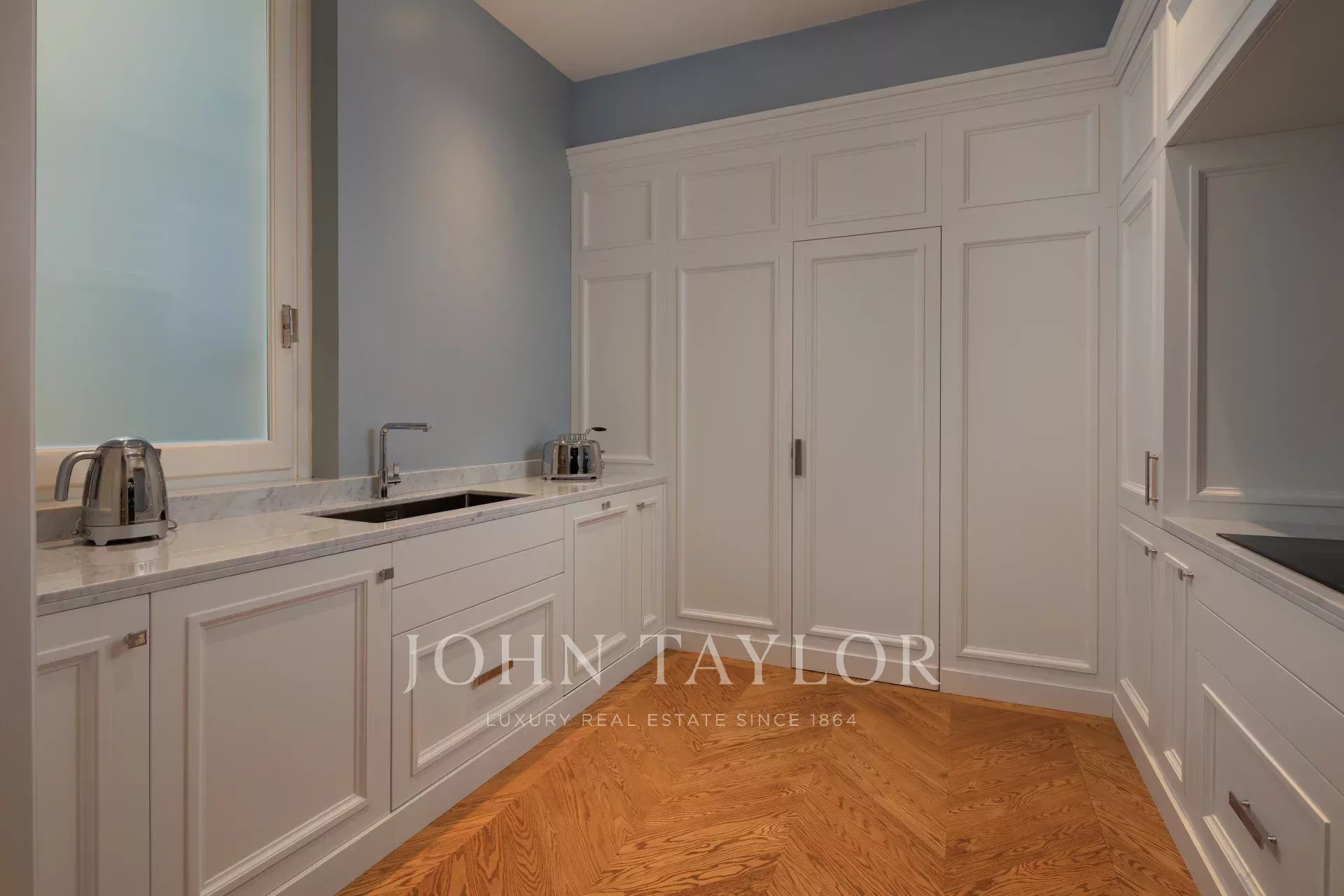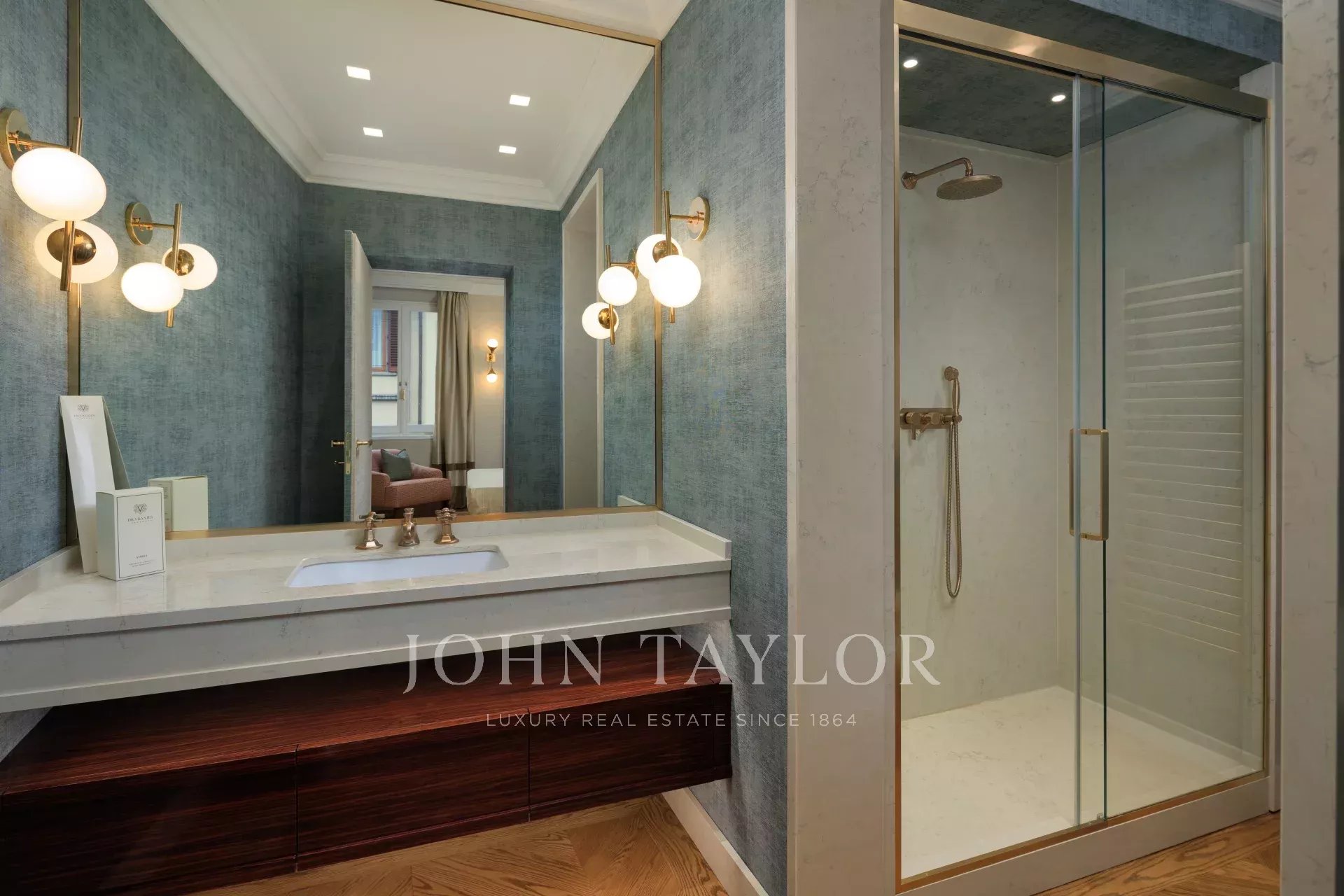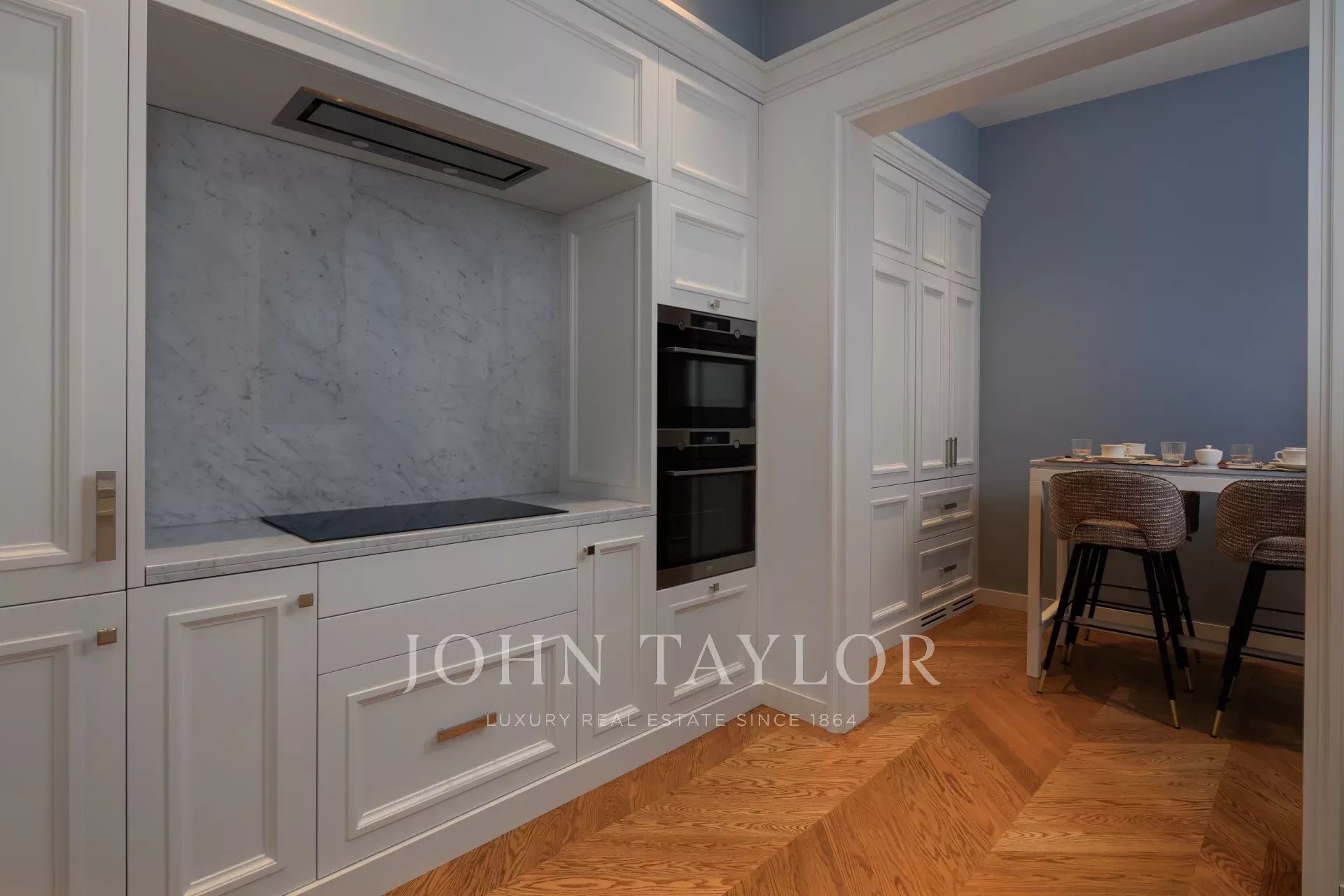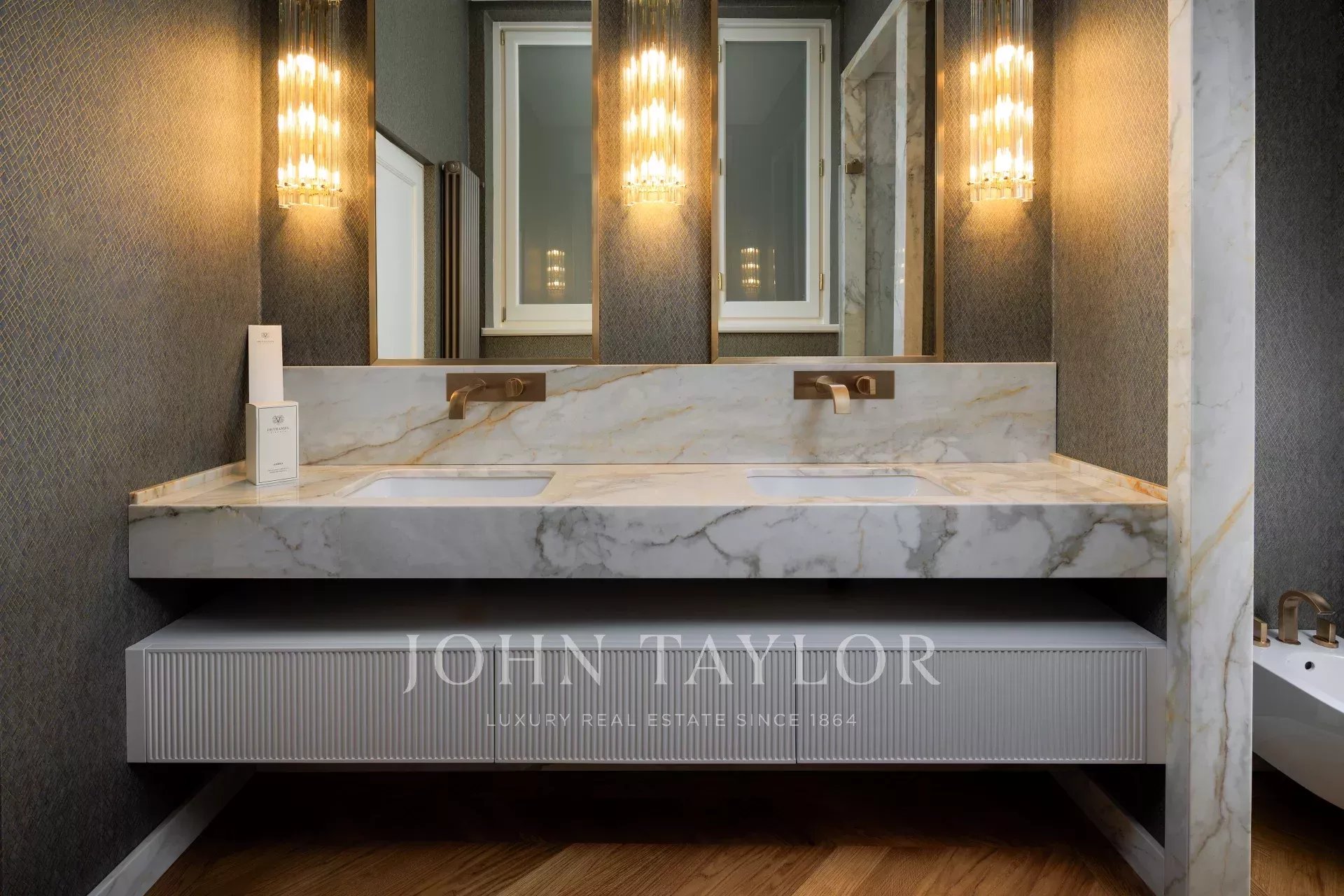 Compuesto por cuatro habitaciones suntuosamente amuebladas, cada una con su cuarto de baño privado de mármol, el piso combina confort y refinamiento.