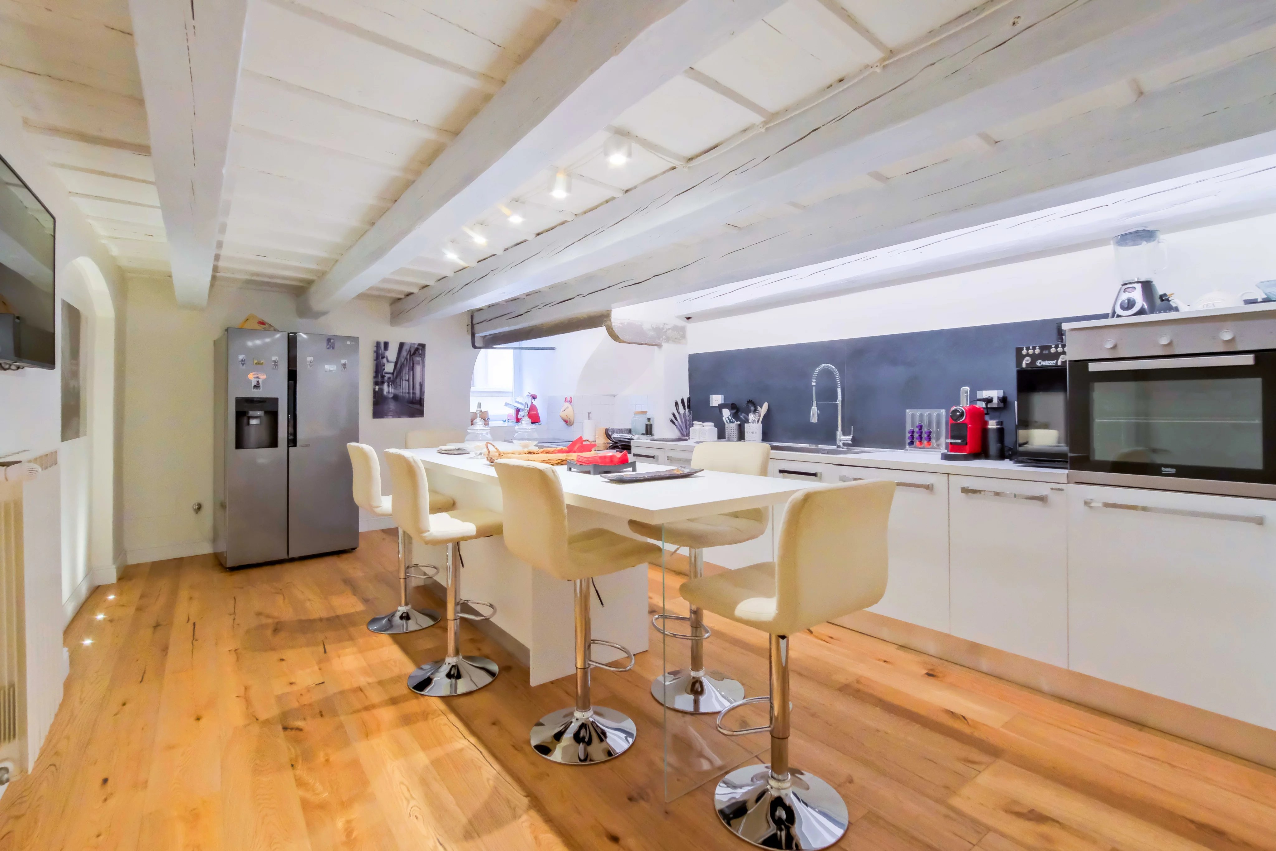 El comedor, amplio y luminoso, se convierte en el lugar perfecto para reuniones y celebraciones. Este apartamento no solo ofrece un refugio encantador, sino que también se encuentra cerca de los principales puntos de interés de la ciudad, permitiendo a sus residentes disfrutar plenamente del encanto y la cultura florentina.