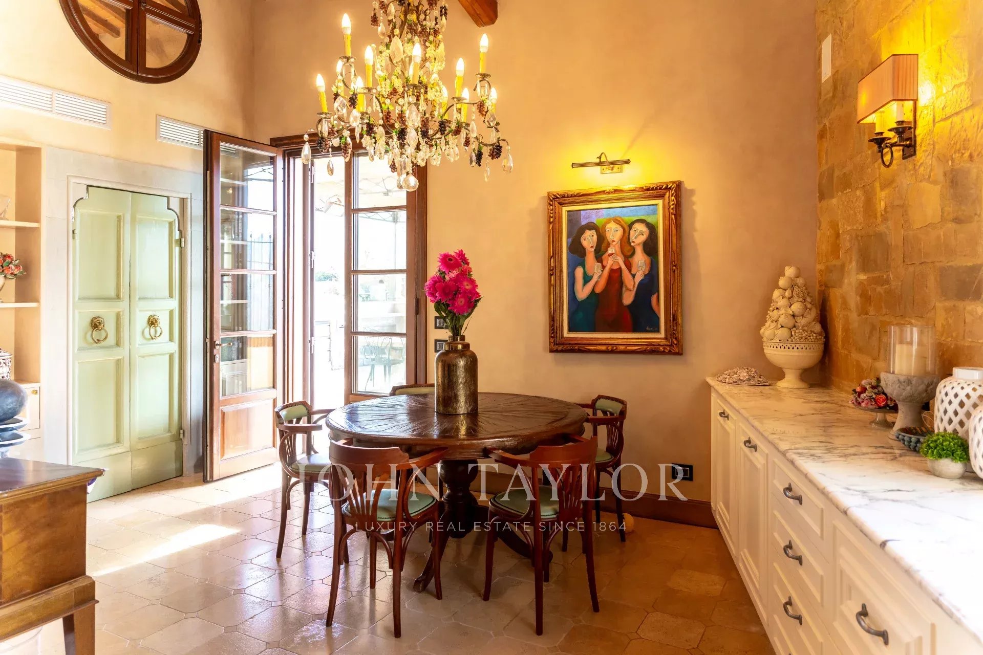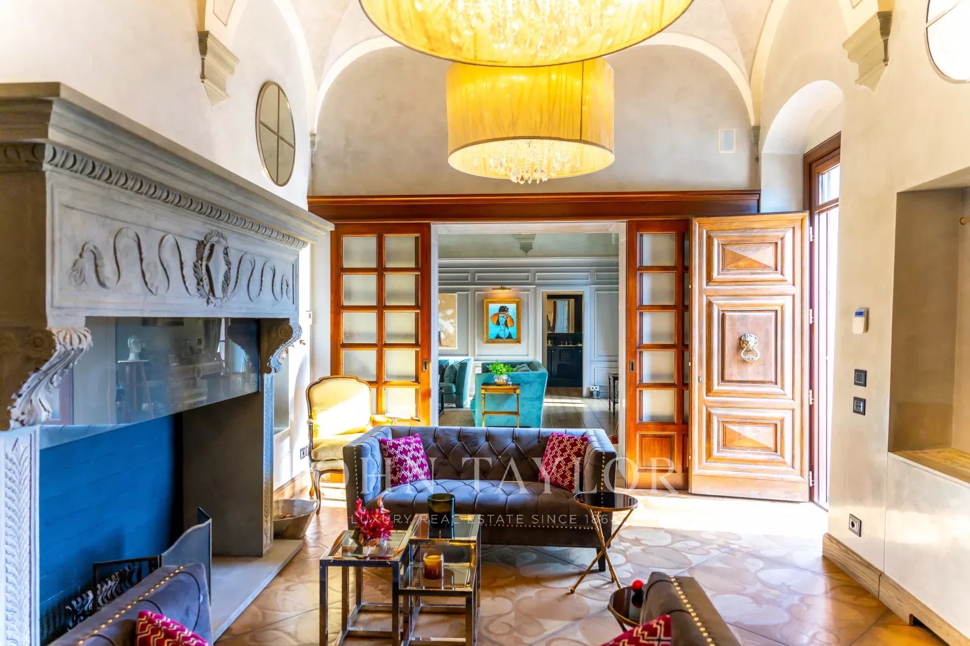Ubicada en la prestigiosa zona de Poggio Imperiale, esta villa histórica meticulosamente restaurada, a sólo 4 km de la Escuela Internacional de Florencia y muy cerca de la Villa Medicea, ofrece una cautivadora mezcla de historia y lujo. Con una superficie de 480 m2, la propiedad cuenta con cinco dormitorios, un gimnasio privado y amplias zonas de estar adornadas con decoraciones y frescos originales.