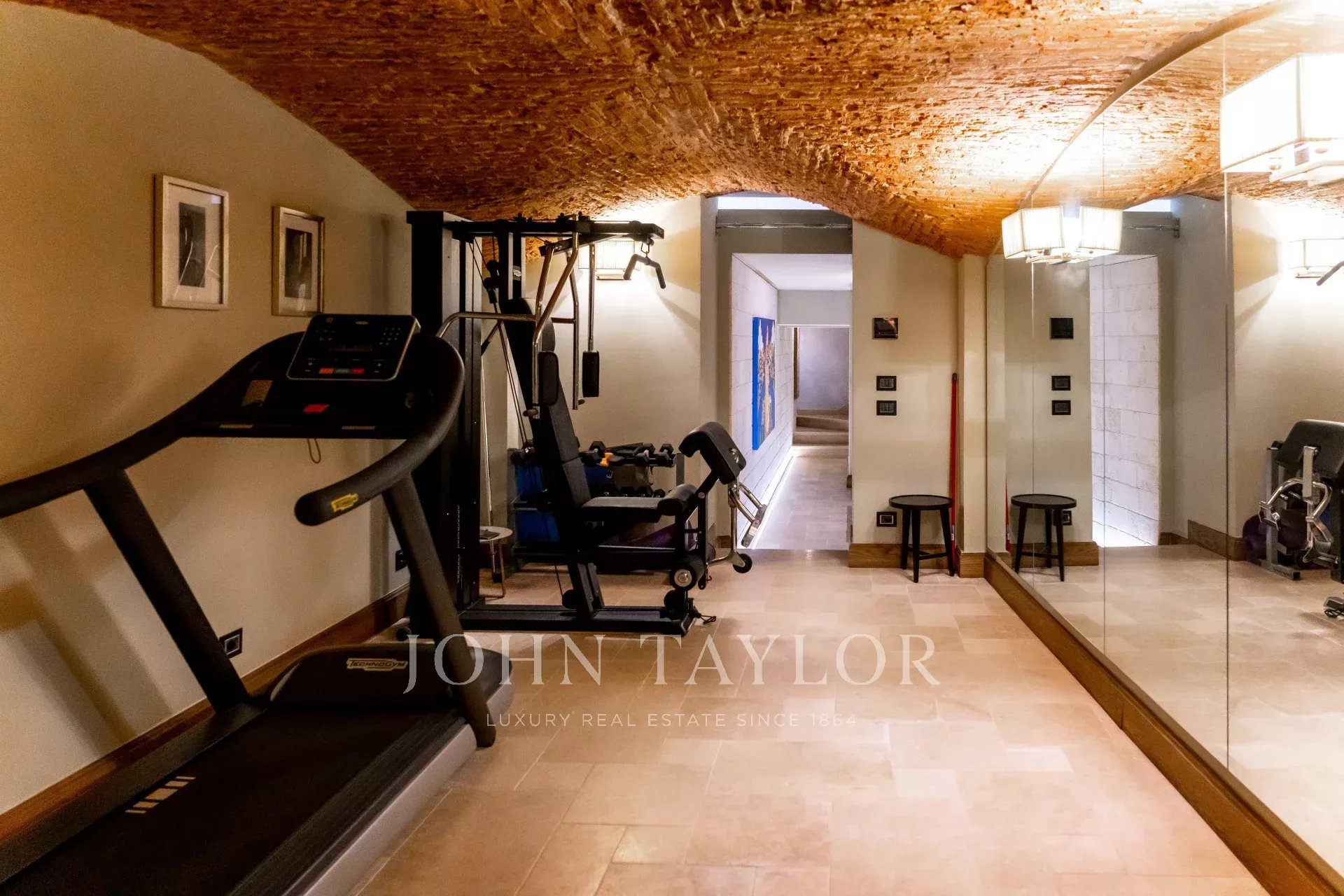 En la planta baja, las antiguas bodegas de la villa se han transformado en un gimnasio privado y un dormitorio de invitados con baño en suite.