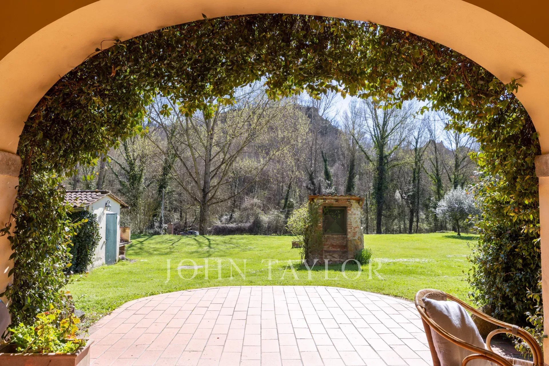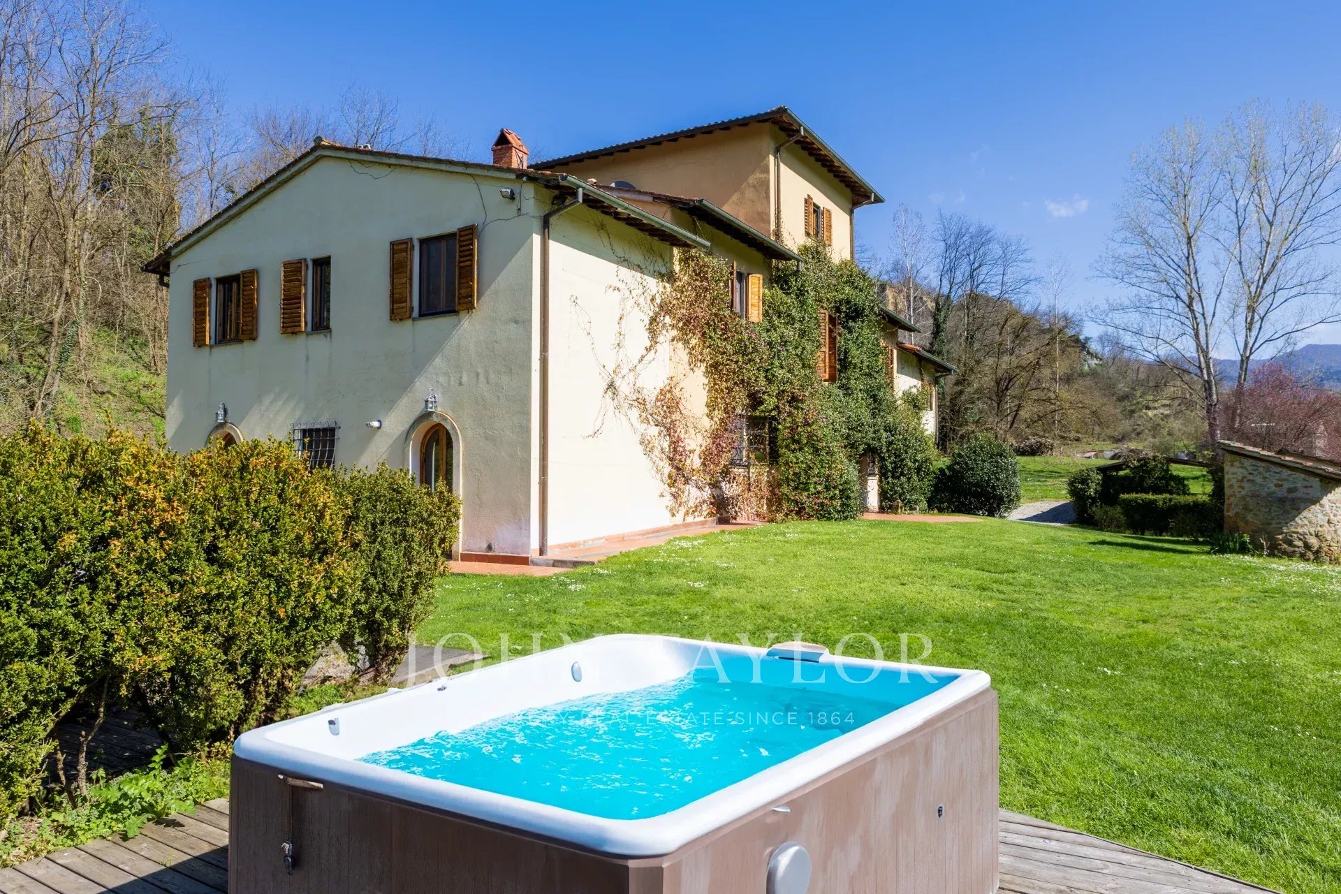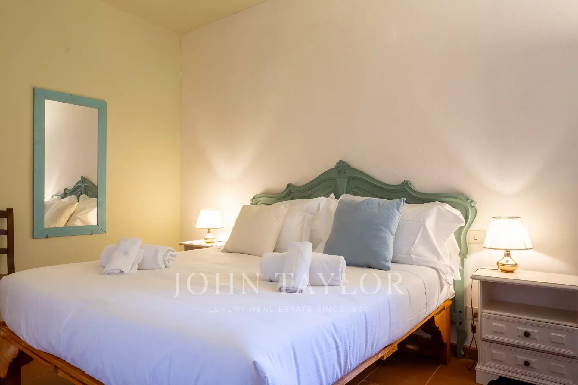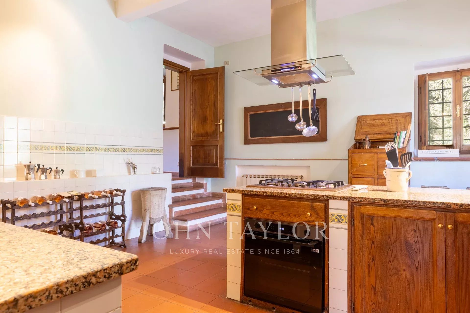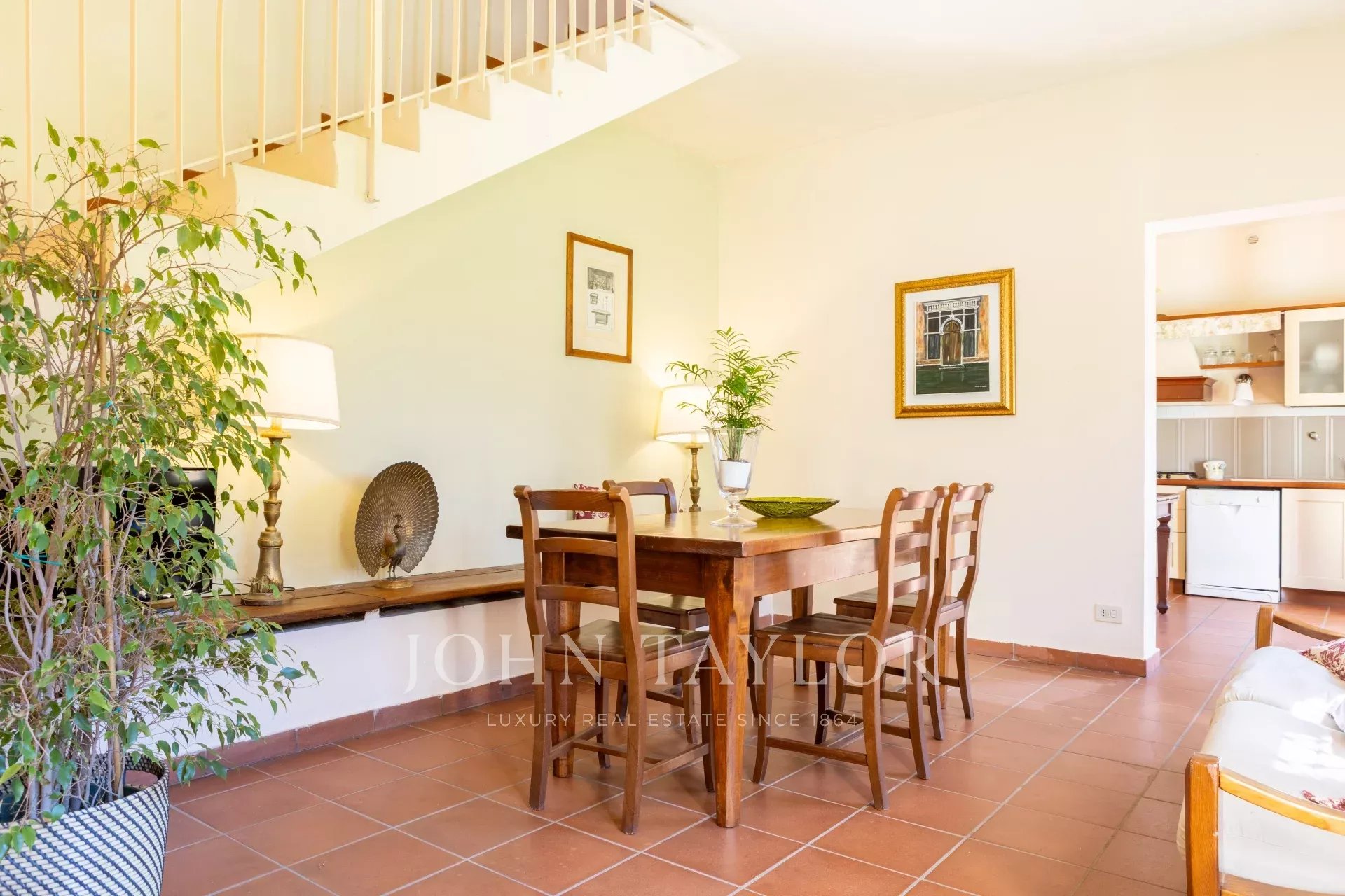La villa ofrece impresionantes vistas del valle, rodeado de olivares y árboles frutales. El interior está amueblado con gusto y cuenta con valiosas obras de arte y objetos, lo que proporciona una mezcla perfecta de comodidad y elegancia para familias y amantes de la naturaleza.