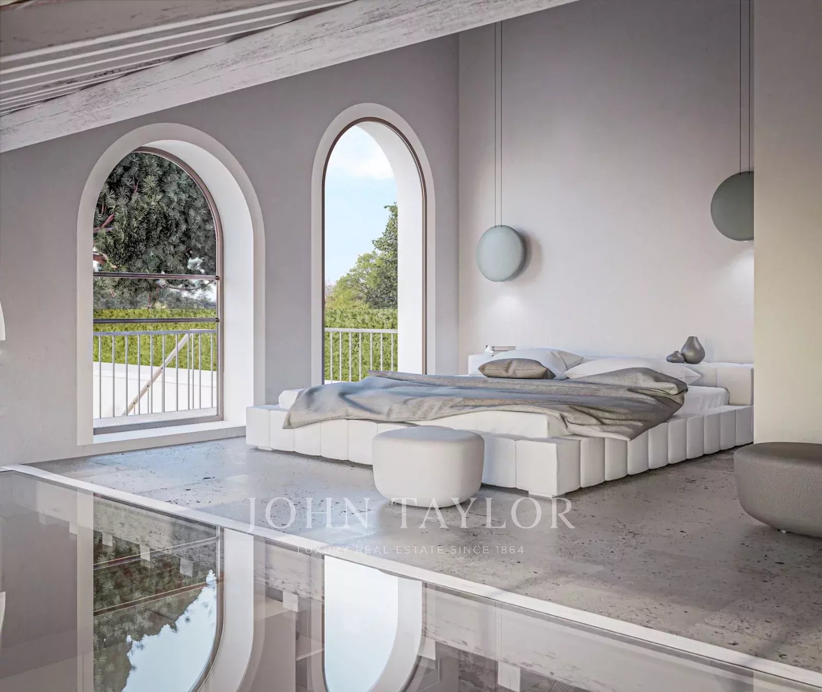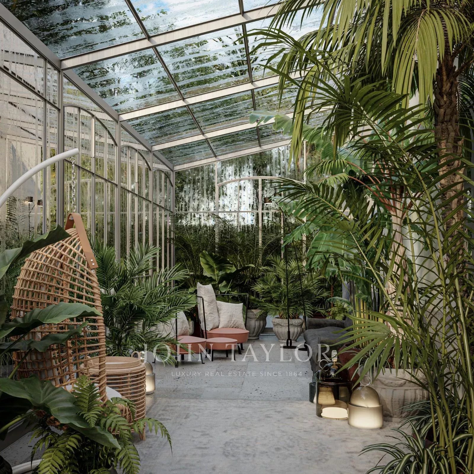 En la planta baja hay un gran vestíbulo central, un estudio, una cocina, un dormitorio con baño en suite y un maravilloso invernadero. En la primera planta hay un amplio salón central con un romántico balcón con vistas al parque y 5 habitaciones dobles, 2 de ellas con baño. En la segunda planta, hay otra amplia zona central, 5 dormitorios dobles y 2 cuartos de baño. La planta ático completa la villa principal con un gran salón diáfano, cocina de servicio, 3 dormitorios dobles y 2 baños.