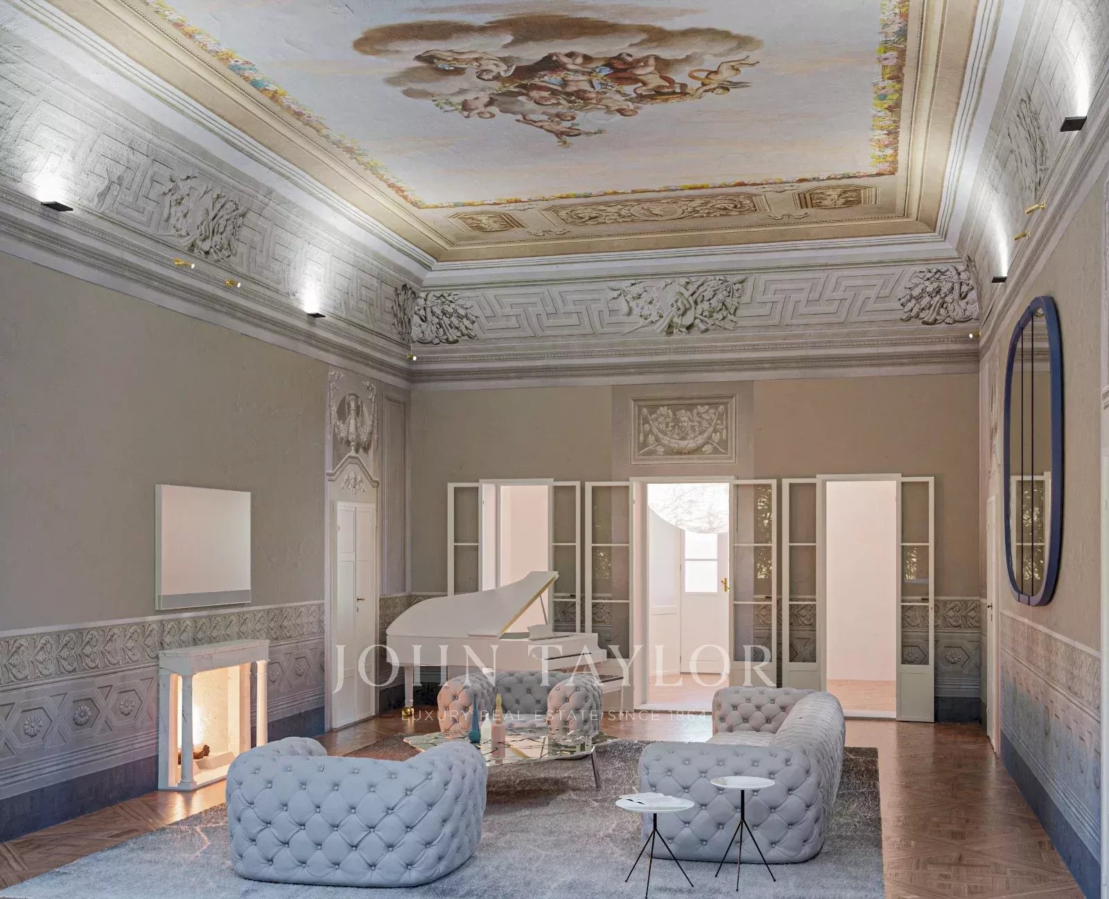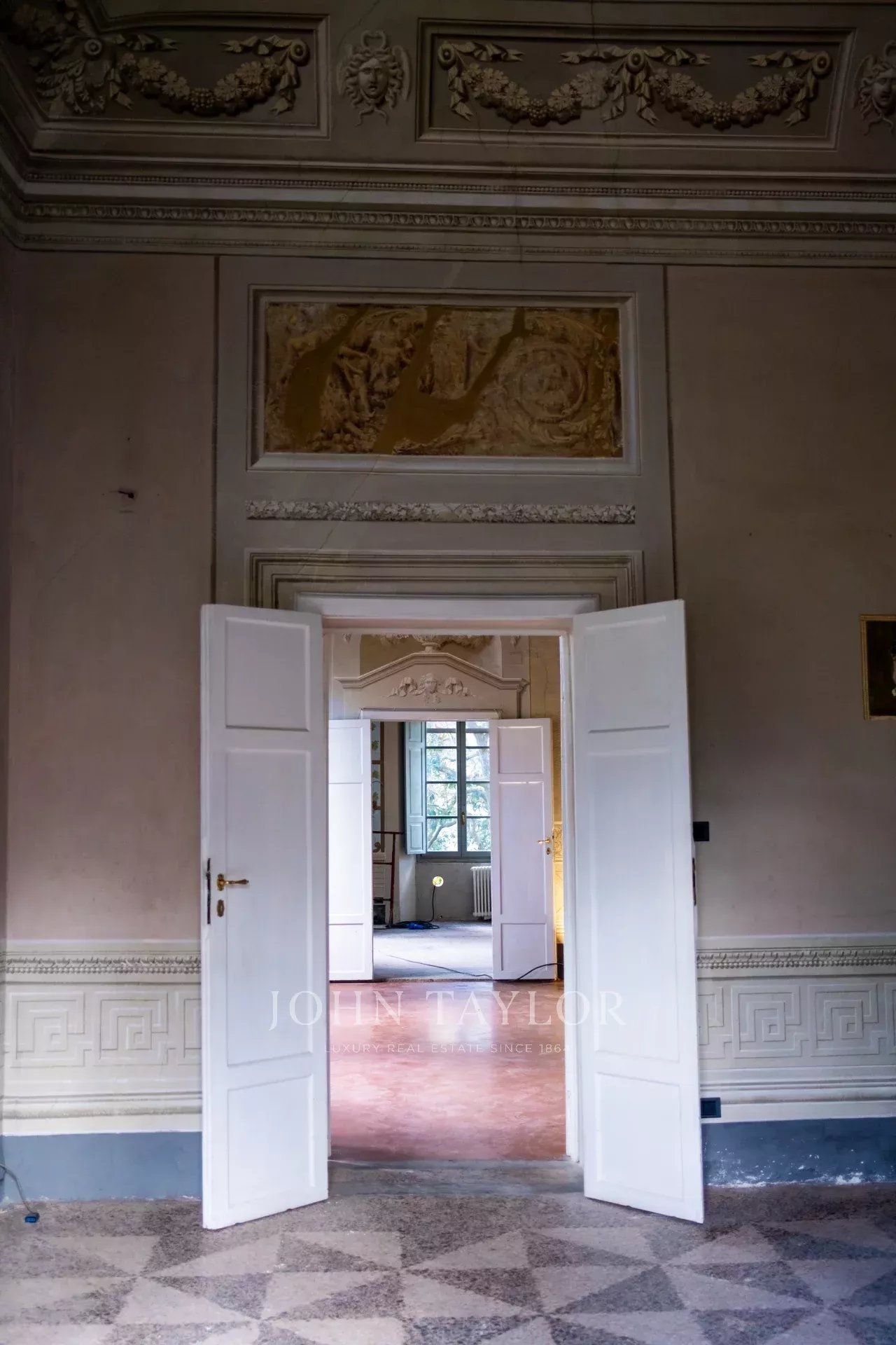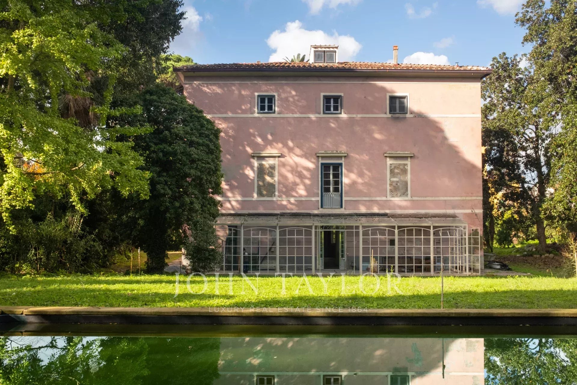 Esta impresionante villa del siglo XVII está situada a medio camino entre Pisa y Lucca, a lo largo de la antigua Ruta de la Seda. La mansión está inmersa en un extenso parque de 9500 m2, que originalmente fue un importante jardín botánico.