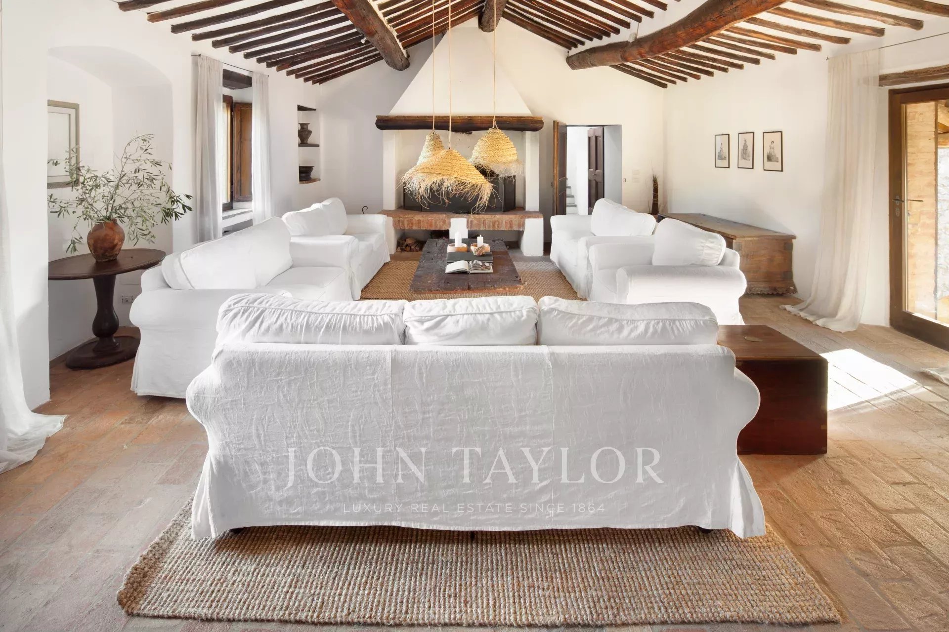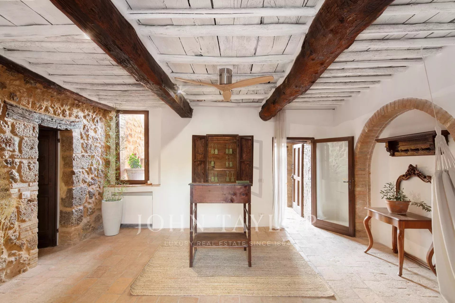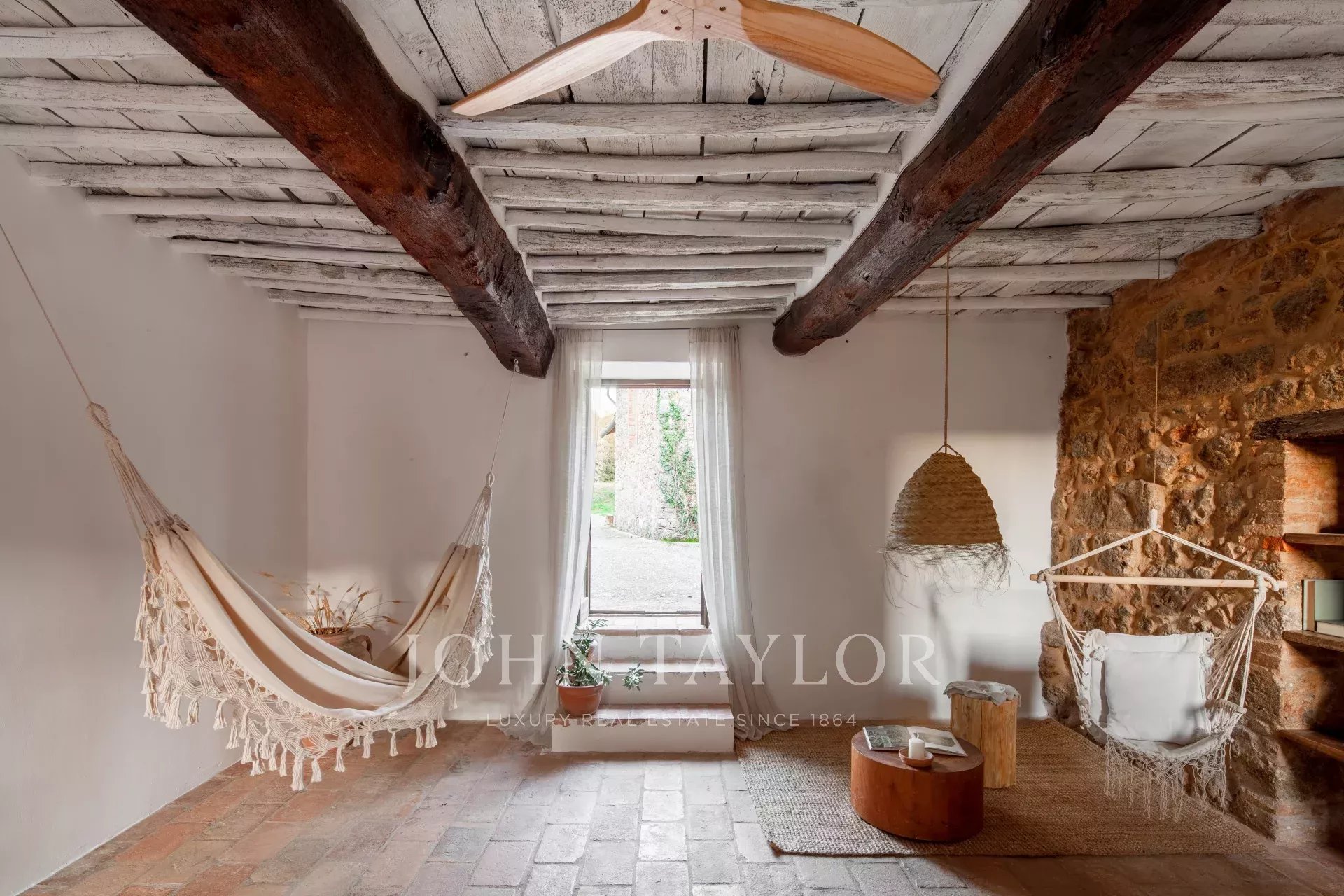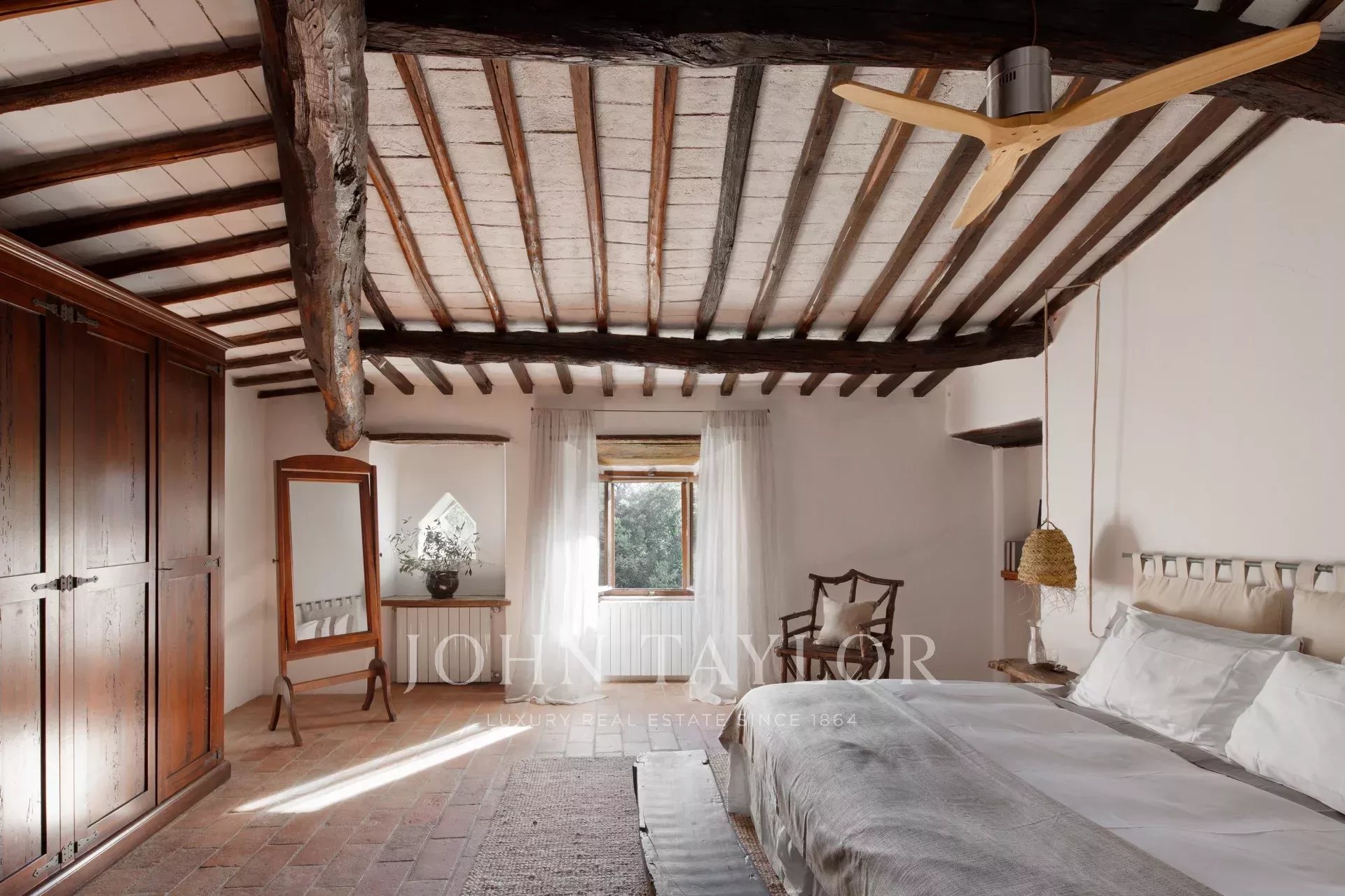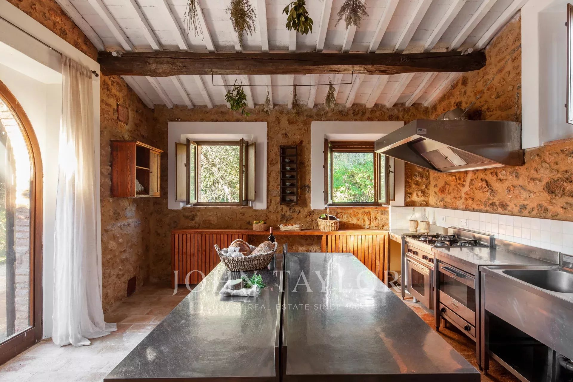 Situada en el corazón de la Toscana, esta propiedad ofrece vistas panorámicas de la campiña de Chianti Colli Senesi, a sólo 15 minutos en coche de Siena. La finca data del siglo XII y ha sido restaurada con buen gusto, conservando su carácter original con materiales naturales como piedra, terracota y vigas de madera.