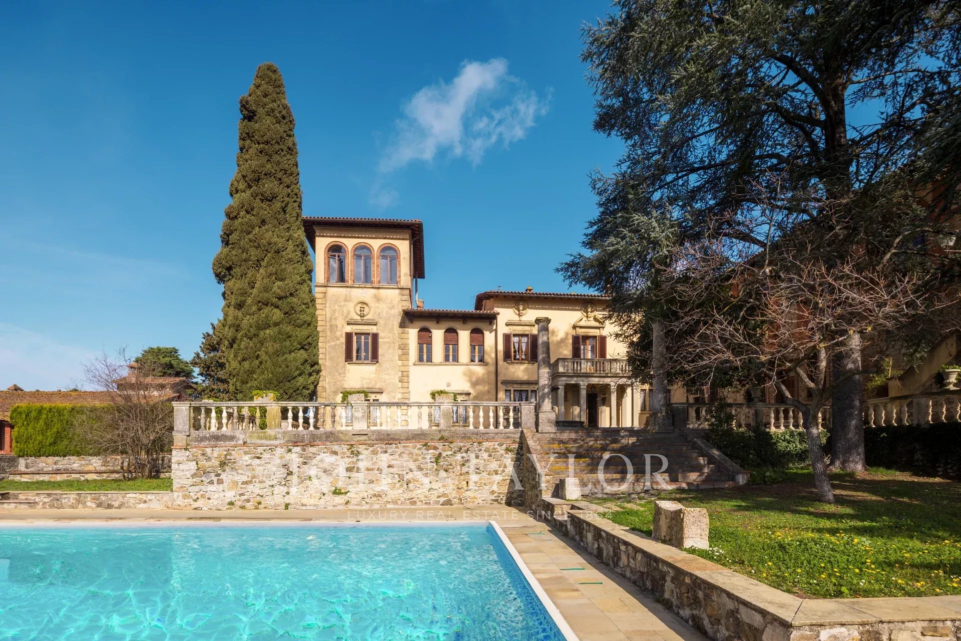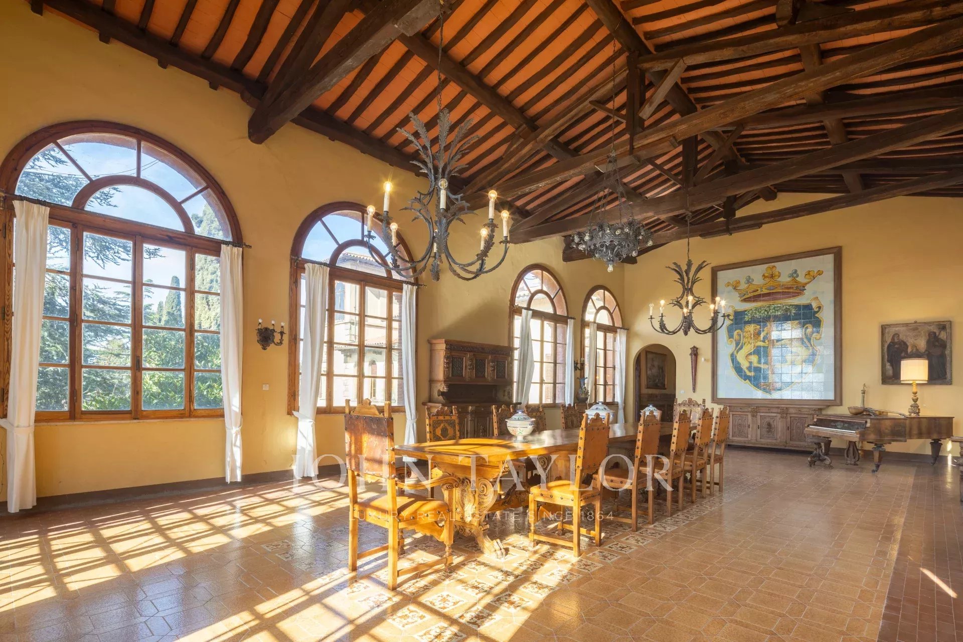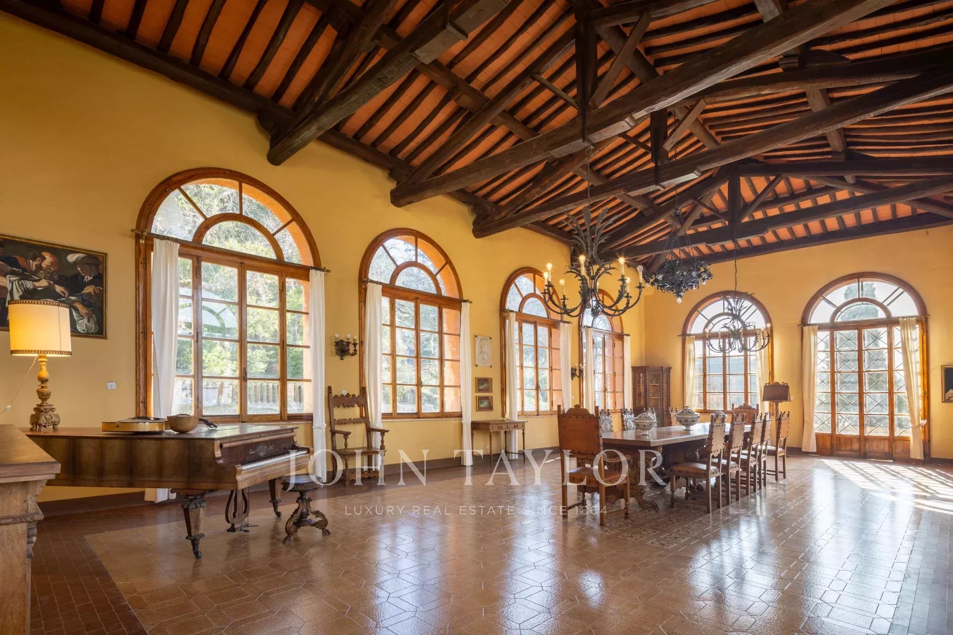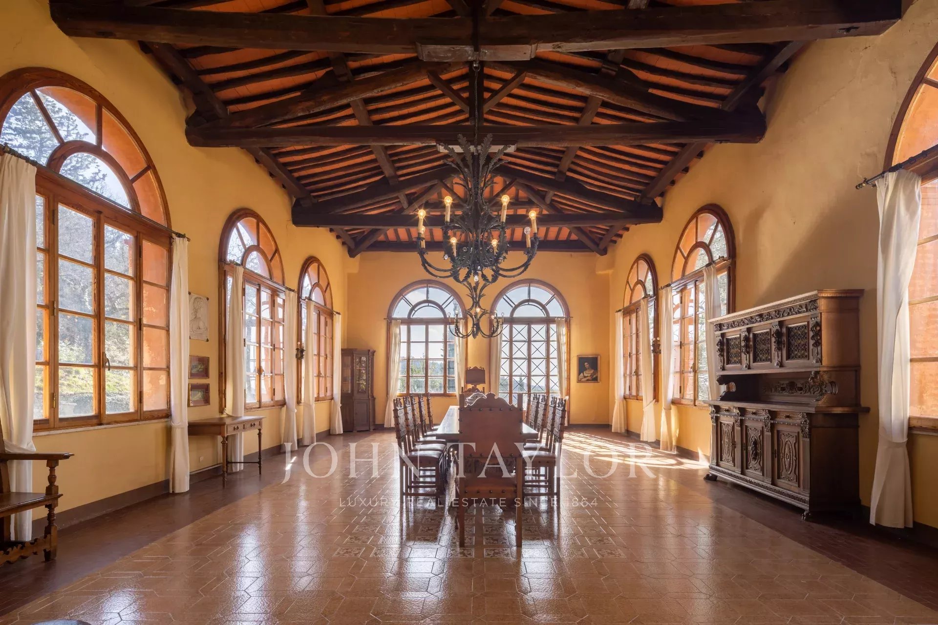 Con ocho habitaciones, cada una de ellas con baño privado, la villa destila encanto histórico y elegancia. En el interior, tres salones, dos comedores y una espaciosa cocina ofrecen un amplio espacio para reuniones.