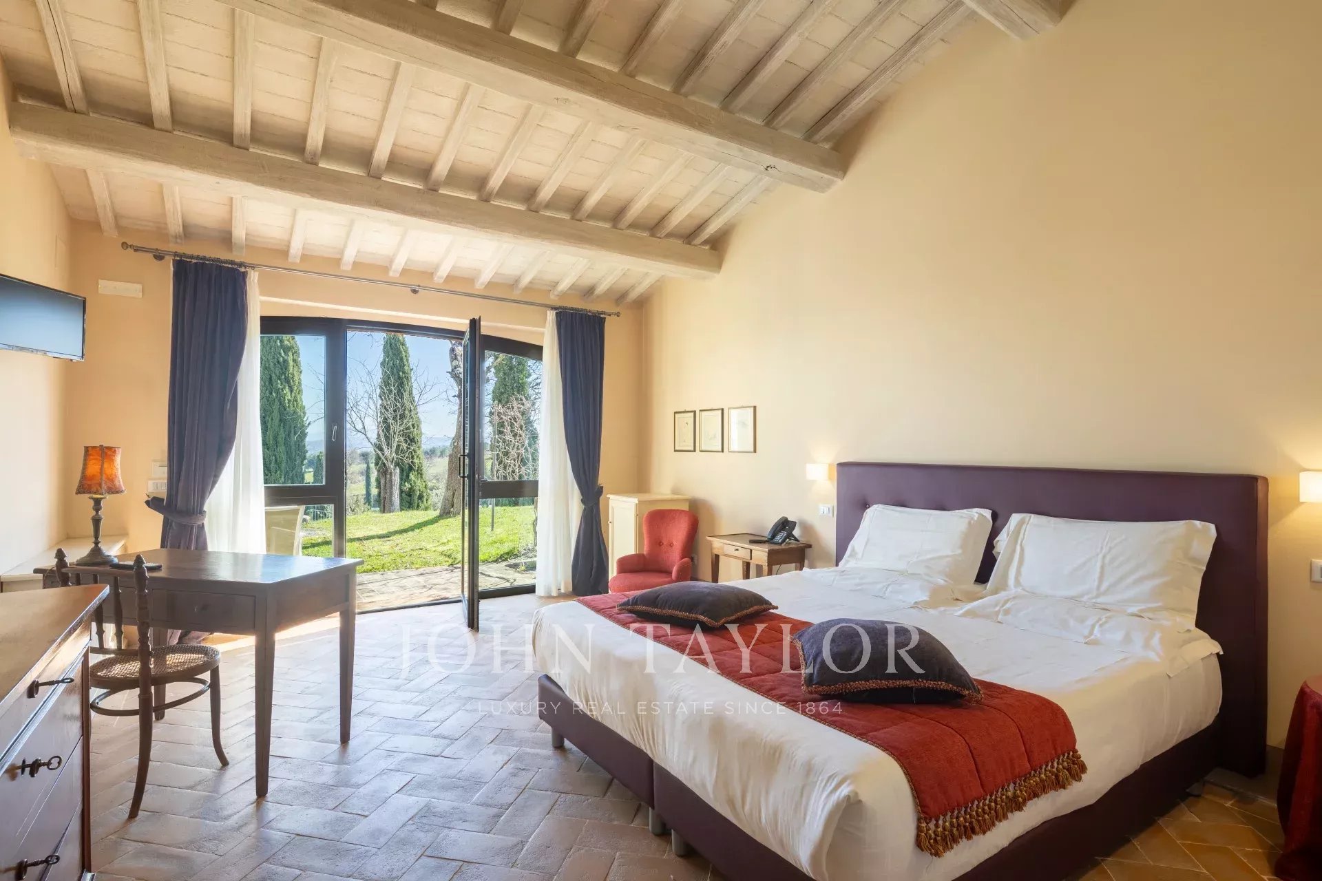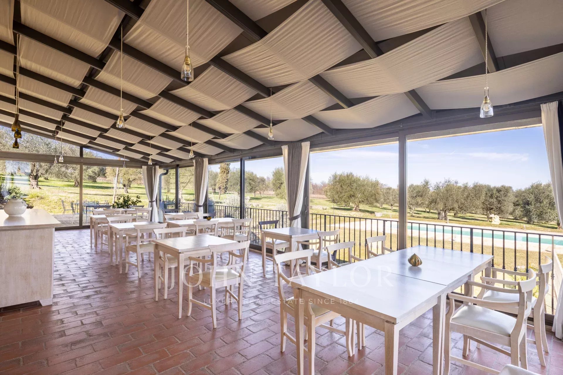 La finca principal es una villa totalmente renovada, con varios salones, una cocina, 8 habitaciones para invitados y 2 habitaciones adicionales para uso interno, que cubren 667 m2. Un anexo independiente ofrece 5 habitaciones más de 150 m2.