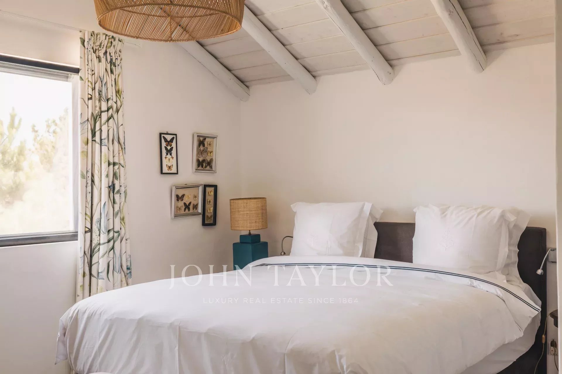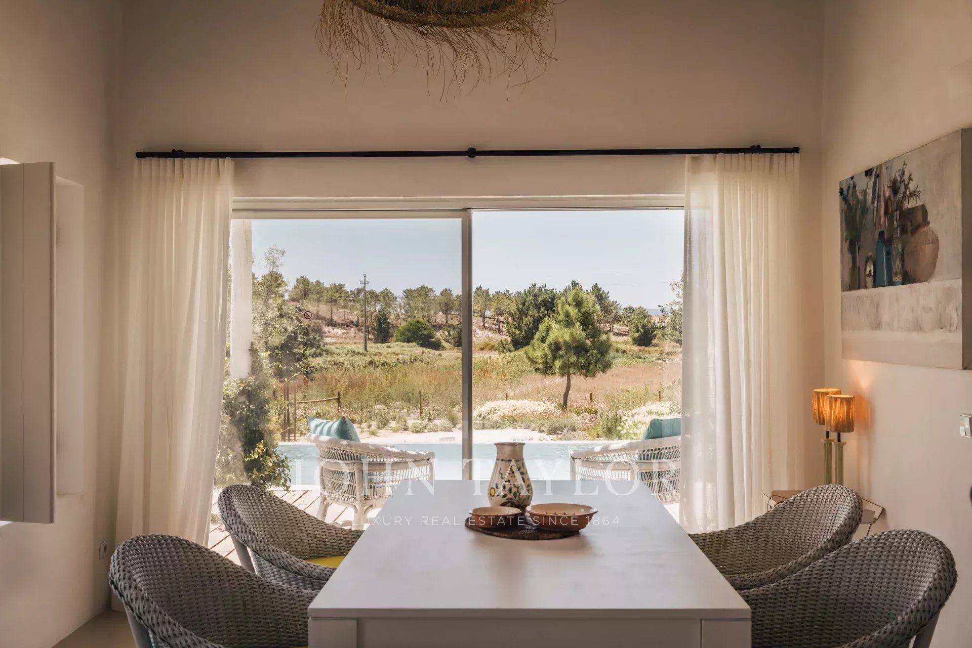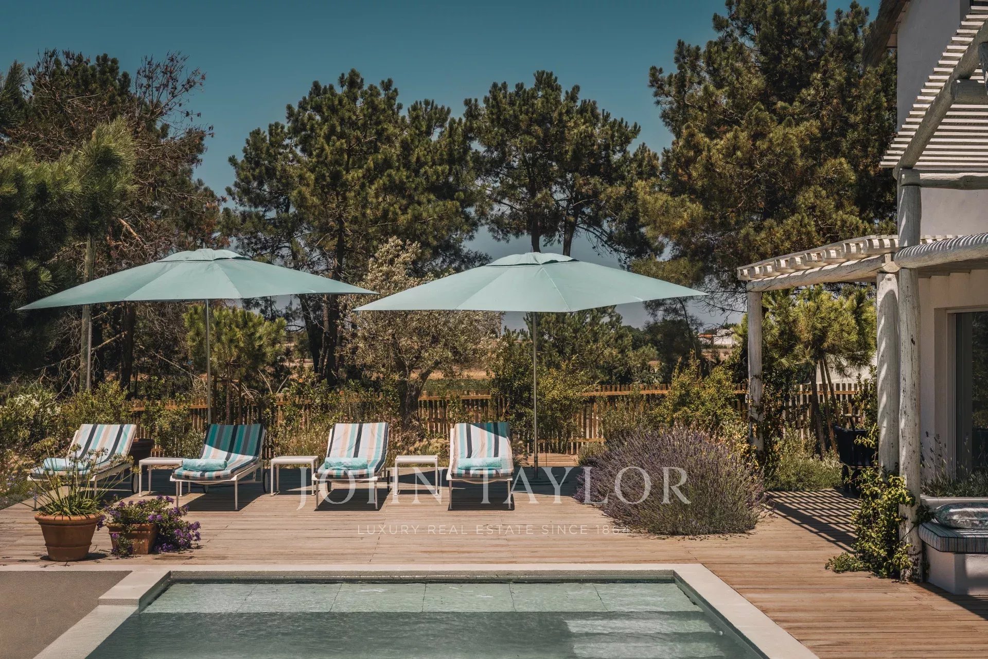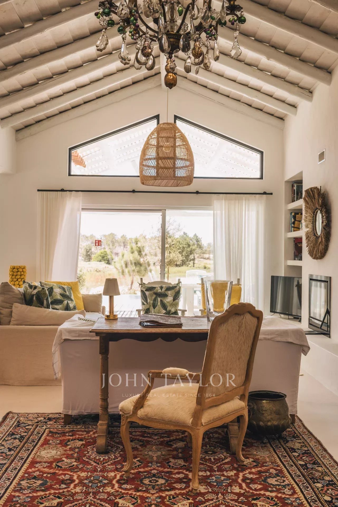 Encantadora villa con el estilo de la arquitectura tradicional de la región de Comporta, con impresionantes vistas al pinar, que consta de 4 dormitorios en suite, sala de estar, comedor y cocina abierta. En el exterior hay varios porches con zonas para relajarse y disfrutar de la naturaleza que lo rodea, un comedor junto a la piscina con privacidad y vistas despejadas al pinar.