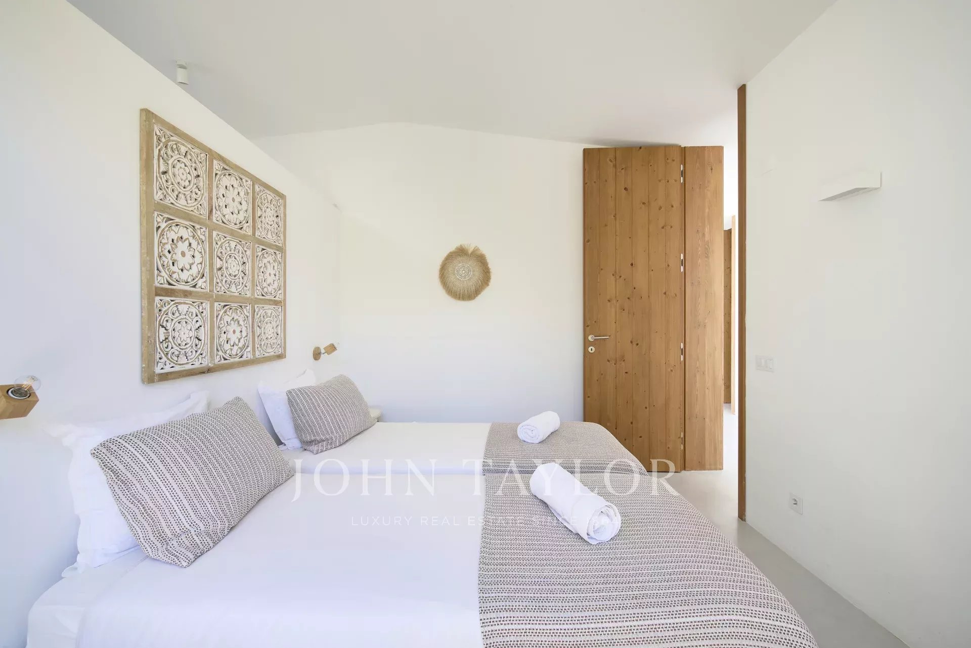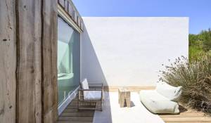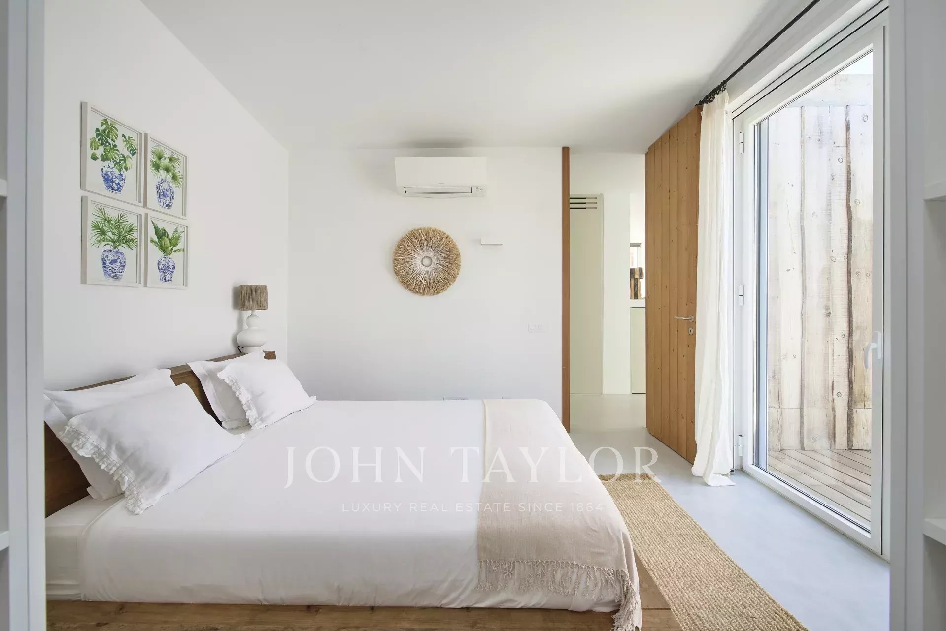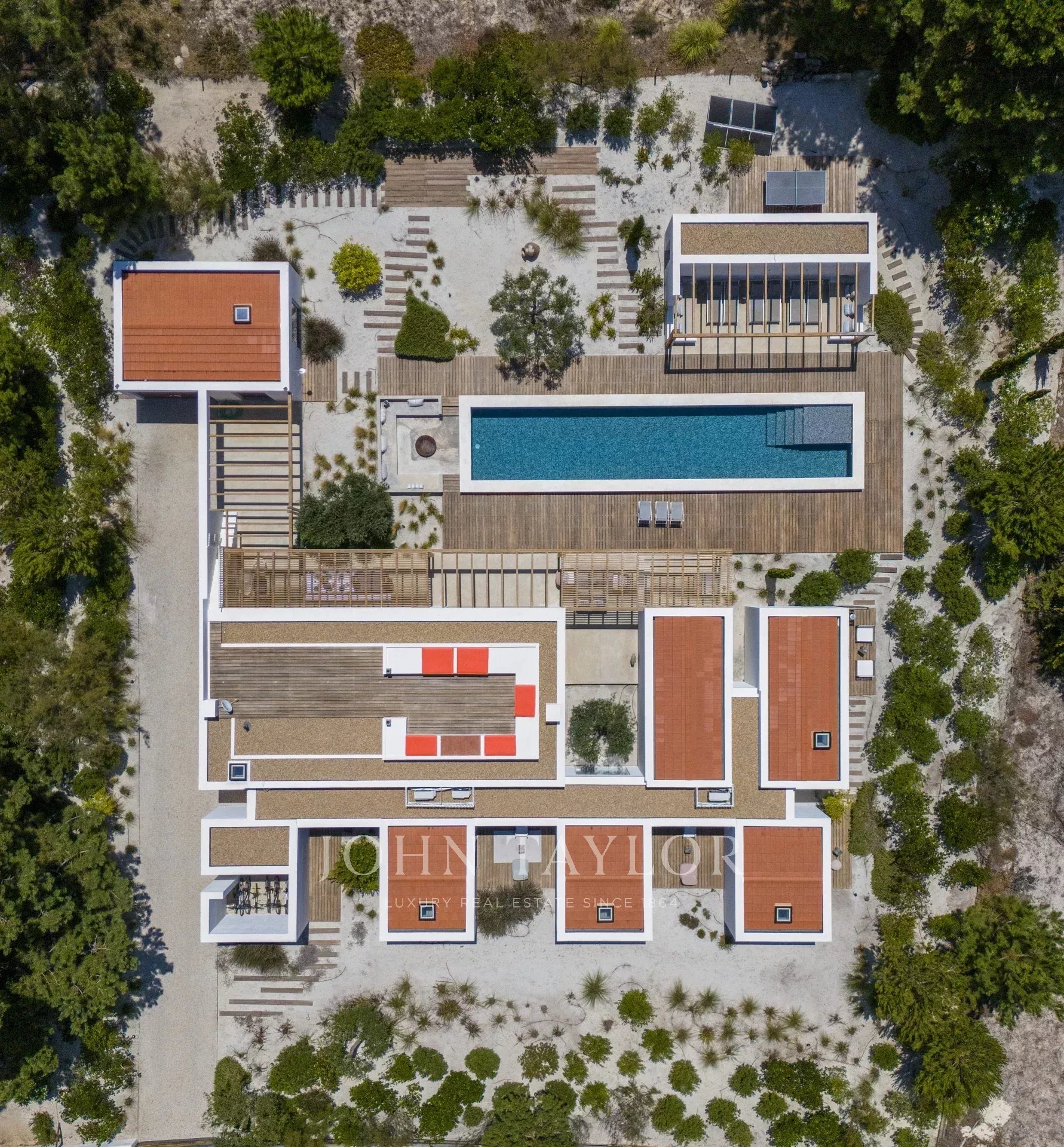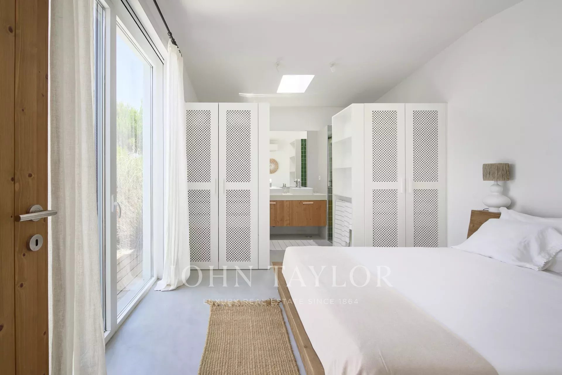 Rodeada de un paisaje de bosque de pinos y dunas de arena blanca, a solo unos minutos de la icónica playa de Pego, Casa Ammos es la combinación de diseño contemporáneo y algunos elementos de estilo local, brindando comodidad y sofisticación. Tiene capacidad para 8 adultos y 6 niños, con 5 suites, una gran sala de estar, comedor y cocina en un concepto de espacio abierto, sus grandes ventanas correderas brindan una conexión perfecta entre los espacios interiores y exteriores.