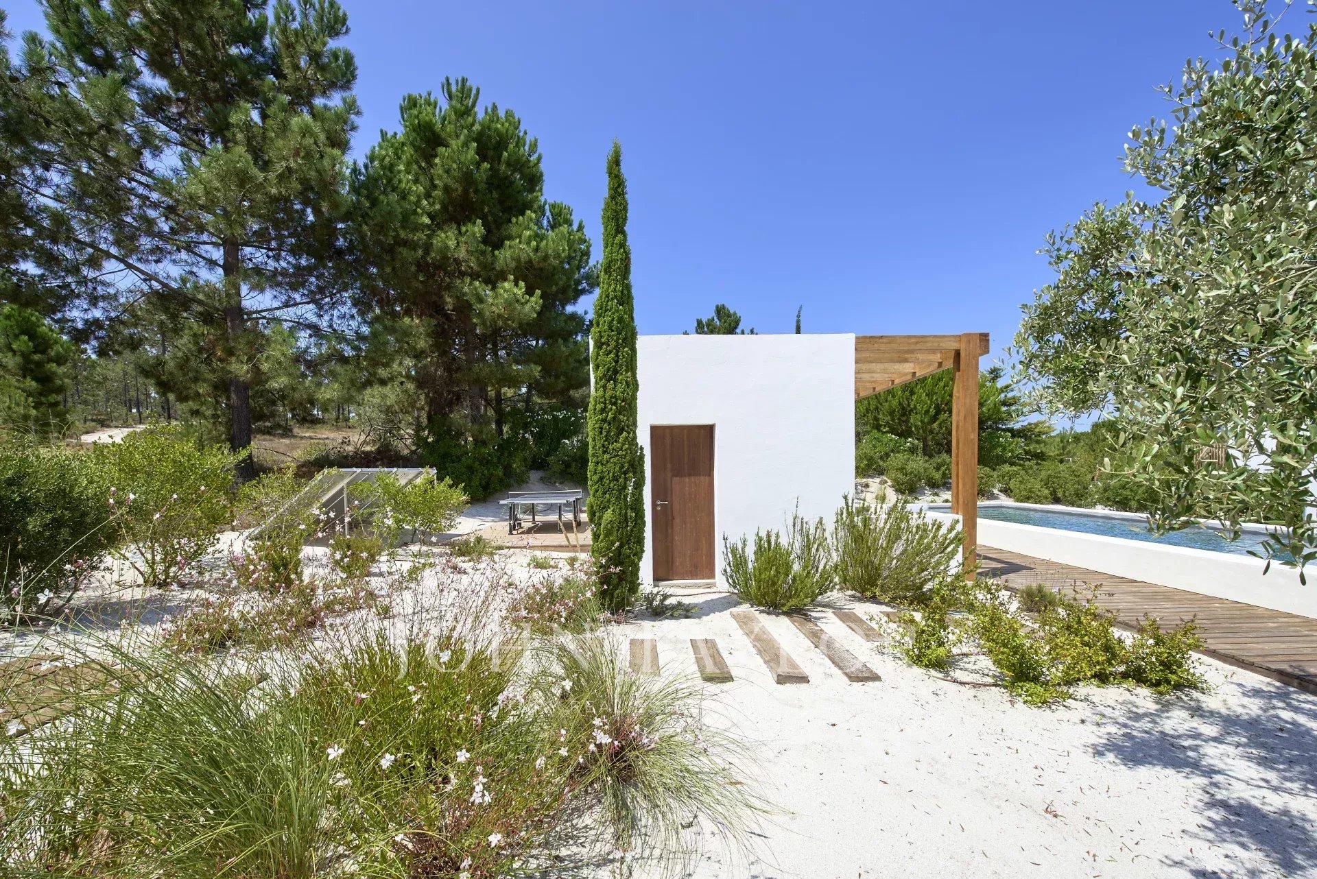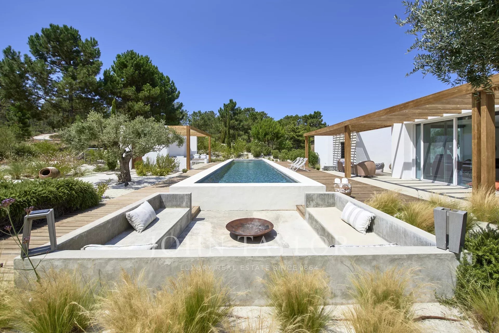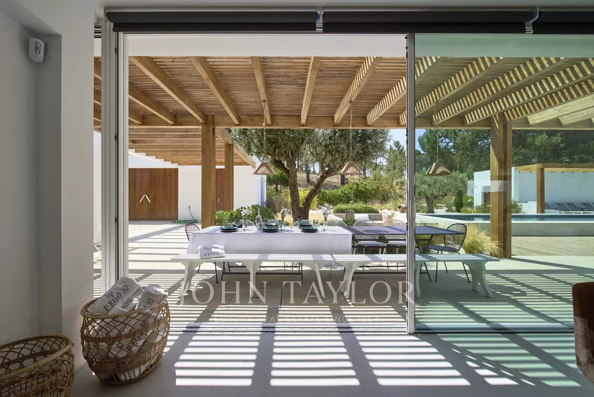 En el exterior, disfrute de la piscina, comparta momentos inolvidables alrededor de la hoguera, bajo el cielo estrellado de Comporta y disfrute de deliciosas comidas con familiares y amigos. La terraza con impresionantes vistas es el escenario ideal para relajarse y contemplar la magnífica puesta de sol.