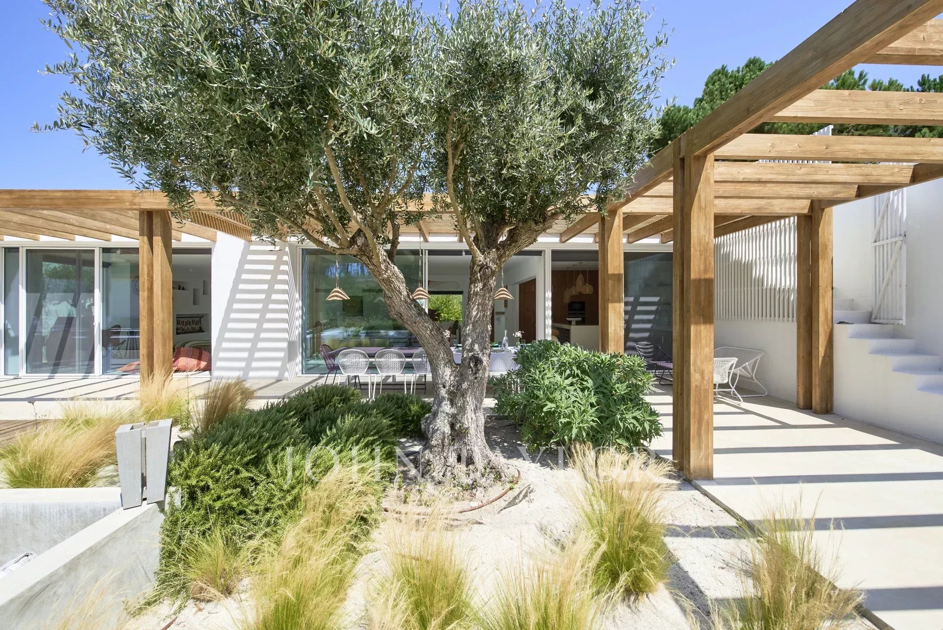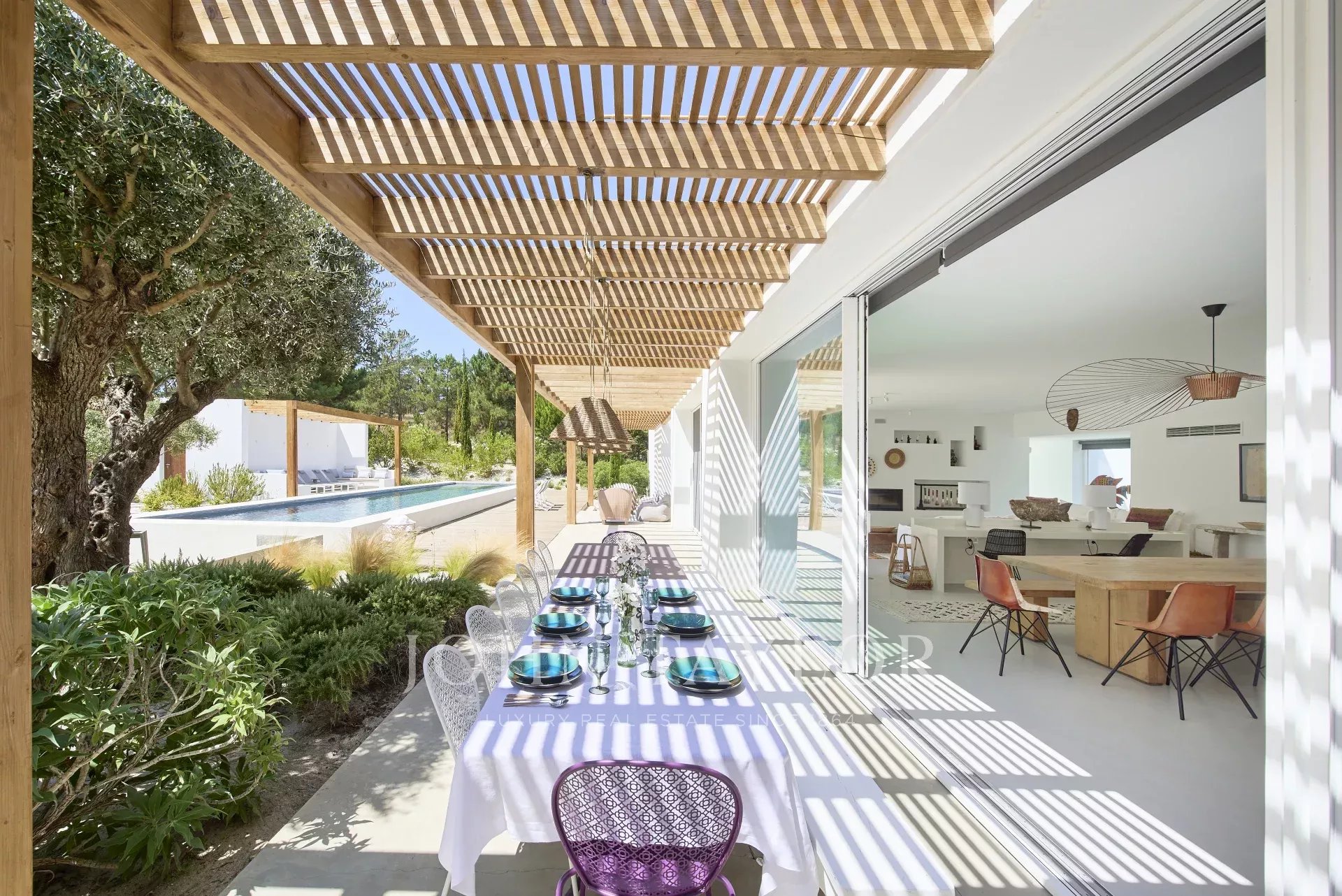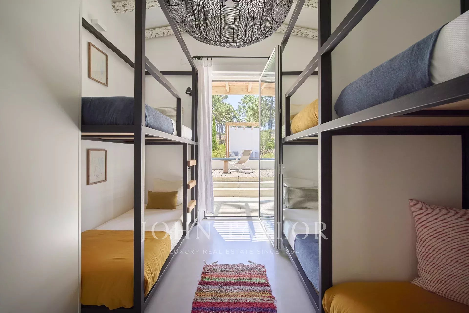 En el exterior, disfrute de la piscina, comparta momentos inolvidables alrededor de la hoguera, bajo el cielo estrellado de Comporta y disfrute de deliciosas comidas con familiares y amigos. La terraza con impresionantes vistas es el escenario ideal para relajarse y contemplar la magnífica puesta de sol.