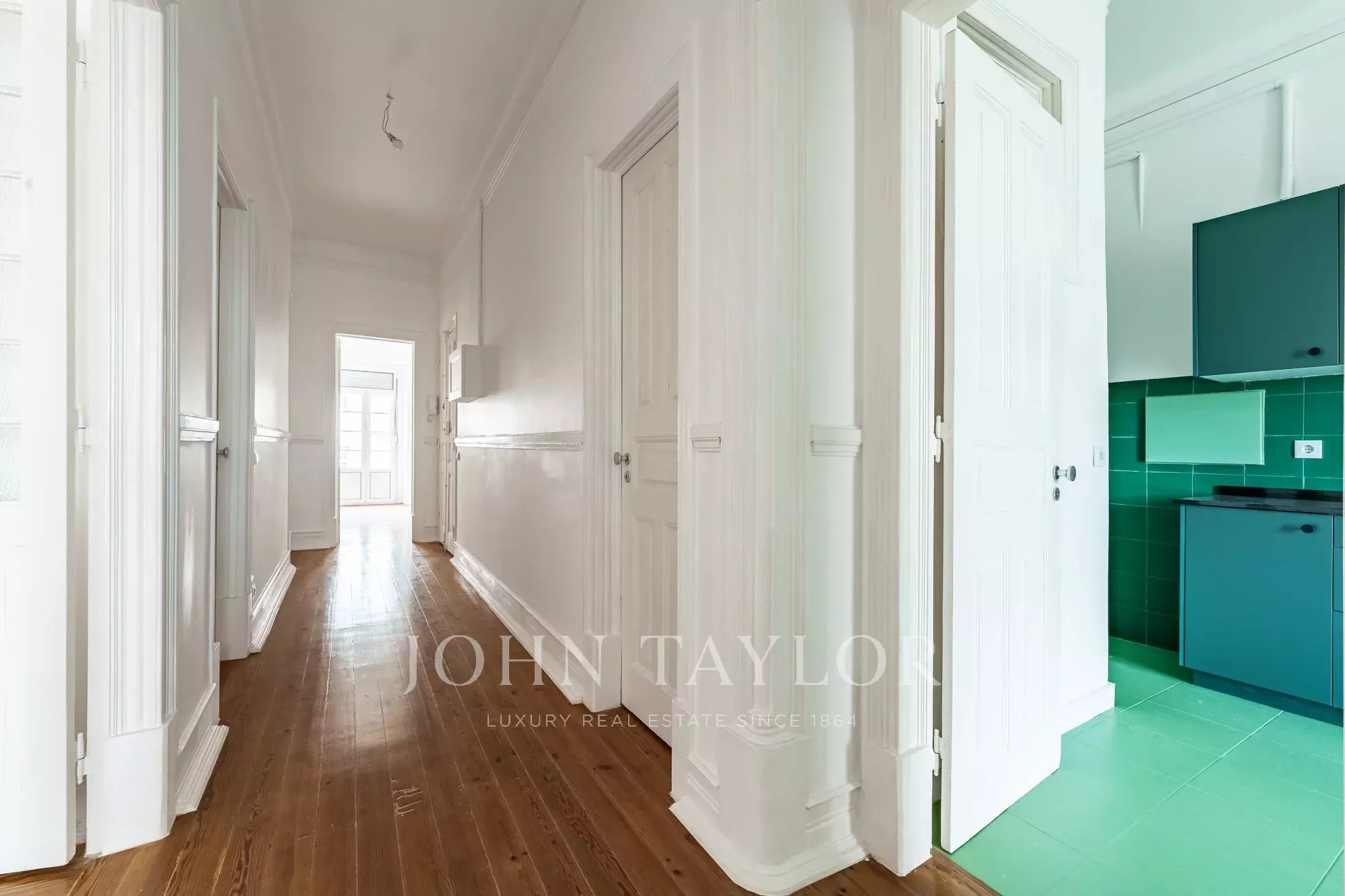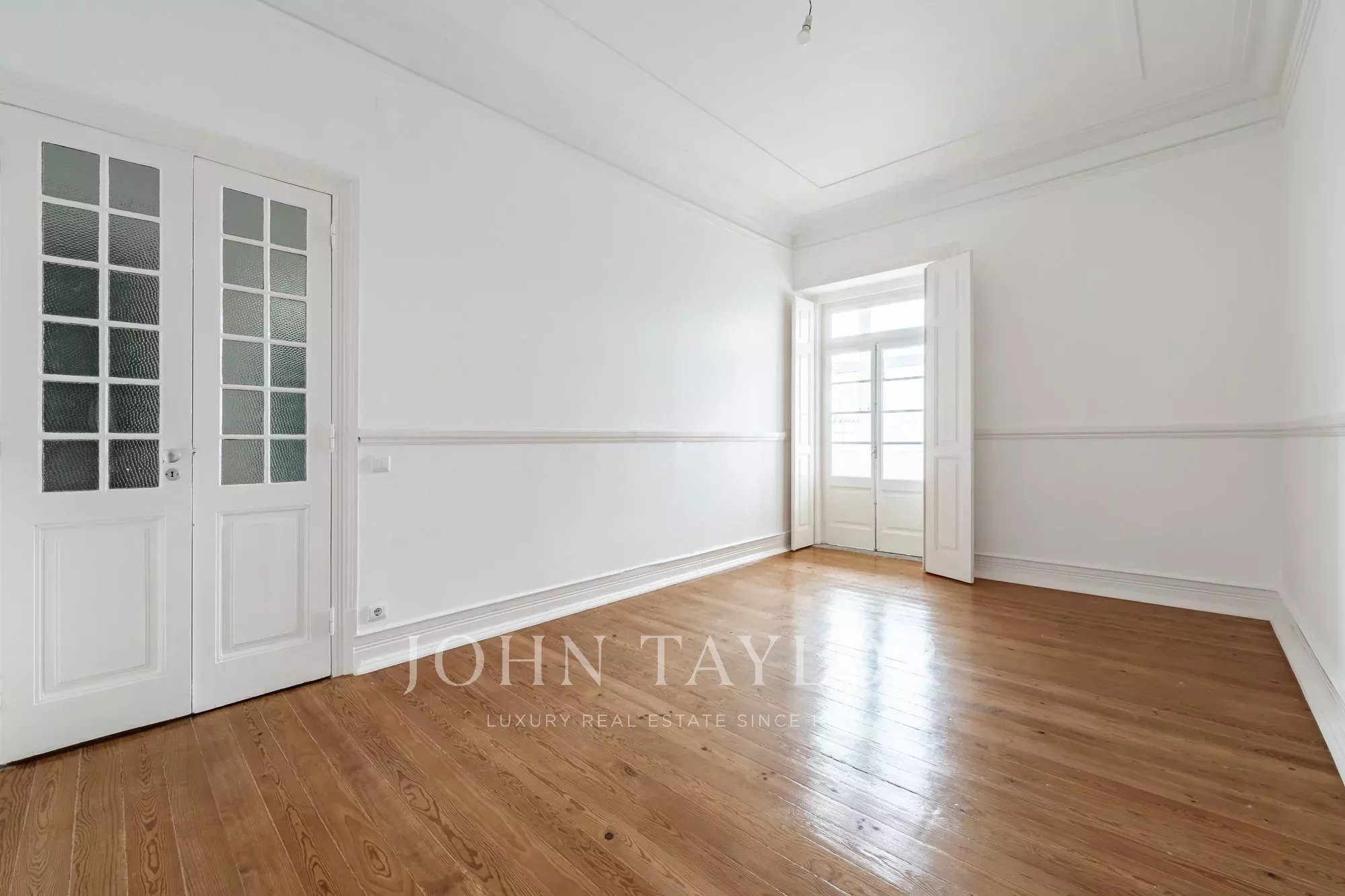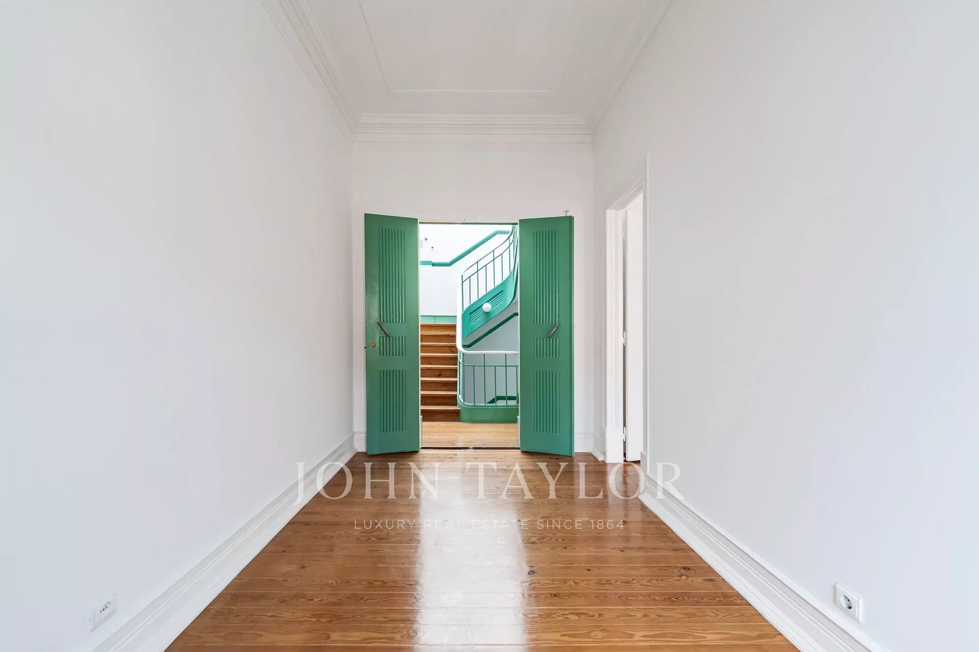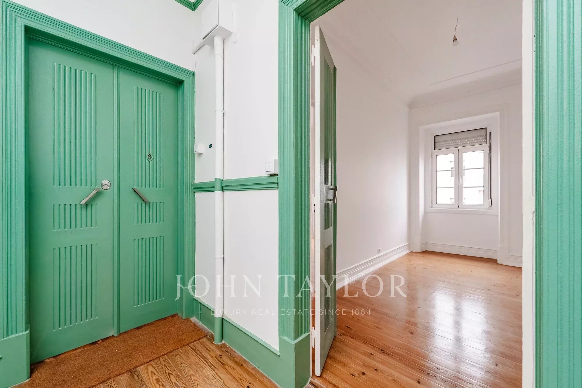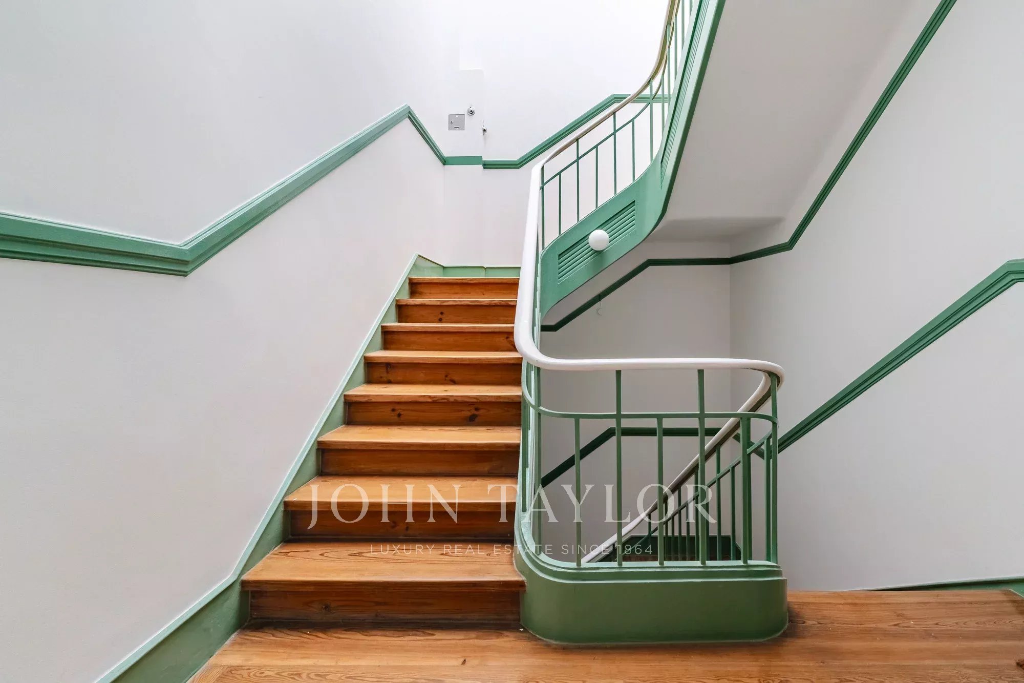 Apartamento de 3+1 dormitorios con 130 m², situado en la 2ª planta de un edificio Art Déco totalmente renovado, sin ascensor. El apartamento cuenta con una amplia sala de estar y comedor, una cocina semi-equipada, tres dormitorios, una oficina, un balcón cerrado, una zona de lavandería con aseo y una despensa.