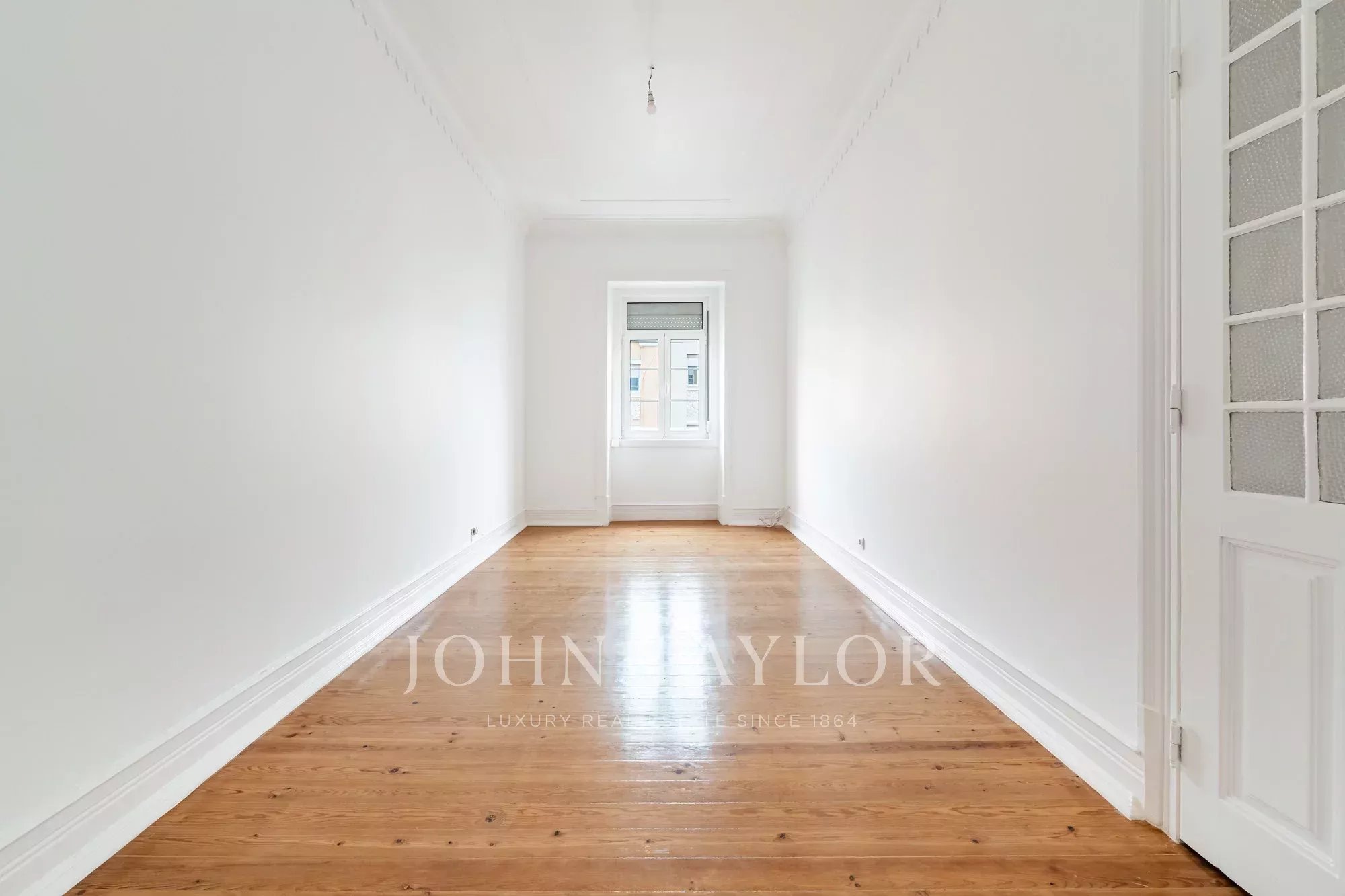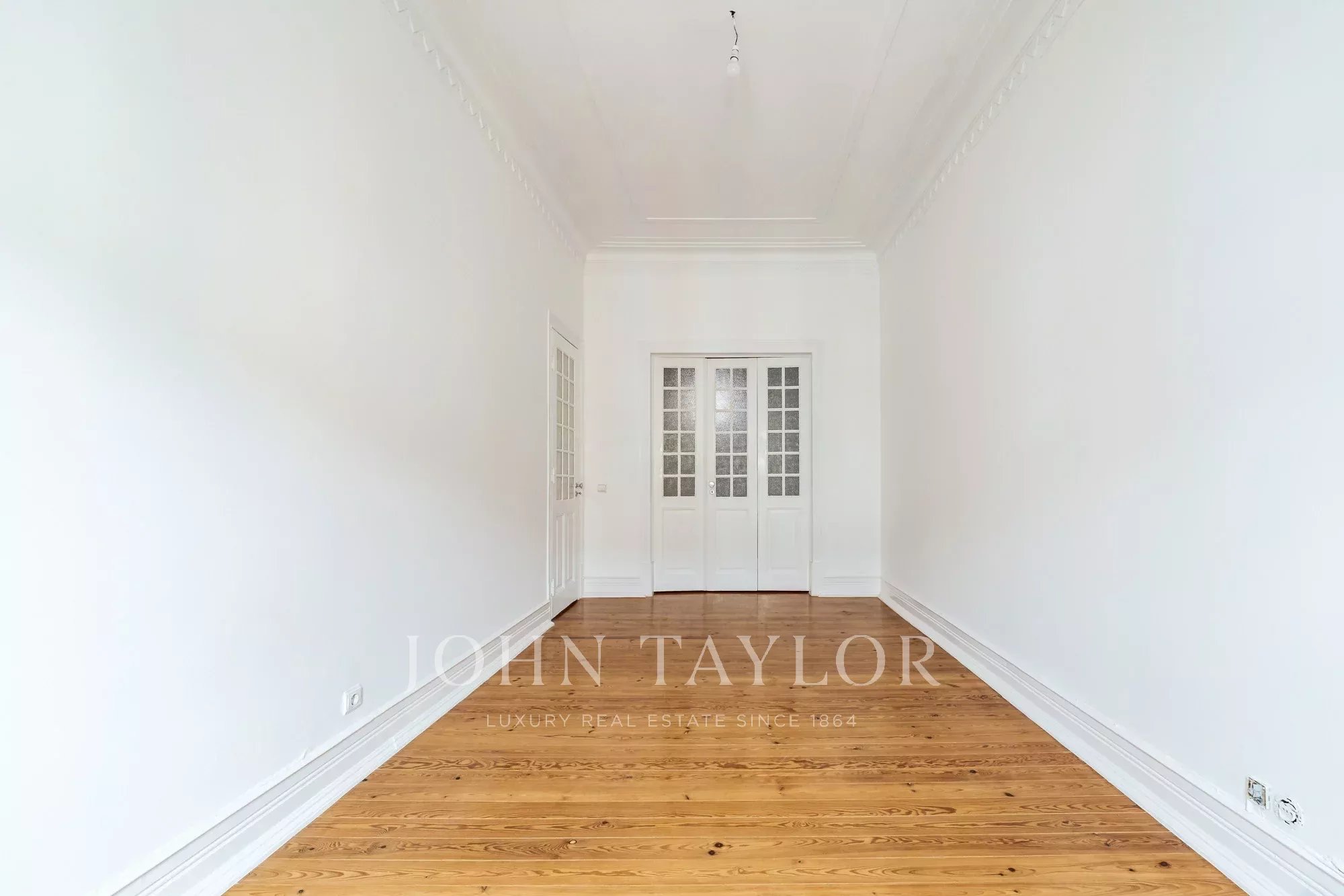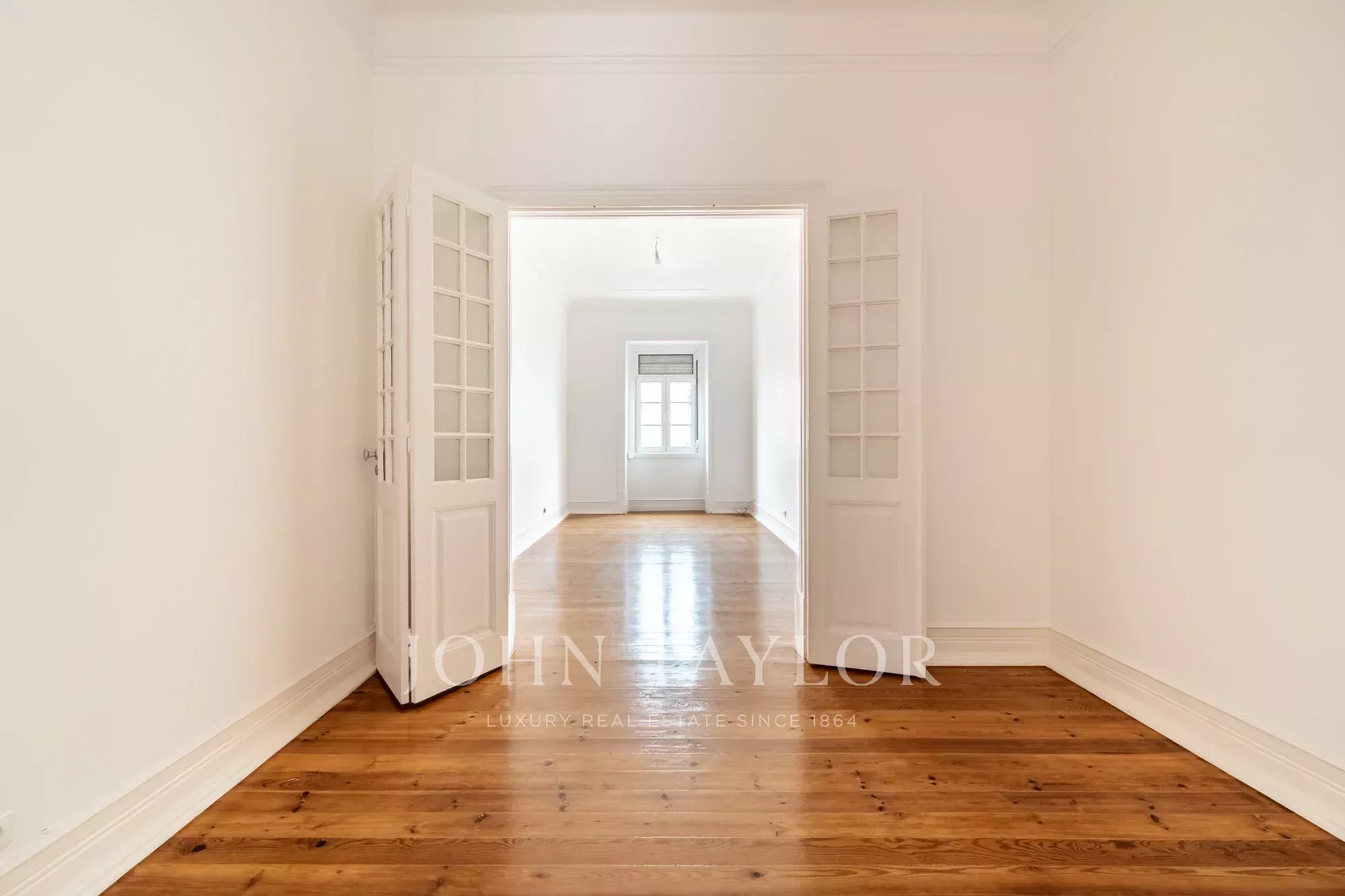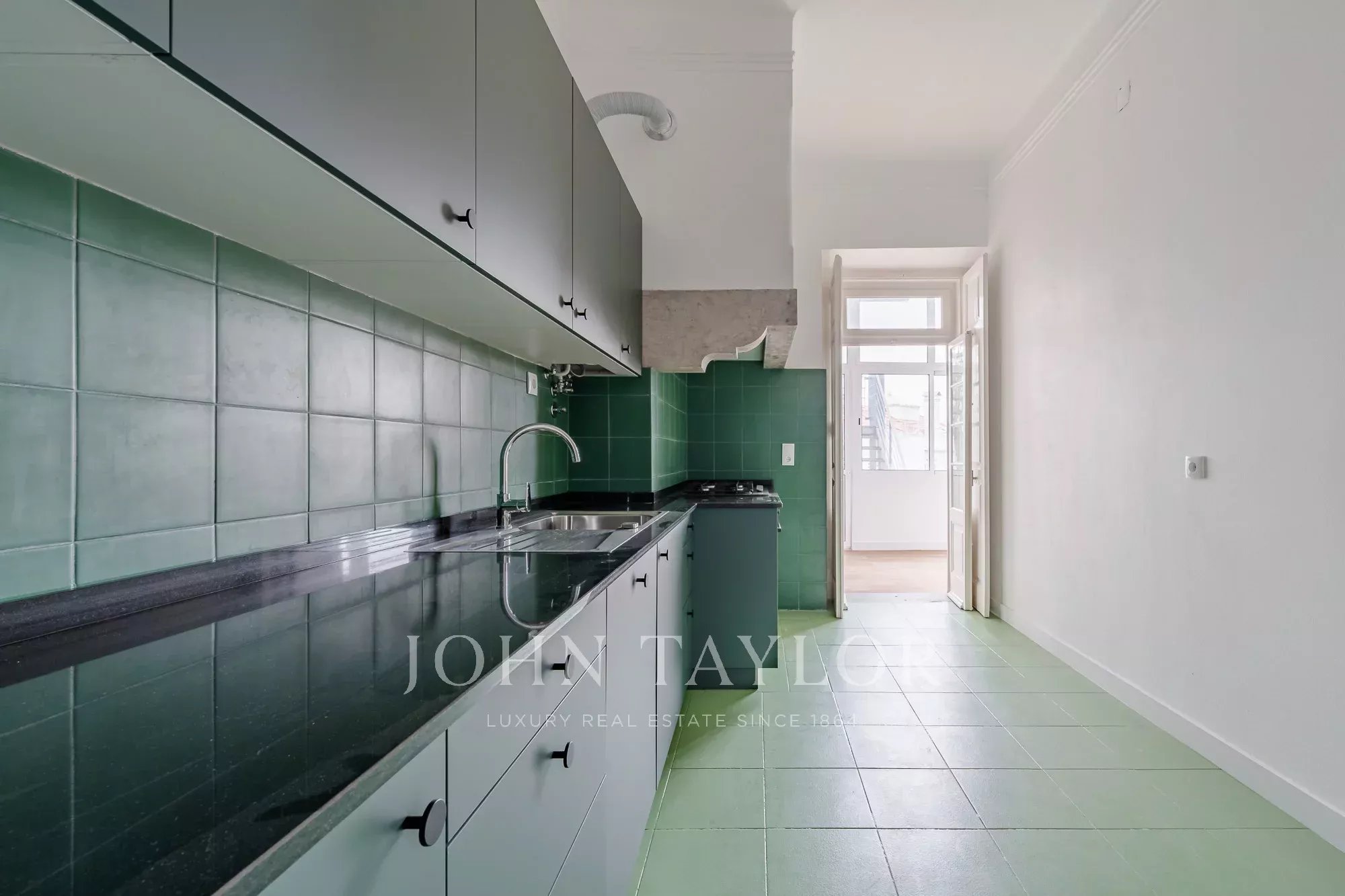 Apartamento de 3+1 dormitorios con 130 m², situado en la 2ª planta de un edificio Art Déco totalmente renovado, sin ascensor. El apartamento cuenta con una amplia sala de estar y comedor, una cocina semi-equipada, tres dormitorios, una oficina, un balcón cerrado, una zona de lavandería con aseo y una despensa.