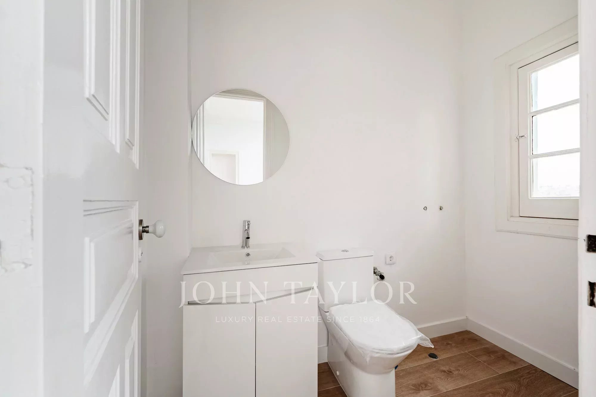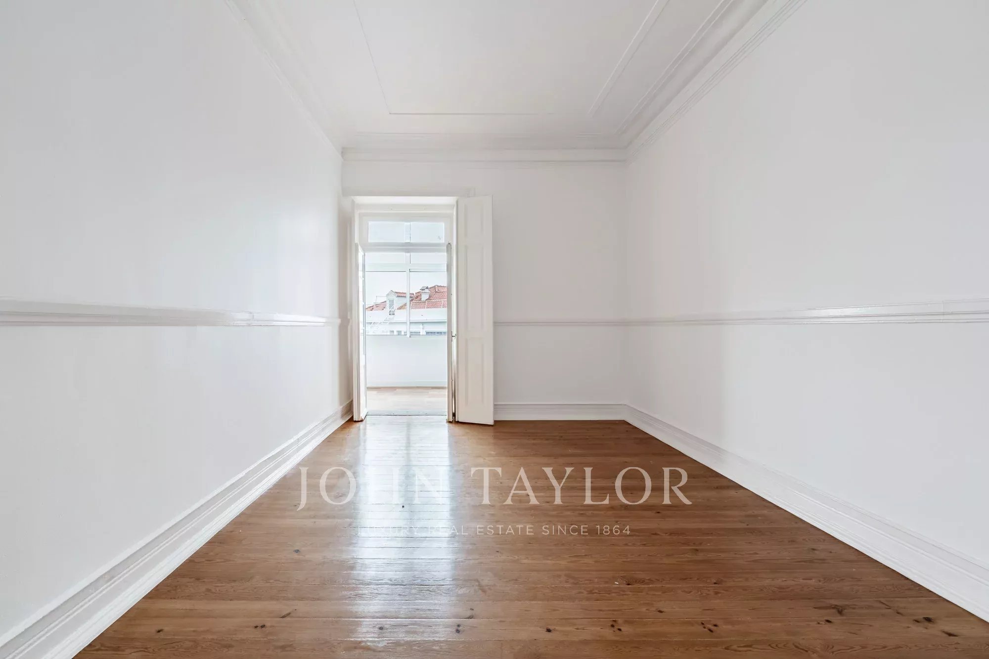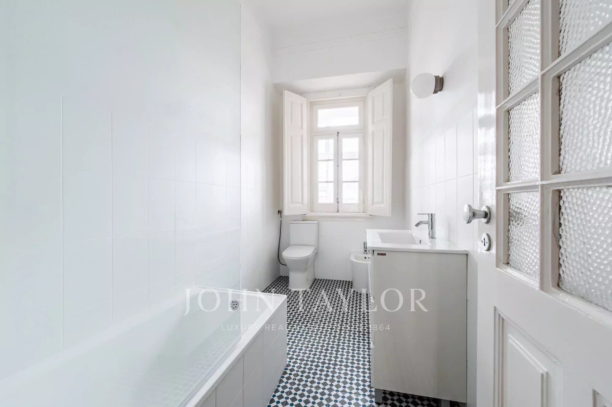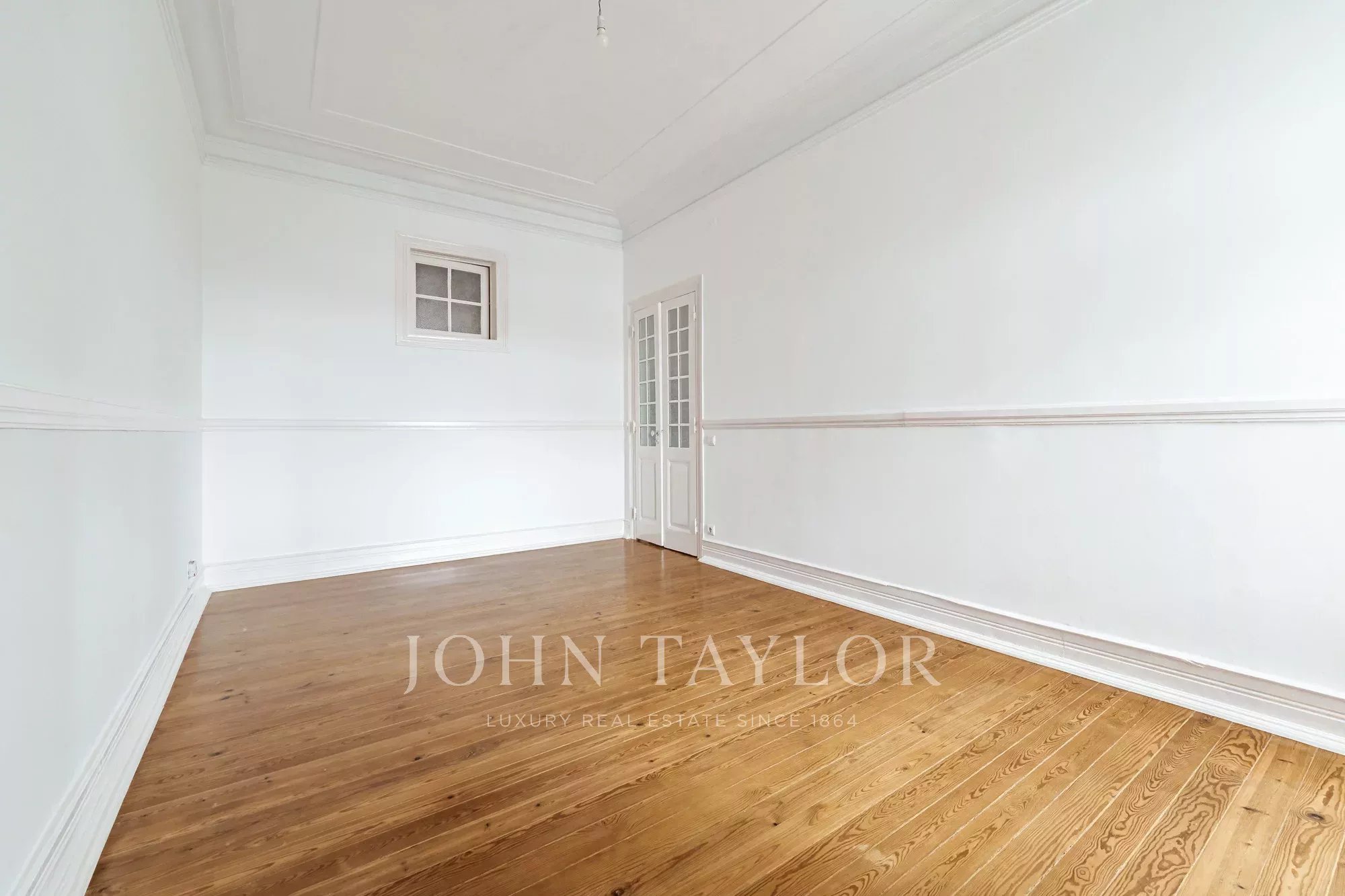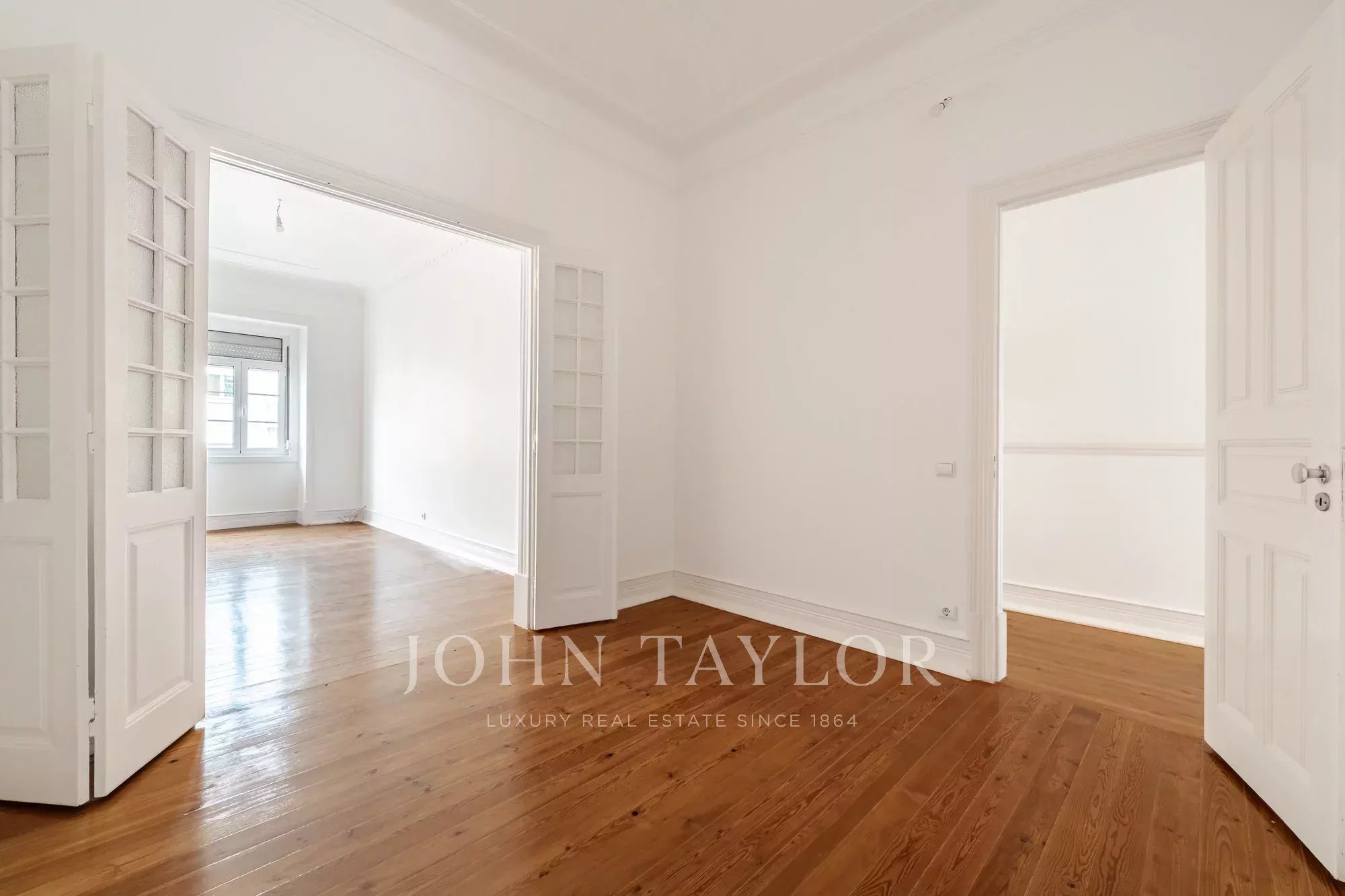 Apartamento de 3+1 dormitorios con 130 m², situado en la 2ª planta de un edificio Art Déco totalmente renovado, sin ascensor. El apartamento cuenta con una amplia sala de estar y comedor, una cocina semi-equipada, tres dormitorios, una oficina, un balcón cerrado, una zona de lavandería con aseo y una despensa.
