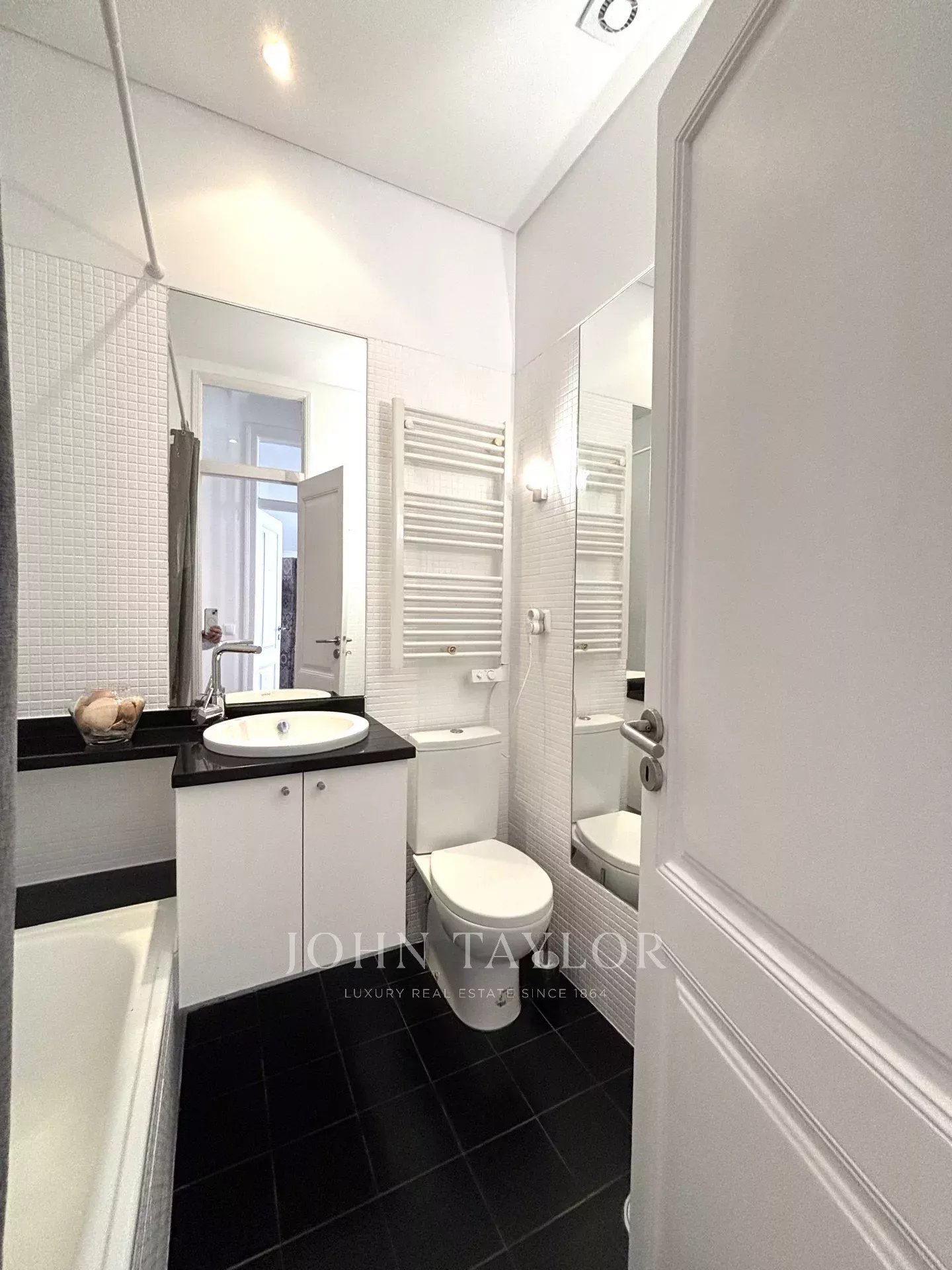 La cocina totalmente equipada incluye electrodomésticos modernos y todo lo necesario para vivir cómodamente en la ciudad. El cuarto de baño es elegante y funcional, y el apartamento está equipado con calefacción para mayor comodidad durante todo el año.