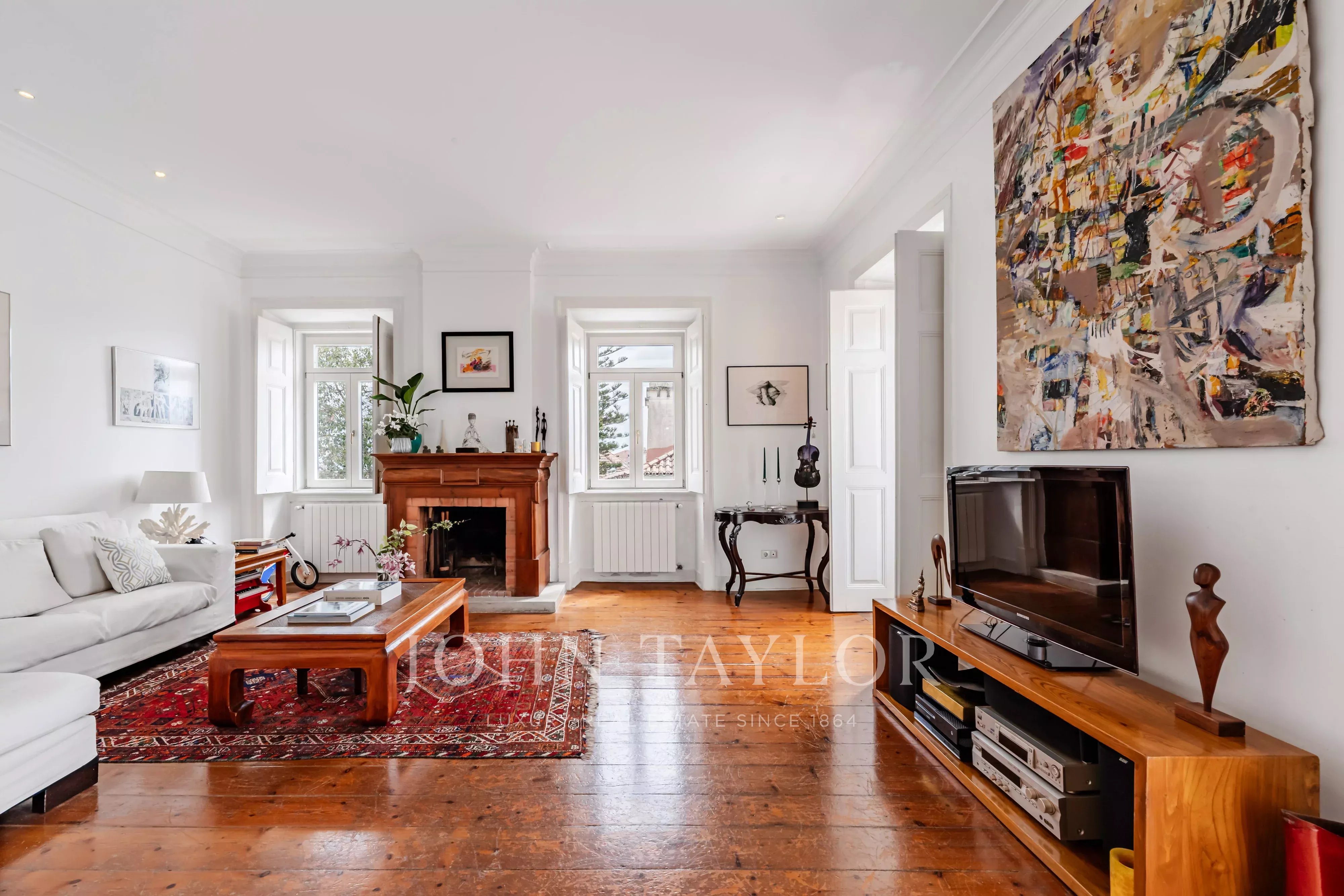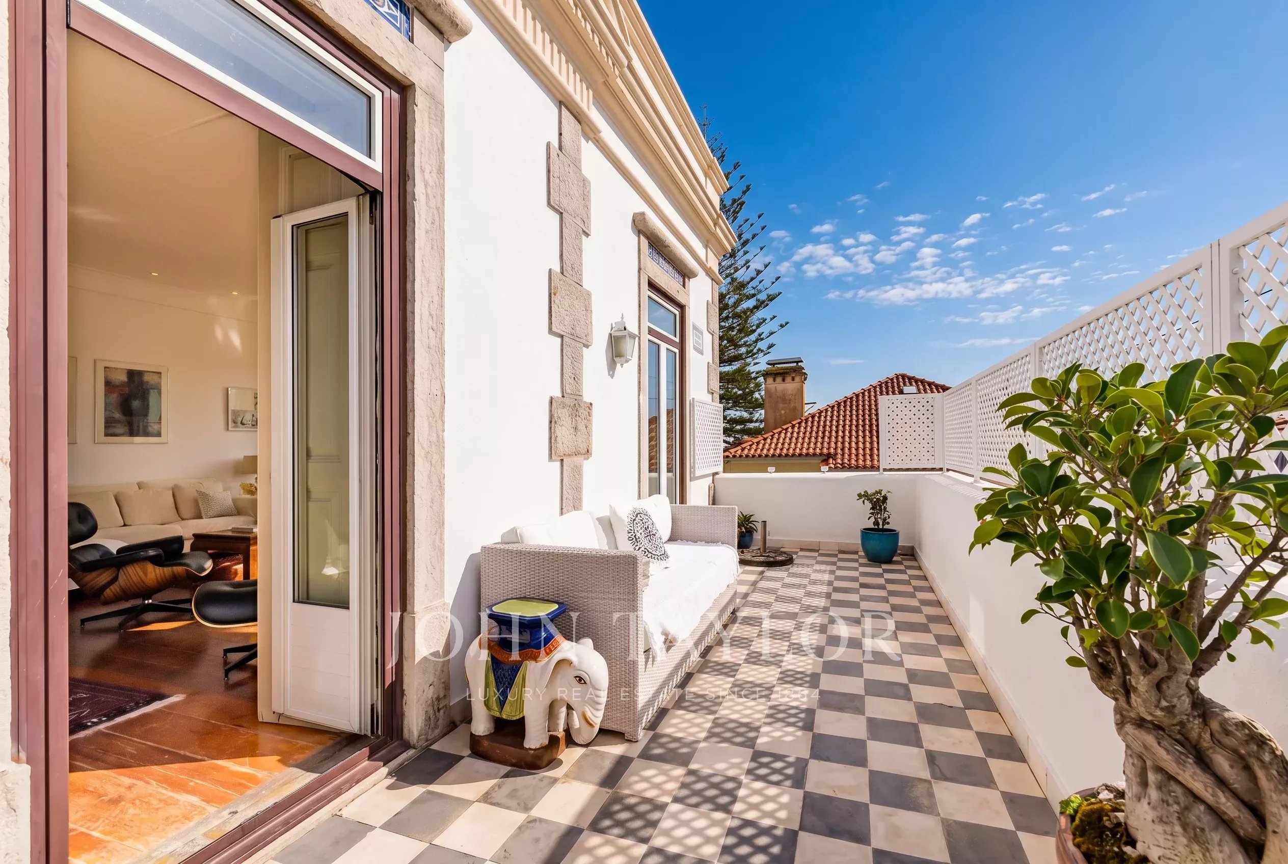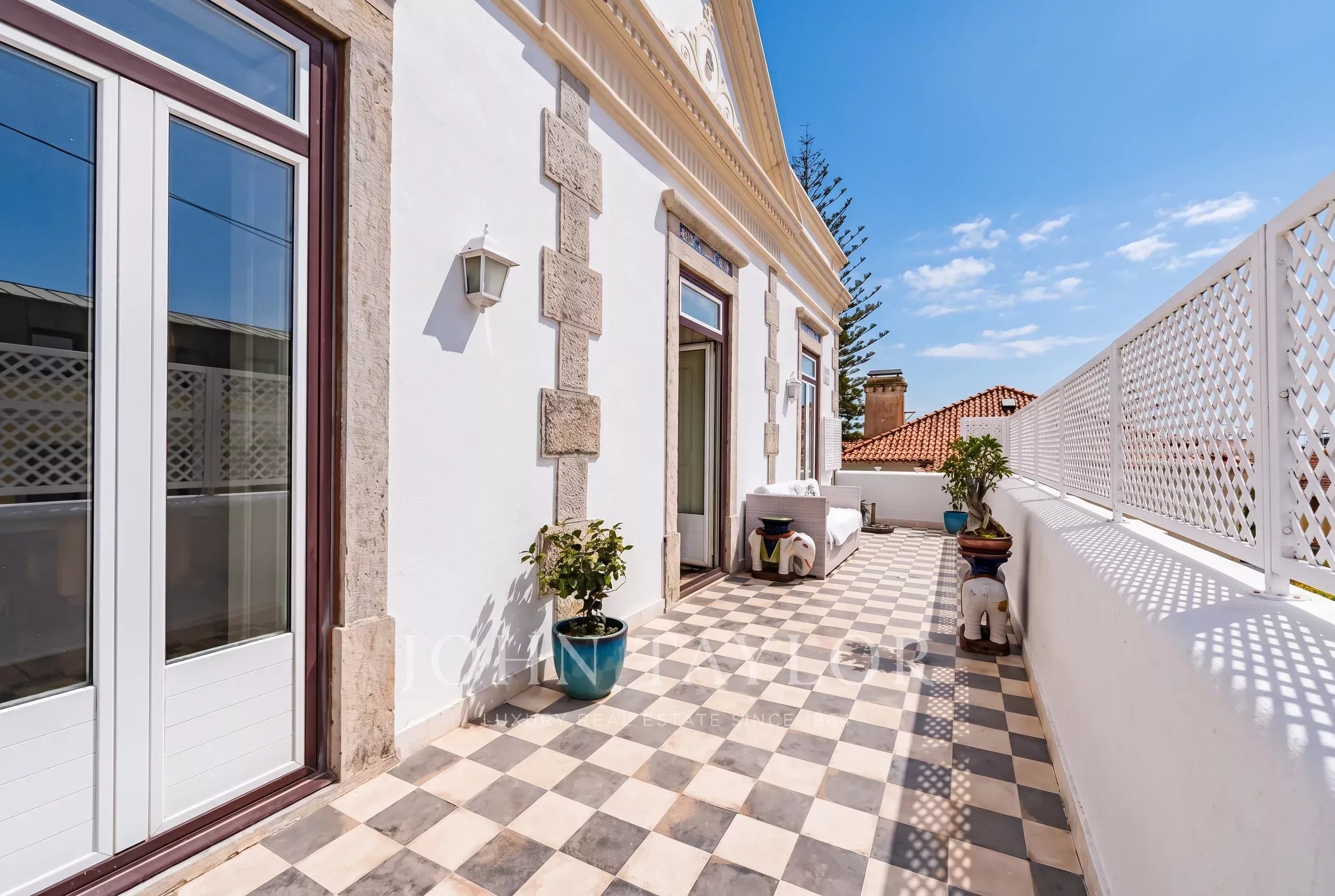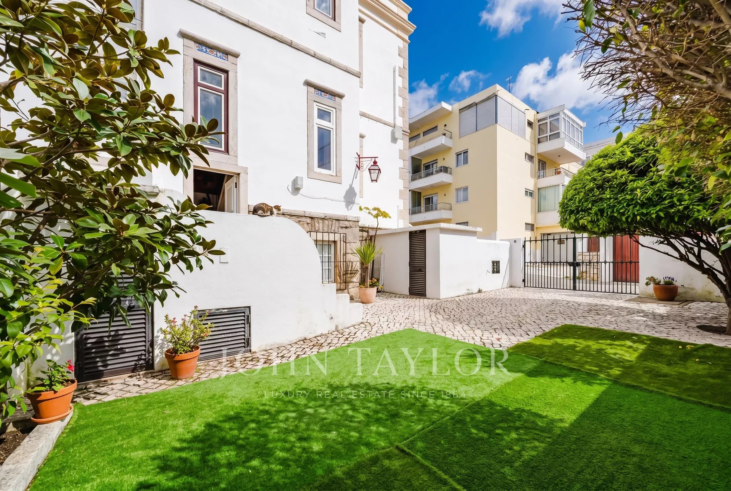 Apartamento de cuatro habitaciones en el centro de Estoril, que ofrece 180 m² de área bruta privada, con un jardín y un balcón con vistas al mar.
