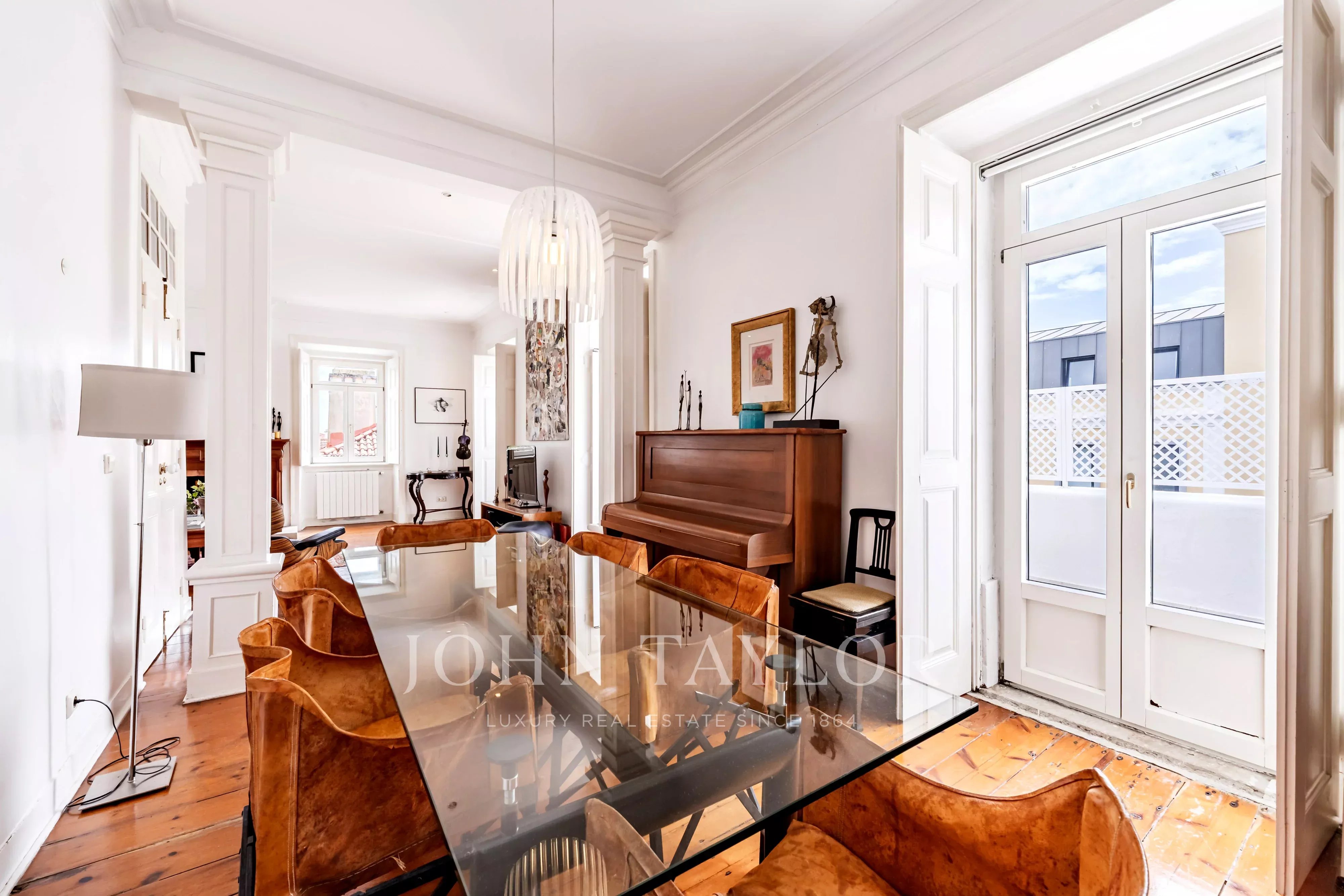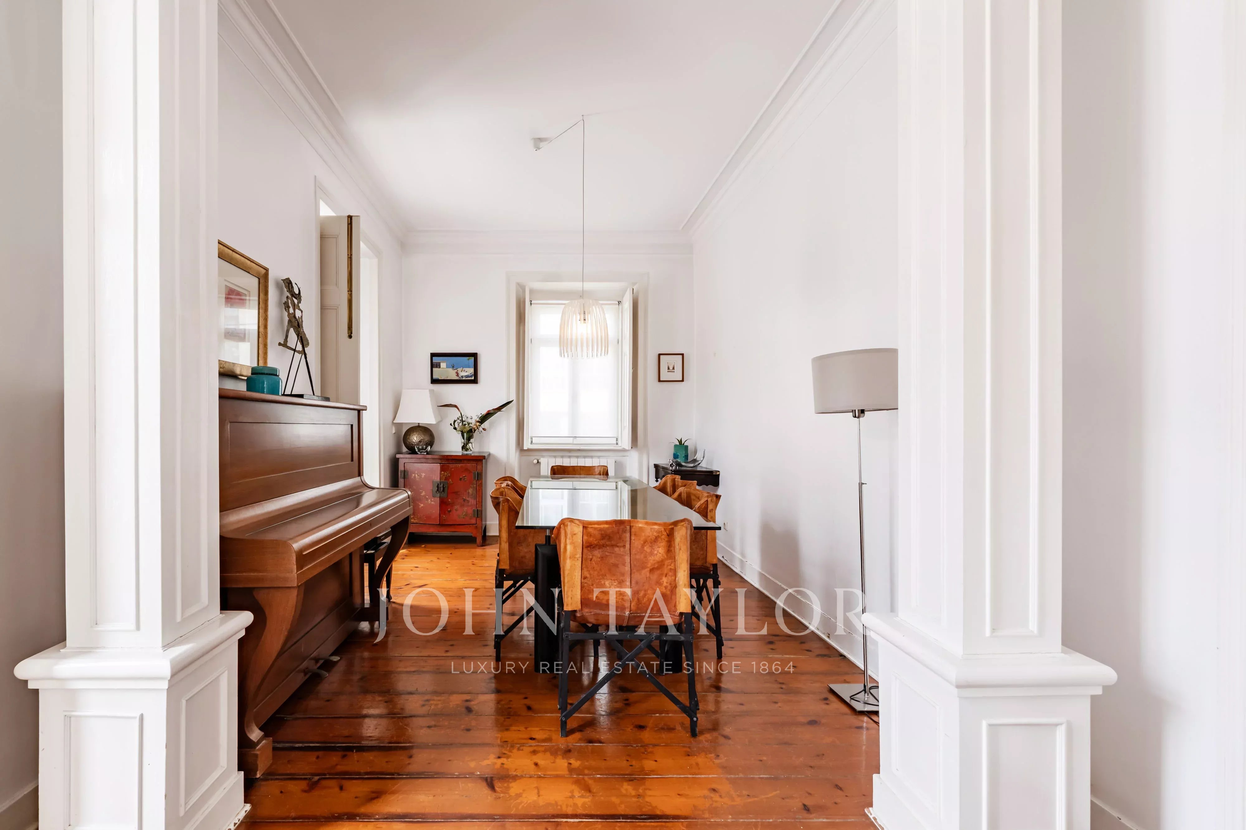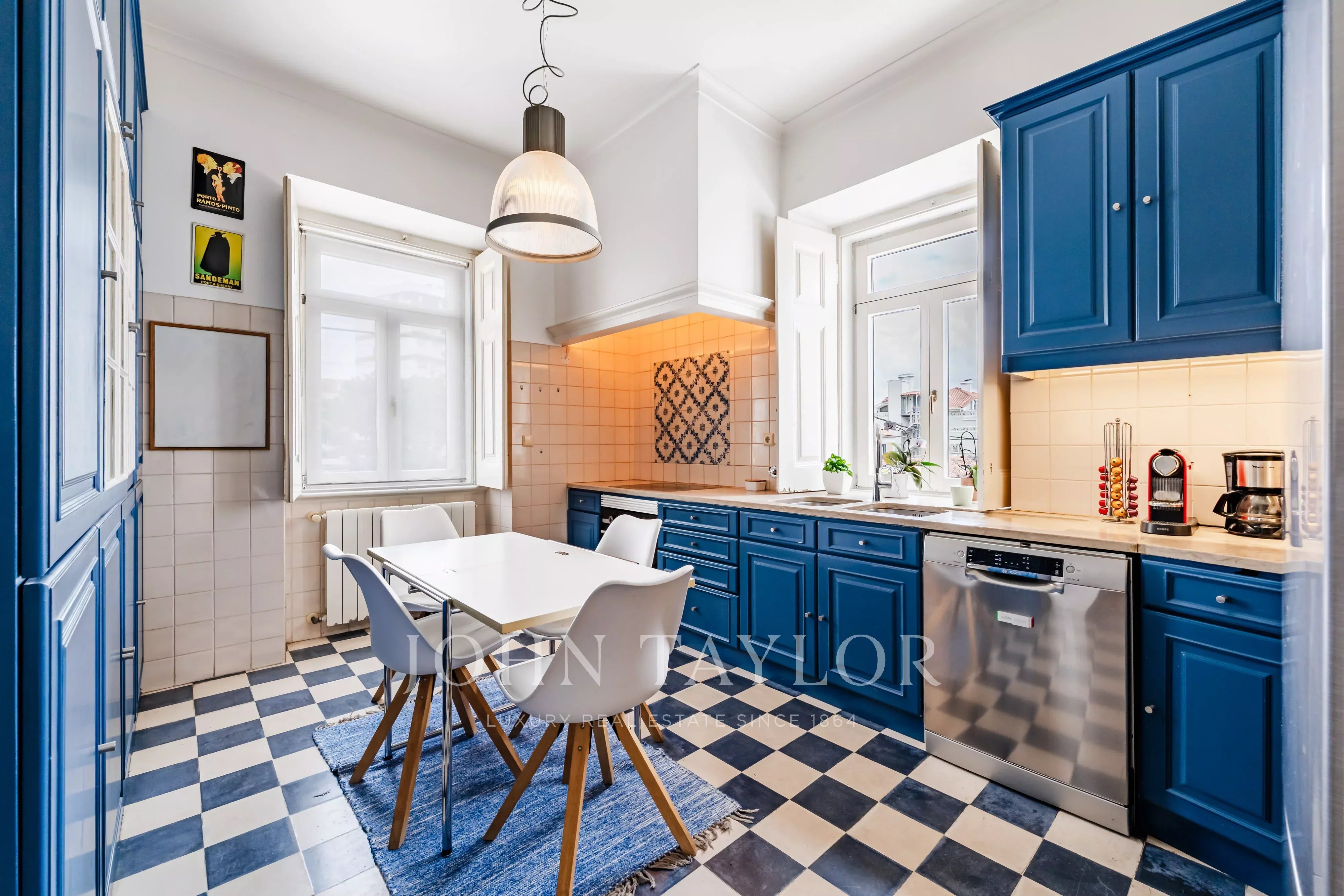 Situado en un edificio de estilo clásico, la propiedad destaca por su encanto arquitectónico, realzado por detalles tradicionales de azulejos en la fachada. En el interior, techos altos, abundante luz natural y suelos de madera crean un sentido de espacio, calidez y elegancia discreta.