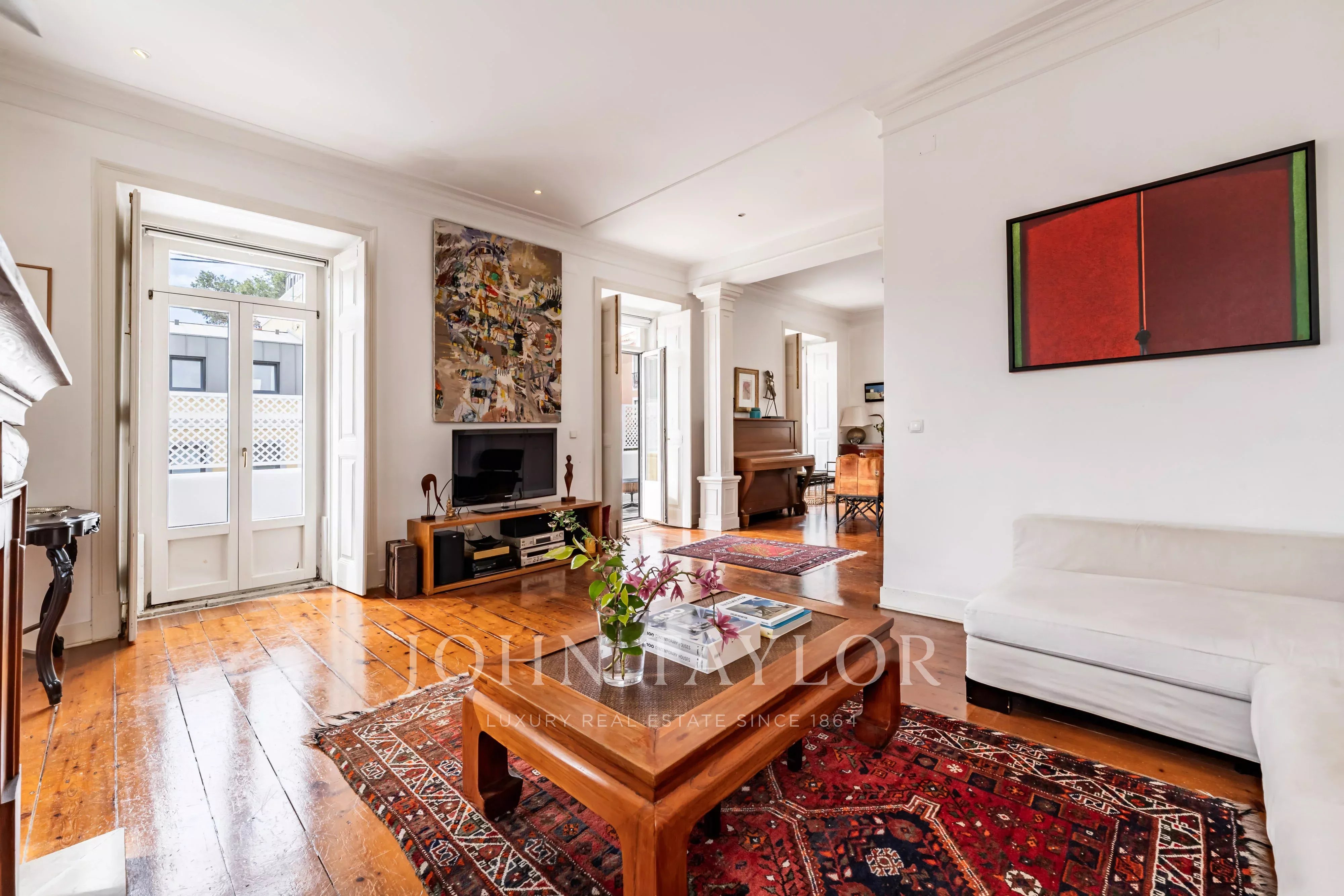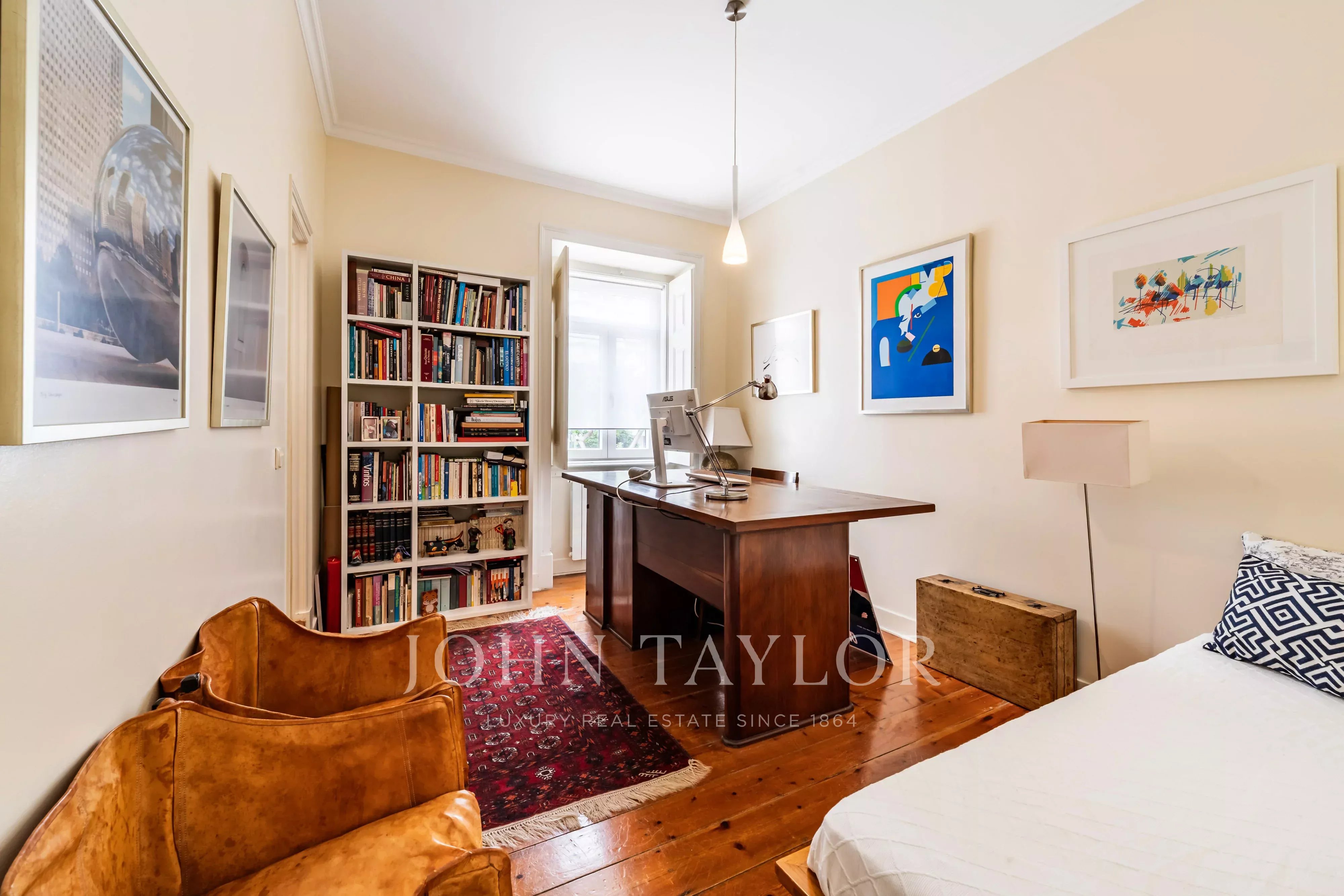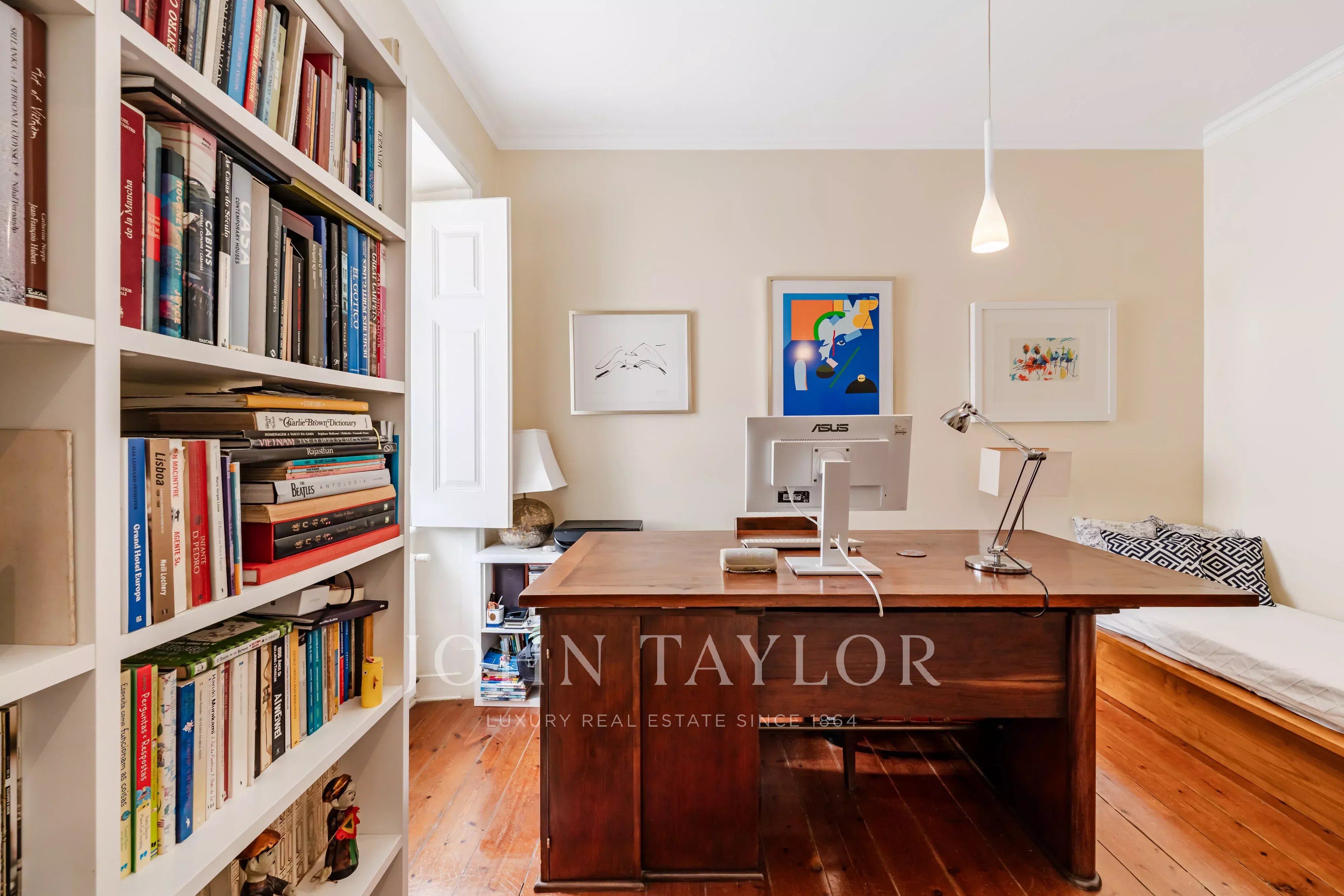 Situado en un edificio de estilo clásico, la propiedad destaca por su encanto arquitectónico, realzado por detalles tradicionales de azulejos en la fachada. En el interior, techos altos, abundante luz natural y suelos de madera crean un sentido de espacio, calidez y elegancia discreta.