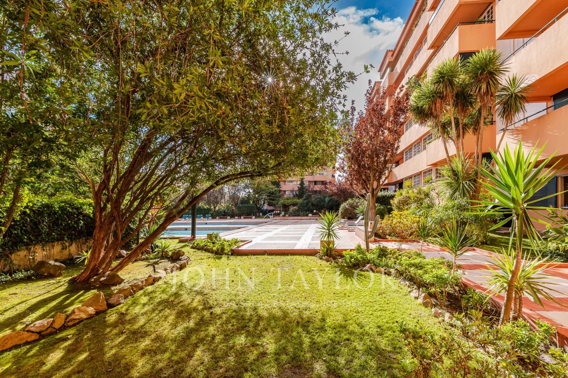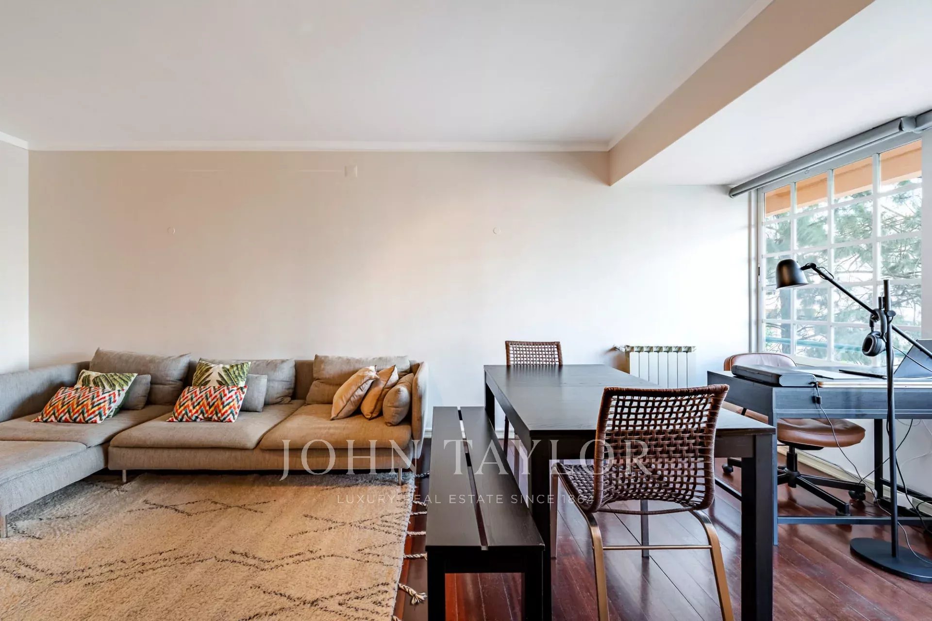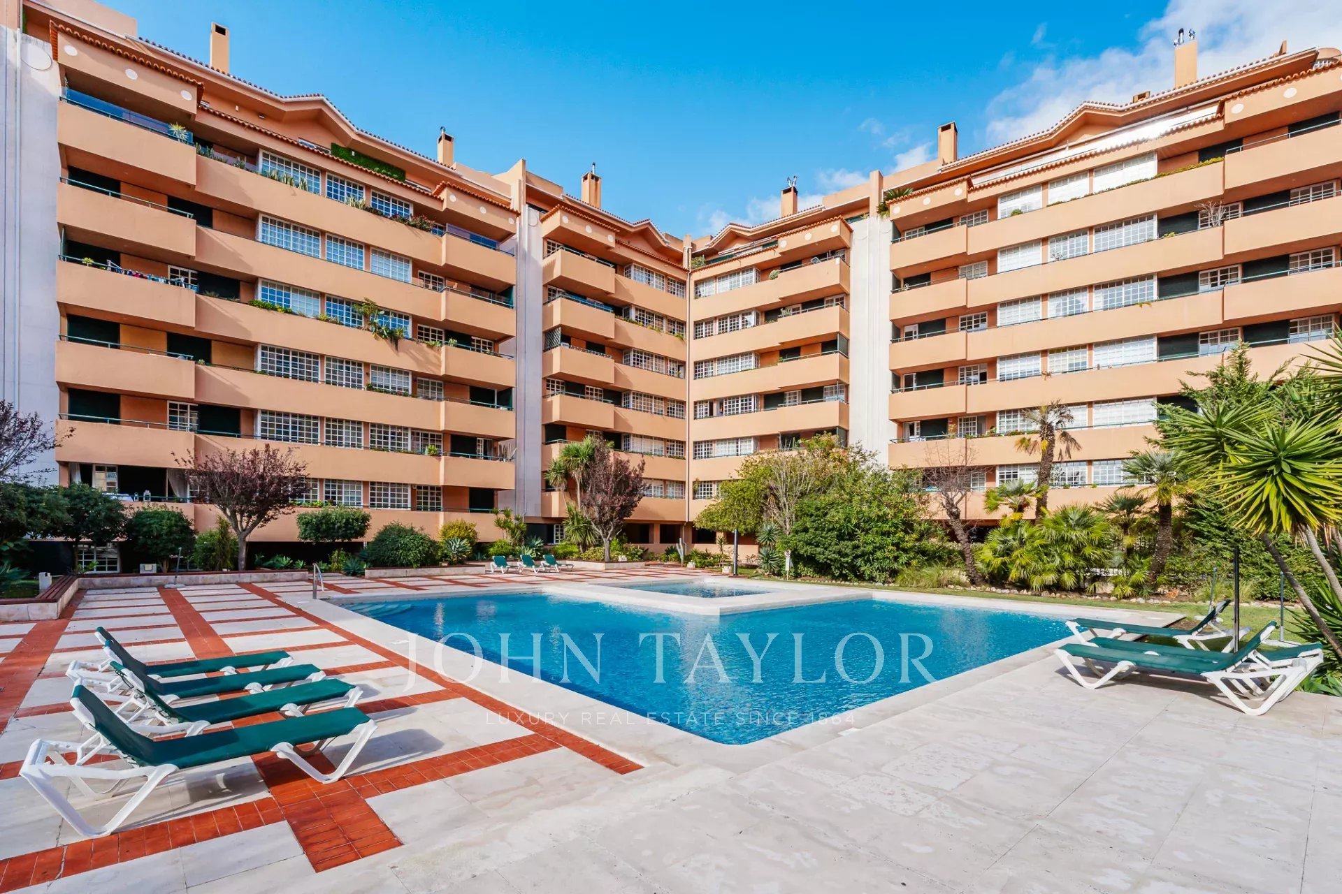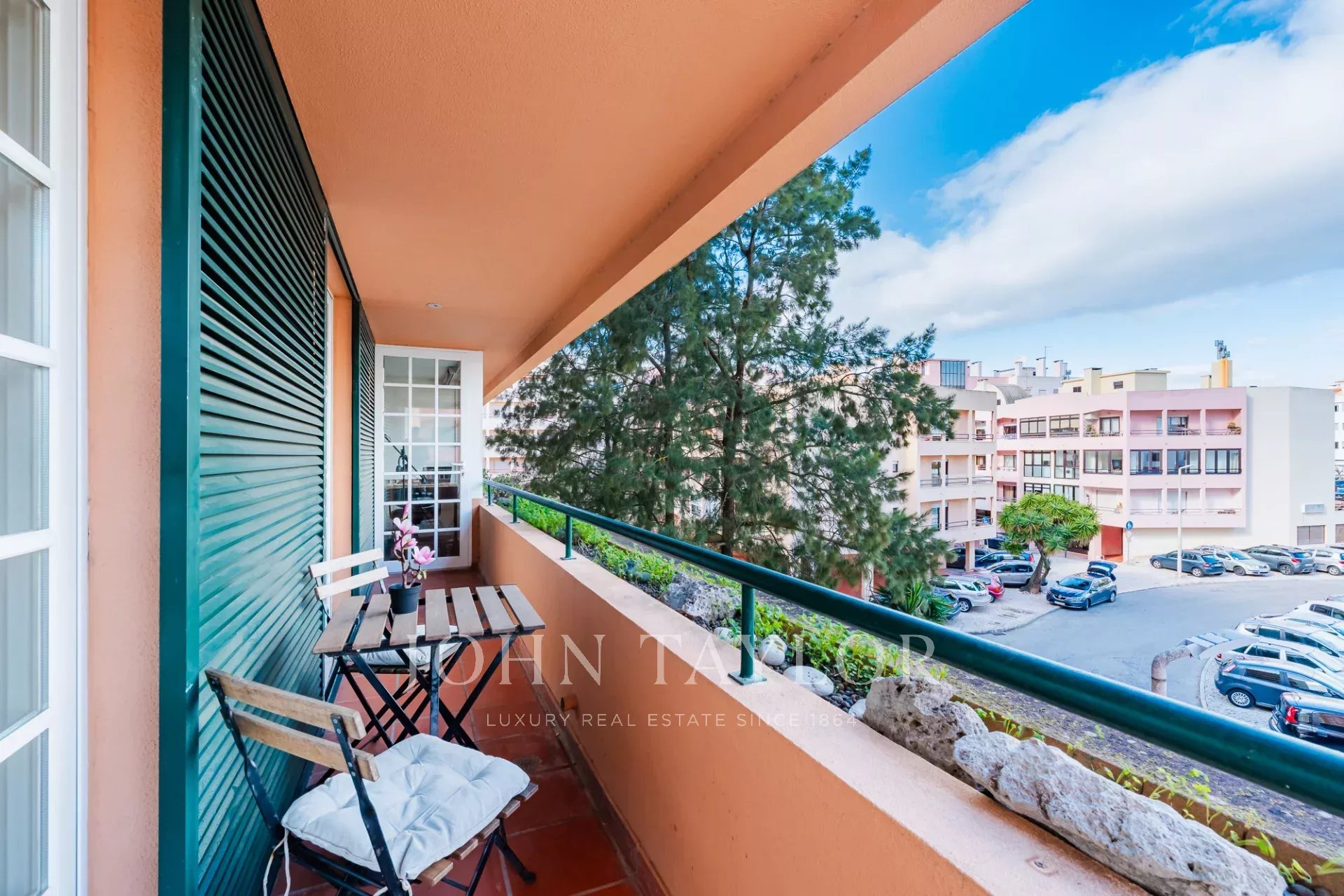 En el corazón del prestigioso Bairro do Rosário en Cascais, este apartamento de 94 m² y dos dormitorios se encuentra dentro de un condominio privado que ofrece amplias comodidades y hermosos jardines.