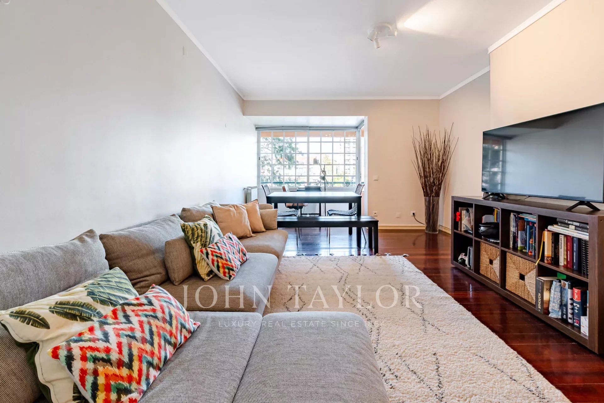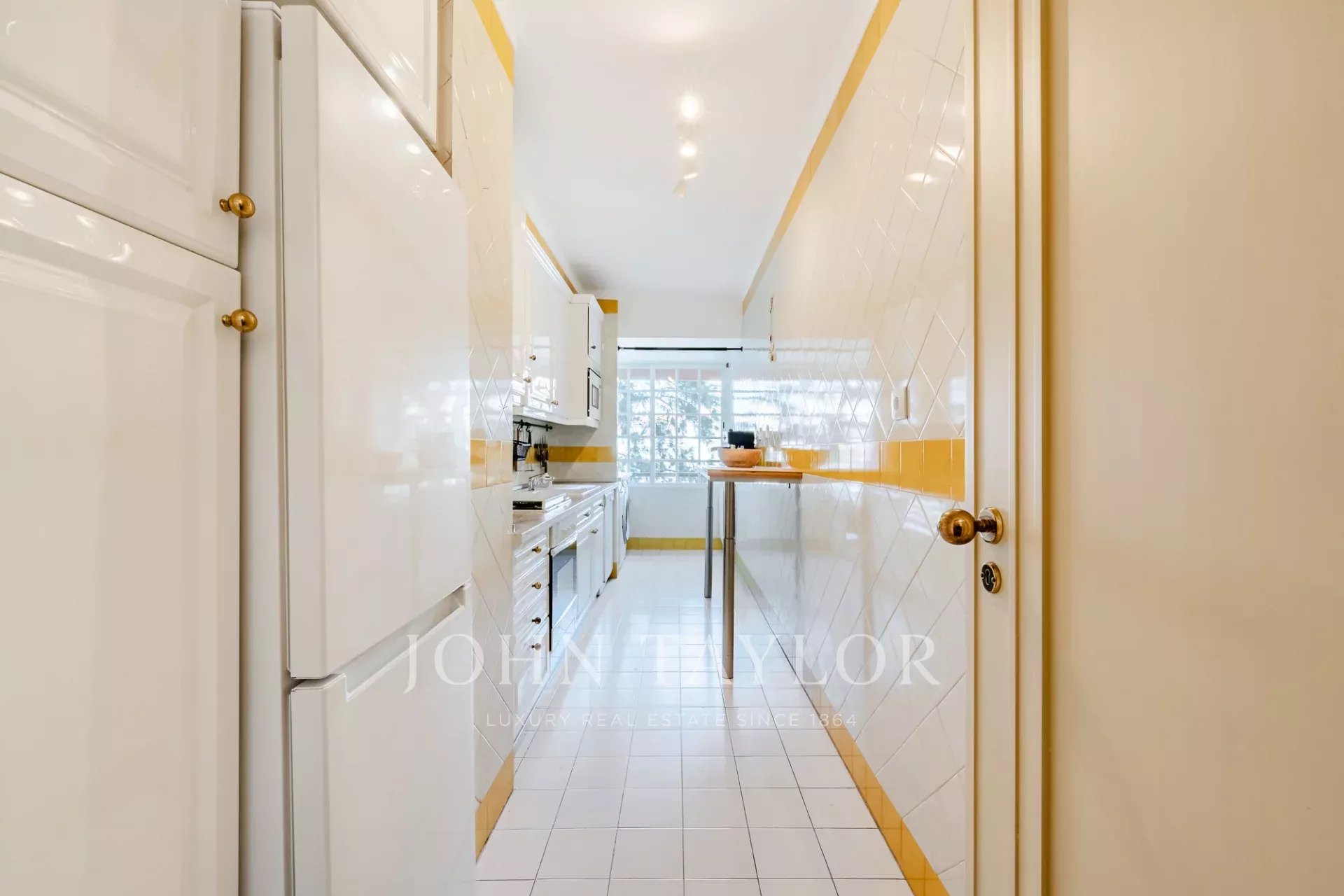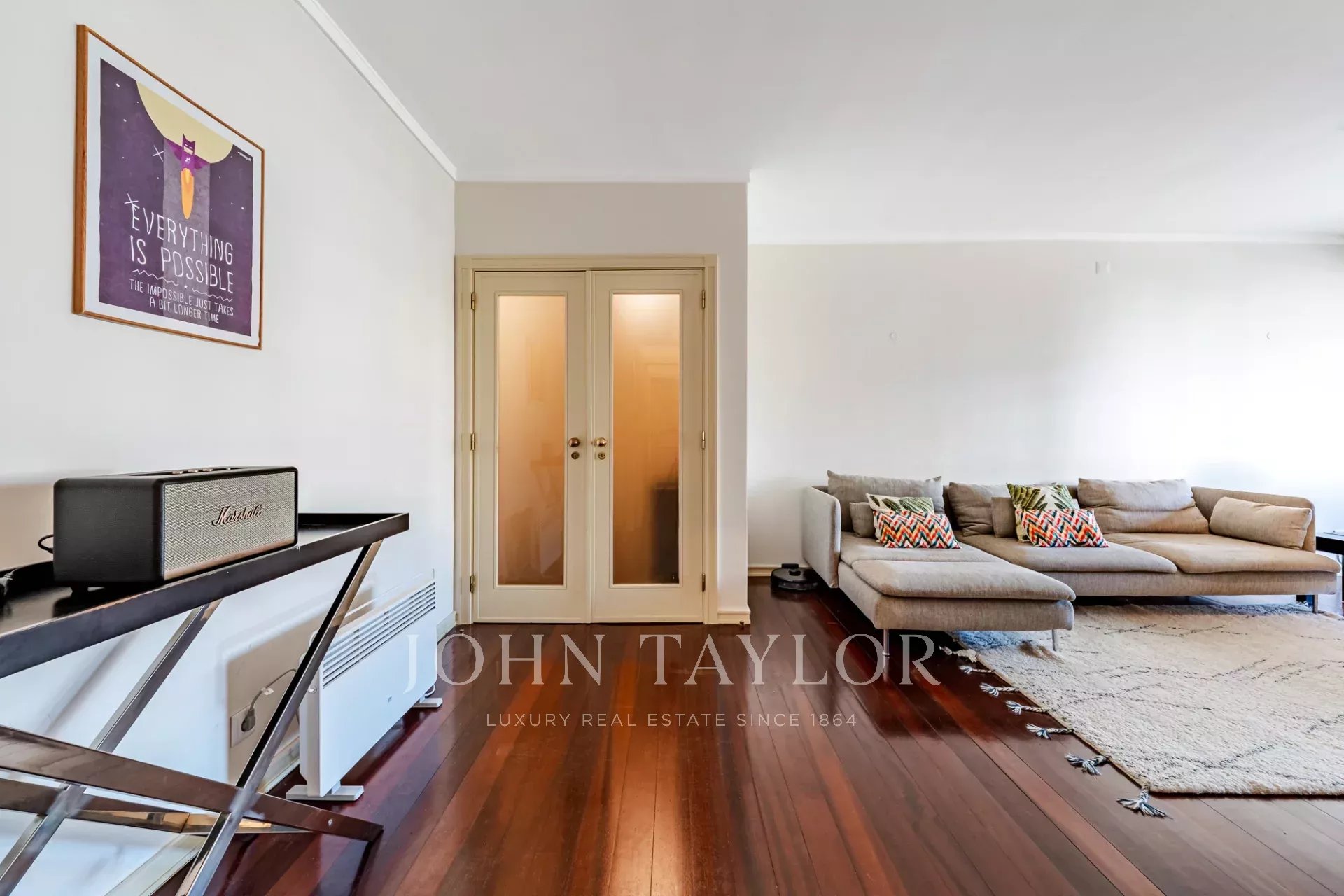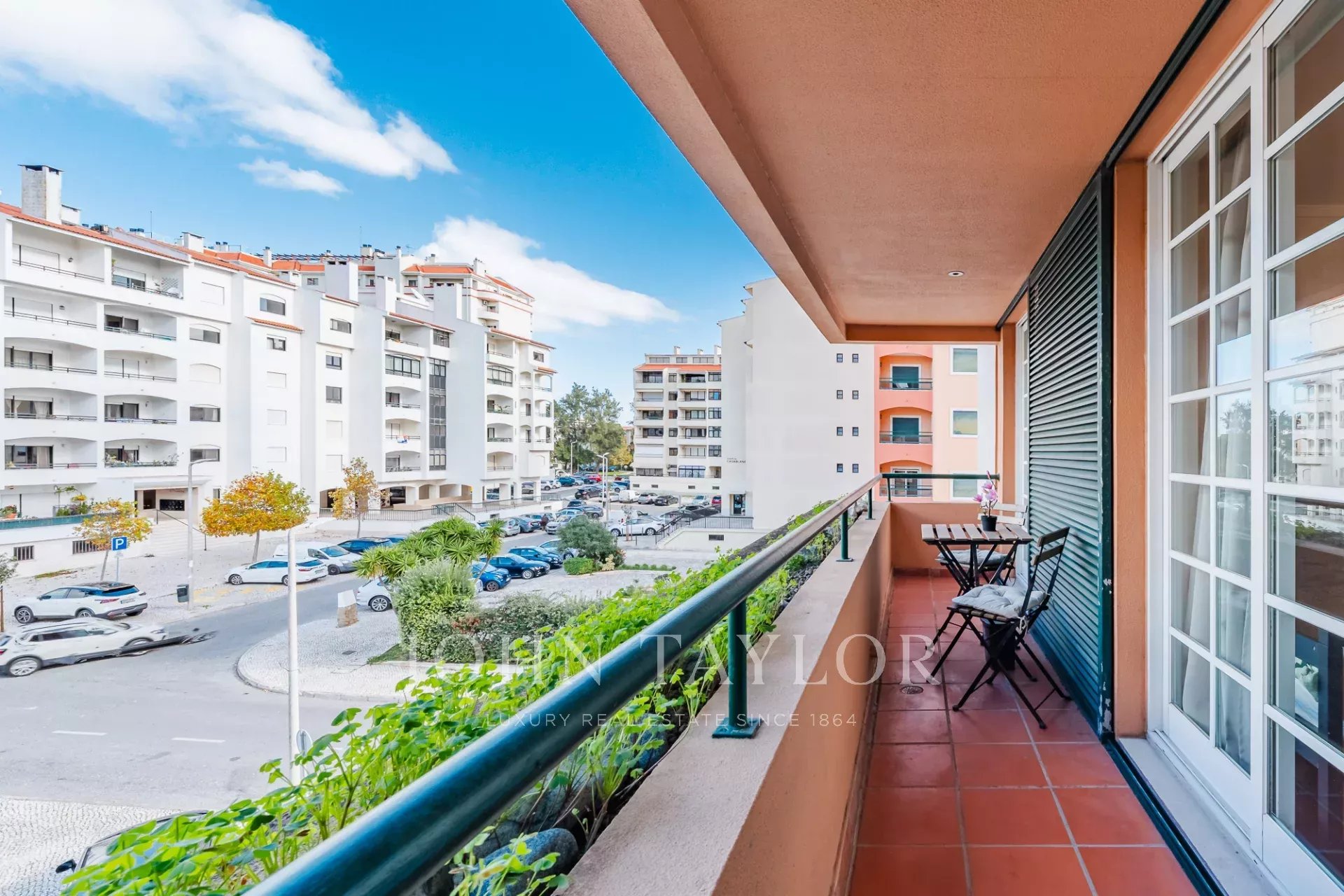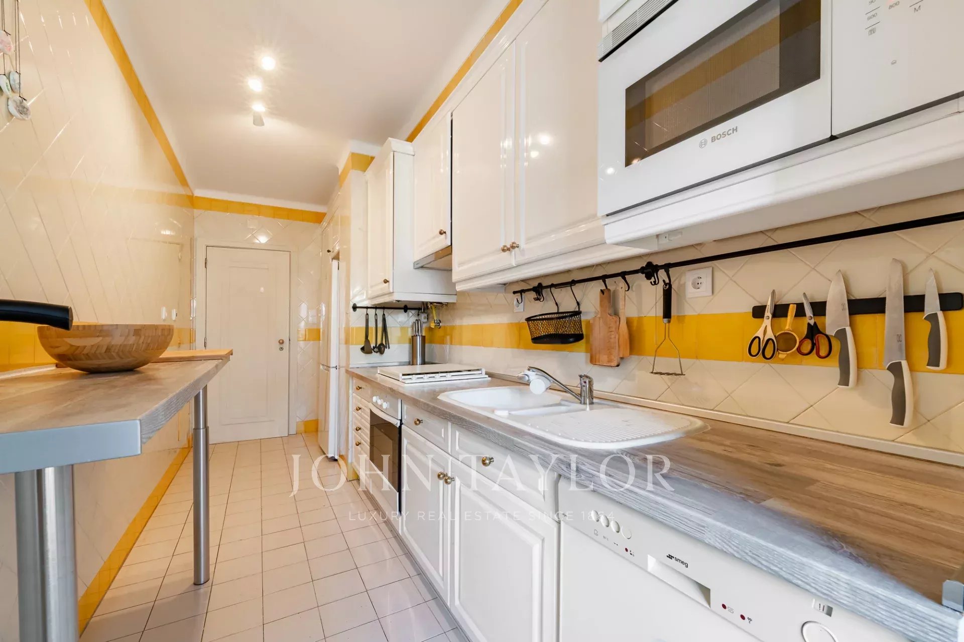 En el corazón del prestigioso Bairro do Rosário en Cascais, este apartamento de 94 m² y dos dormitorios se encuentra dentro de un condominio privado que ofrece amplias comodidades y hermosos jardines.