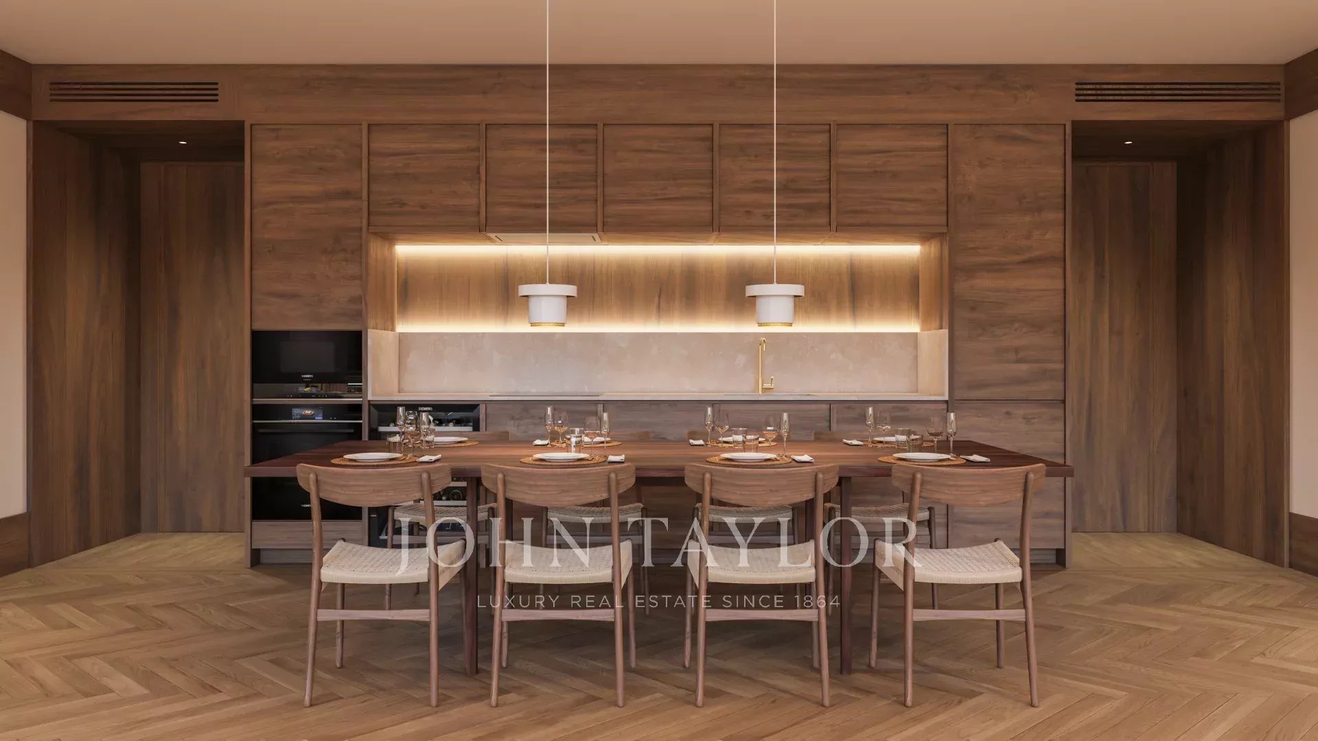 El apartamento dispone de 2 amplias suites, una cocina abierta totalmente equipada, y una sala de estar y comedor combinada que da acceso a una generosa terraza y balcón con piscina. Incluye también un aseo y una despensa o lavandería.