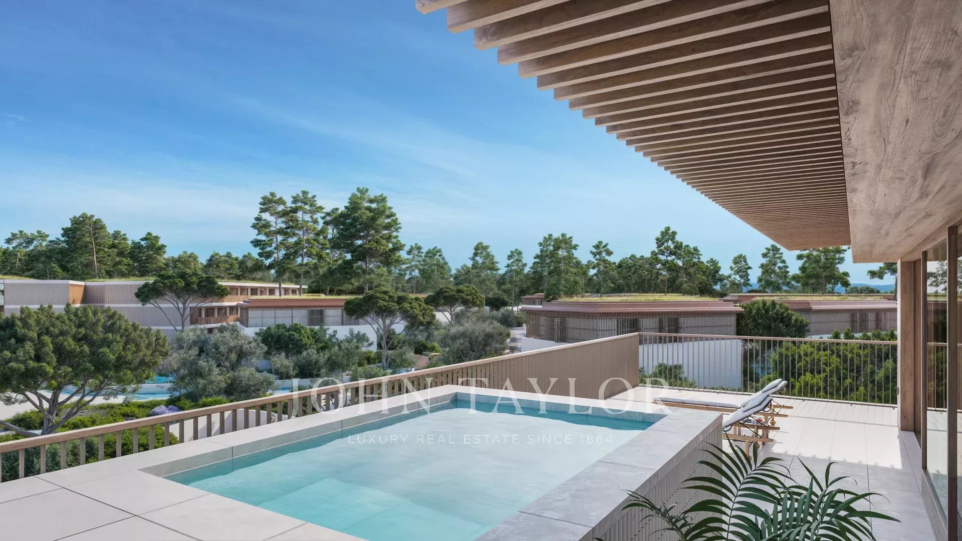 El resort se encuentra actualmente en fase de desarrollo y contará con un lujoso hotel de 5 estrellas, 37 villas frente al mar y 71 apartamentos modernos, todos diseñados con los más altos estándares de calidad. Las comodidades incluyen recepción 24 horas, aparcamiento subterráneo, campos de padel y tenis, un spa, piscinas de agua salada, un club de playa, un club infantil, un gimnasio y un helipuerto. Está también a solo 5 minutos del prestigioso Troia Golf Club.