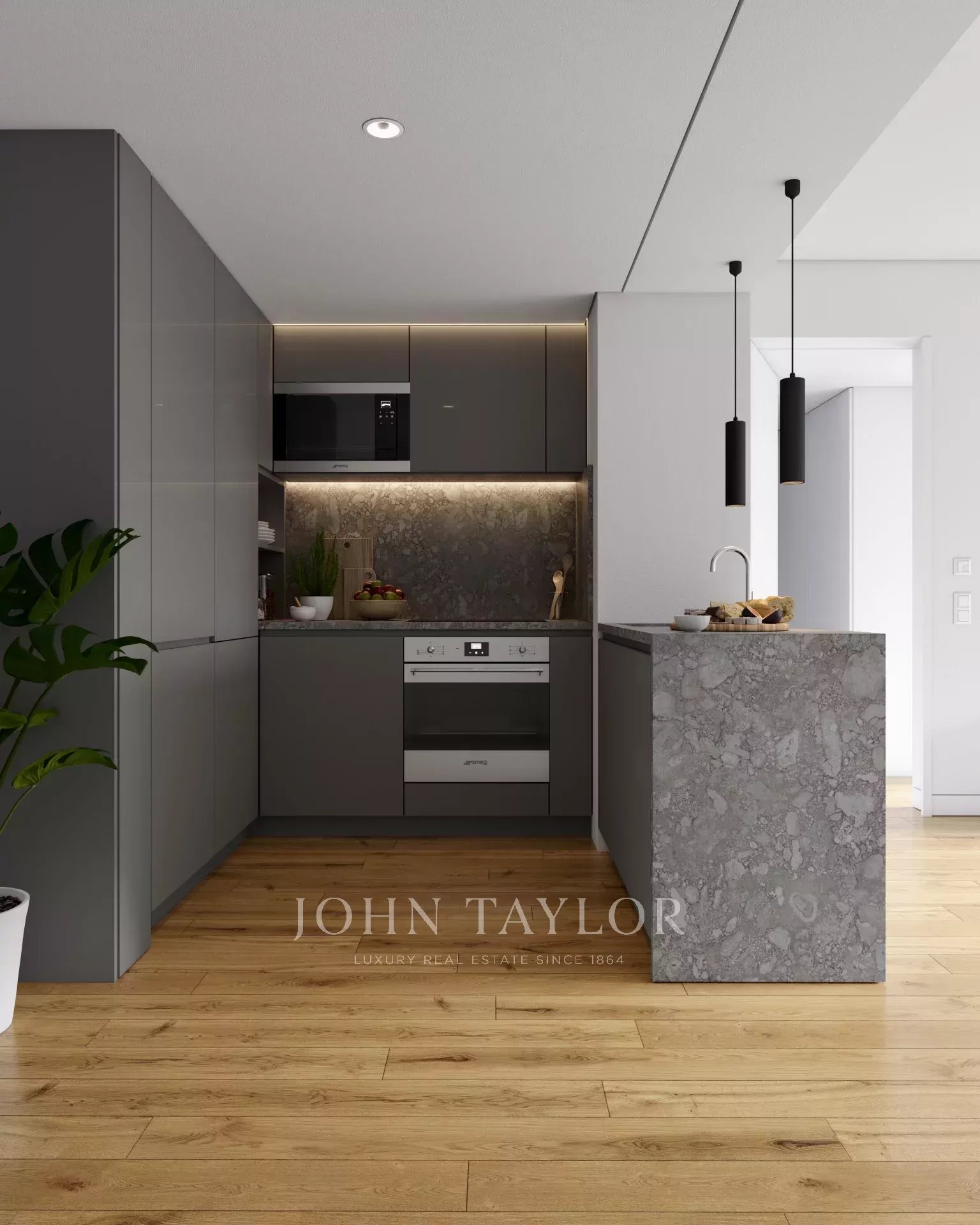 Piso nuevo de 2+1 dormitorios con 116 m2 de área bruta privada, con 2 suites y una oficina, aparcamiento, aire acondicionado, cocina totalmente equipada, suelos de madera y ventanas de doble acristalamiento, con acabados de alta calidad, revestimientos y materiales.