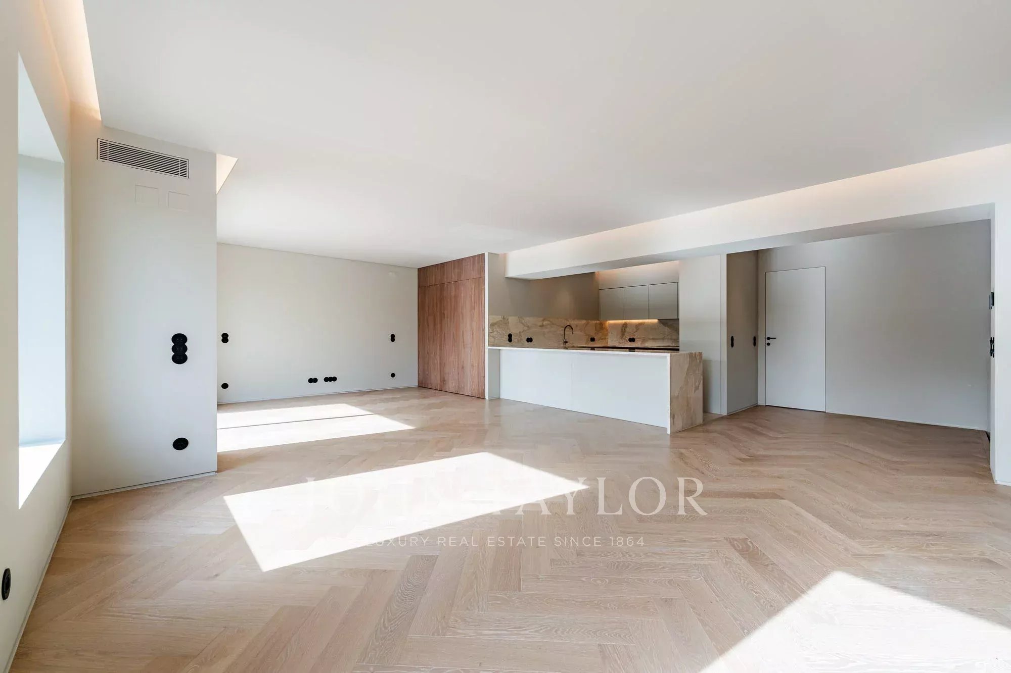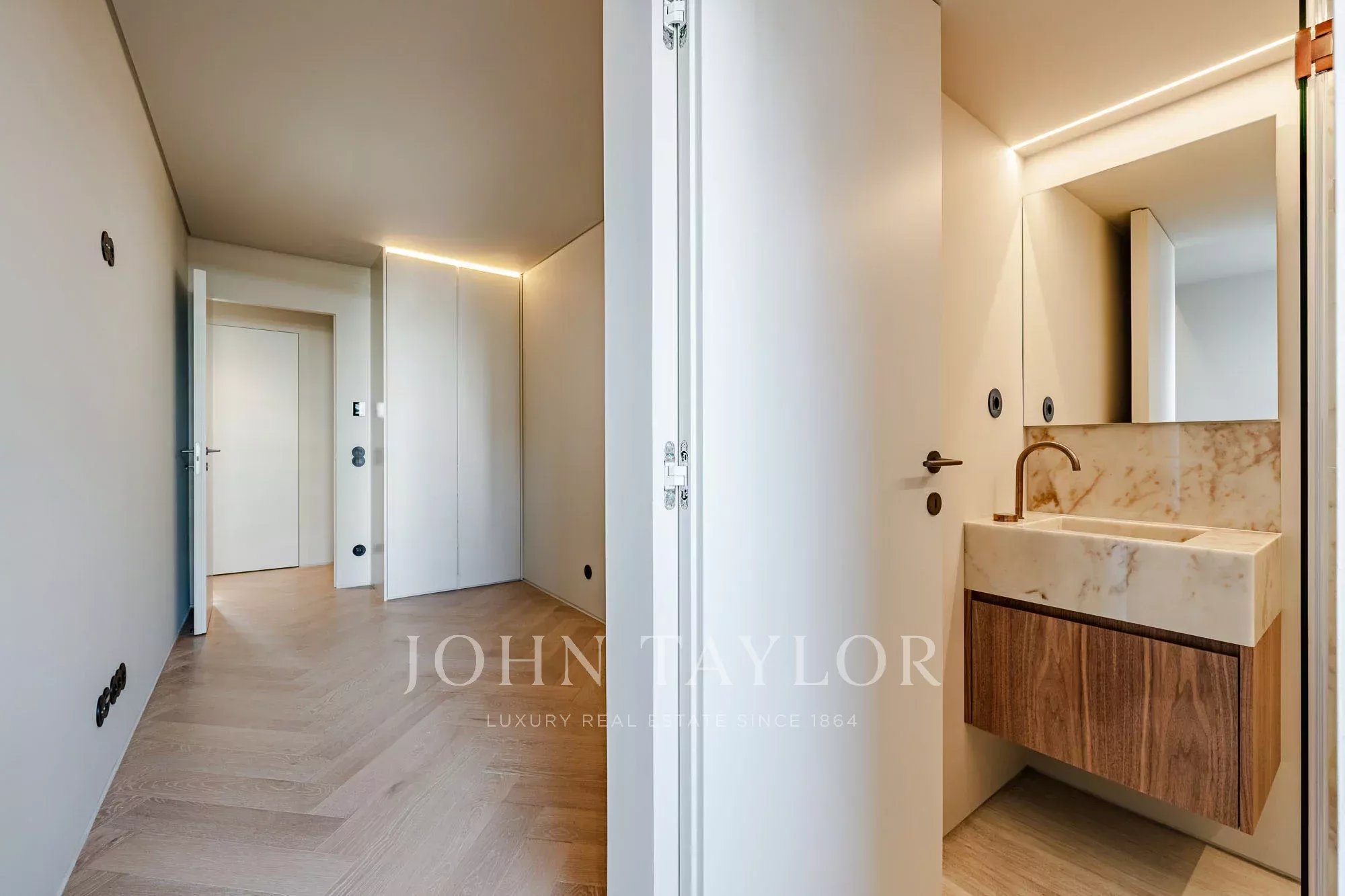 Las dependencias privadas comprenden una generosa suite principal de 27 m2 que ofrece espacio, comodidad e intimidad, complementada por otros dos dormitorios en suite. Todo el apartamento dispone de calefacción por suelo radiante, lo que garantiza el confort térmico durante todo el año.