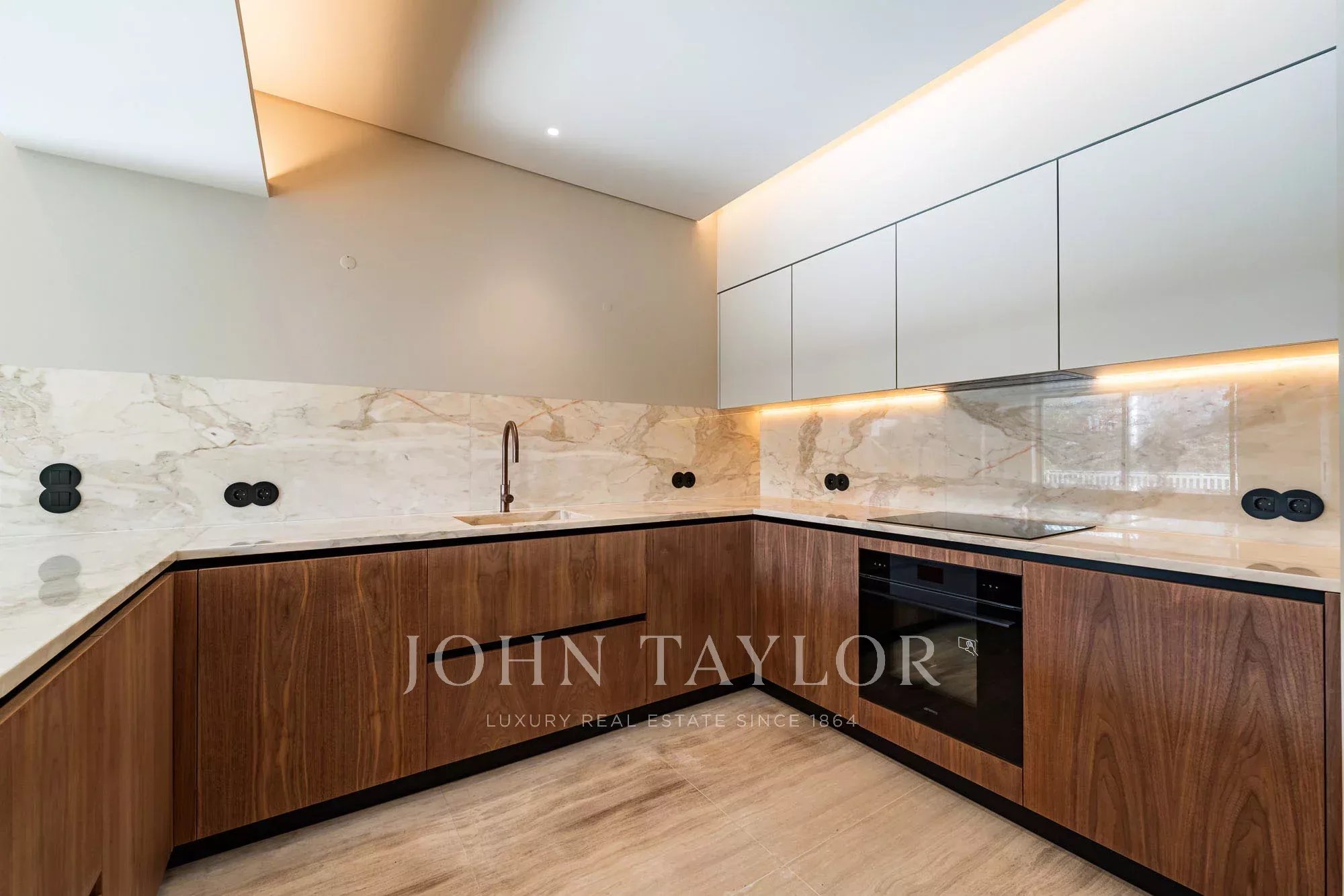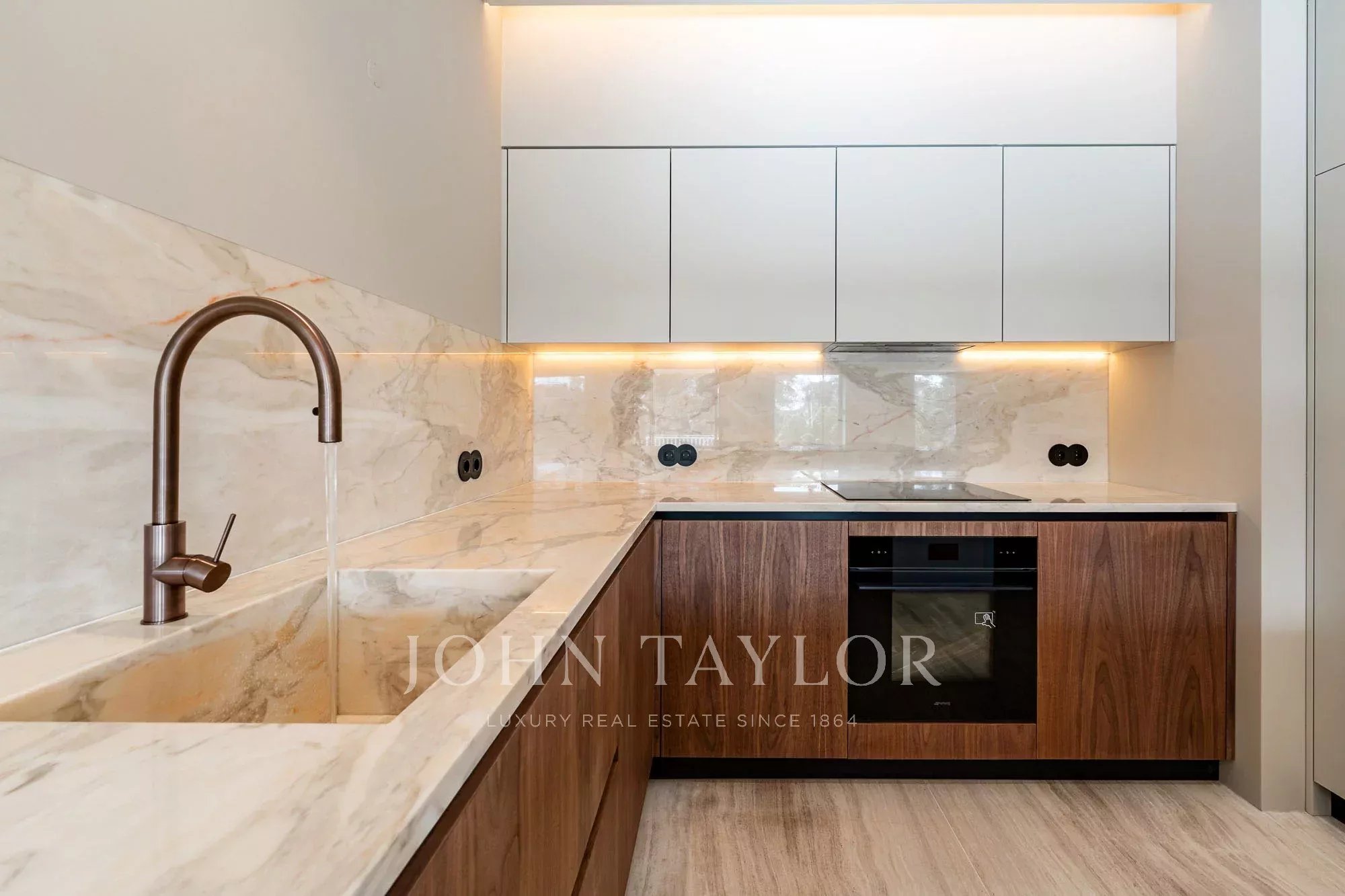 Diseñada con líneas limpias y contemporáneas, la cocina está equipada con electrodomésticos SMEG integrados, que garantizan una excelente calidad y rendimiento. La iluminación LED integrada bajo los armarios superiores y en el techo resalta los materiales y crea un ambiente moderno y refinado, haciendo que el espacio sea a la vez elegante y muy funcional para la vida cotidiana.
