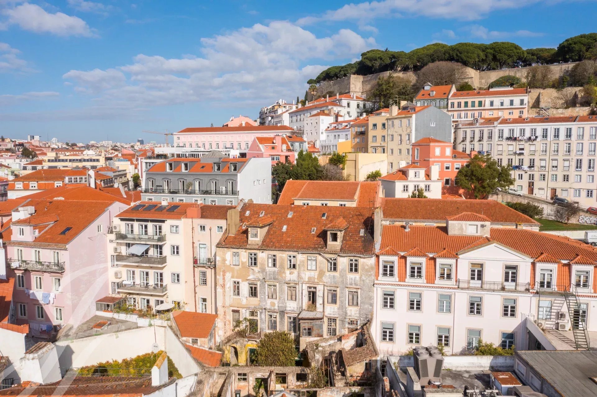 Situado en el patio de un edificio típico pombalino en la ladera occidental del Castelo de S. Jorge, este apartamento dúplex ofrece un jardín privado y entrada independiente.