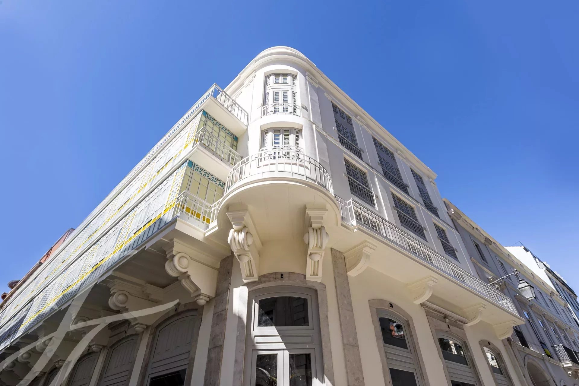 Este edificio emblemático de 1920 está ahora totalmente renovado con 10 lujosos apartamentos con el mismo aspecto que la arquitectura anterior en un magnífico proyecto del arquitecto Samuel Torres de Carvalho.