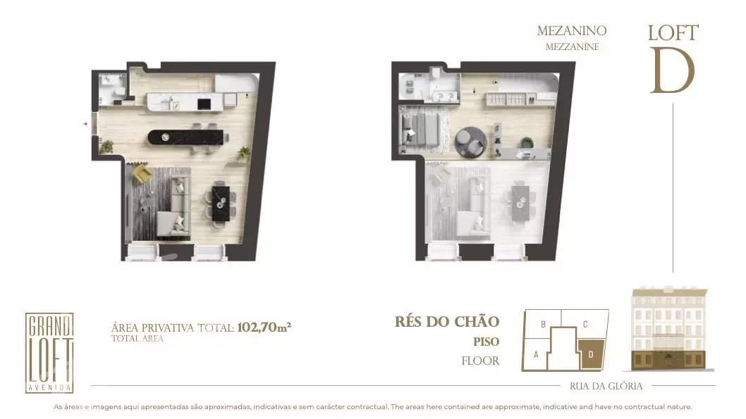 Este Loft de un dormitorio tiene una superficie bruta cubierta de 102,70 m2 y vistas a la típica Rua da Glória.