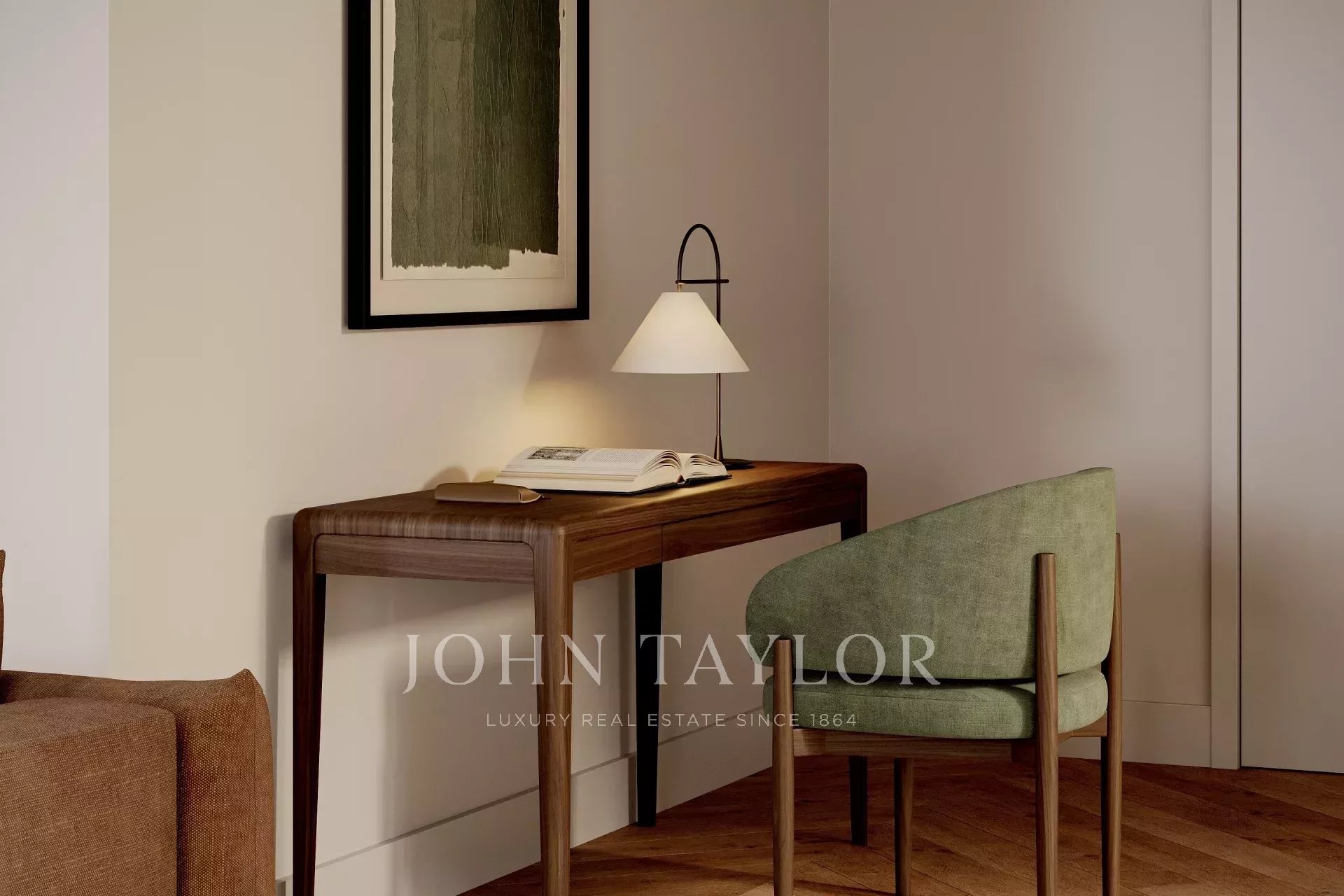 Los acabados de calidad incluyen suelos de madera maciza, baños de mármol, tonos neutros y detalles originales conservados en todo el edificio. La distribución es a la vez práctica y elegante, y está pensada tanto para vivir a tiempo completo como para estancias cortas.