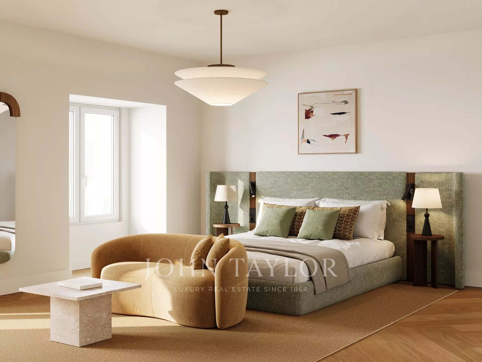 Situado en la última planta de la Casa Fanqueiros, un edificio del siglo XIX totalmente restaurado en el corazón del barrio lisboeta de Baixa, este dúplex de dos dormitorios ofrece amplios espacios, carácter arquitectónico y abundante luz natural en dos niveles cuidadosamente diseñados.