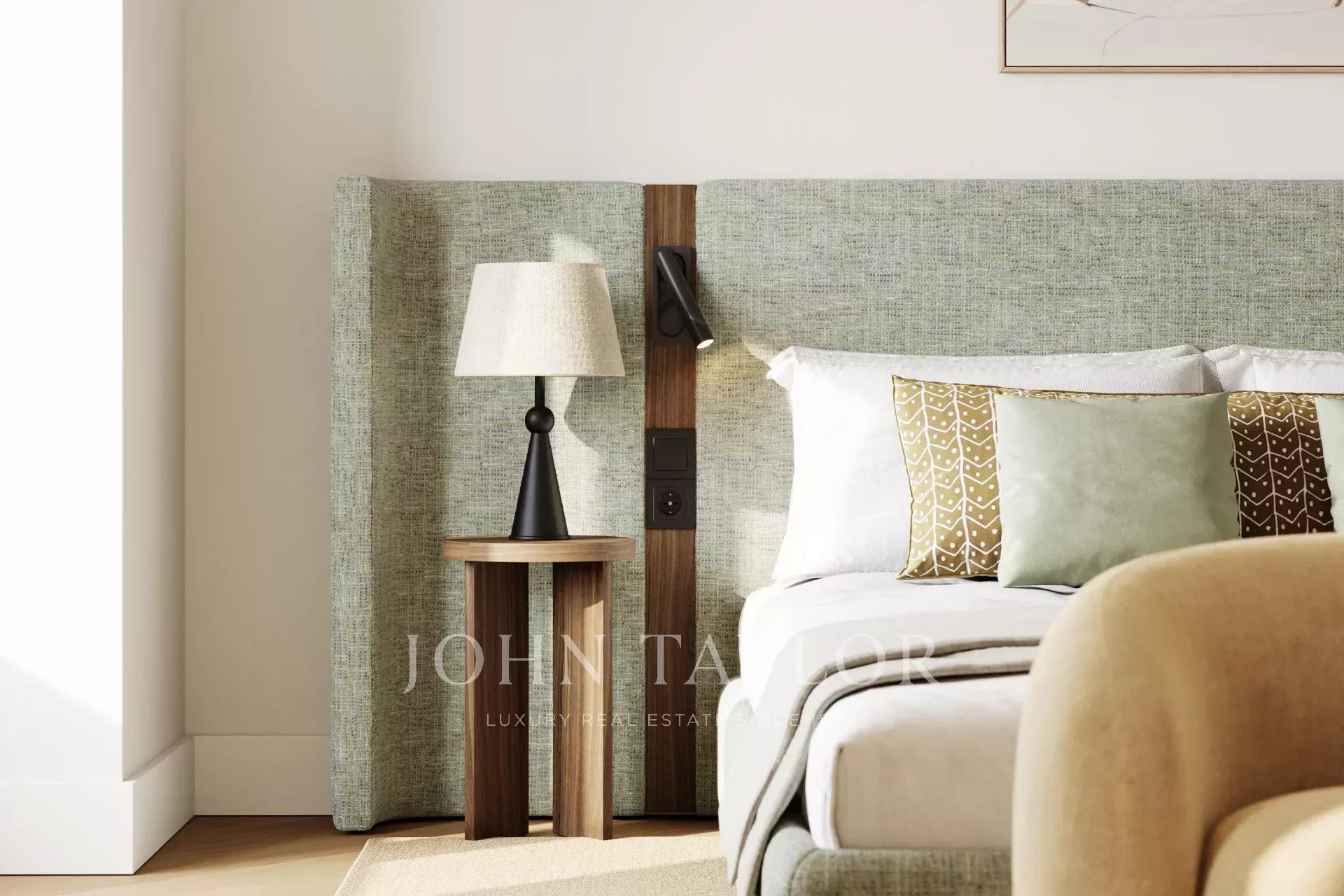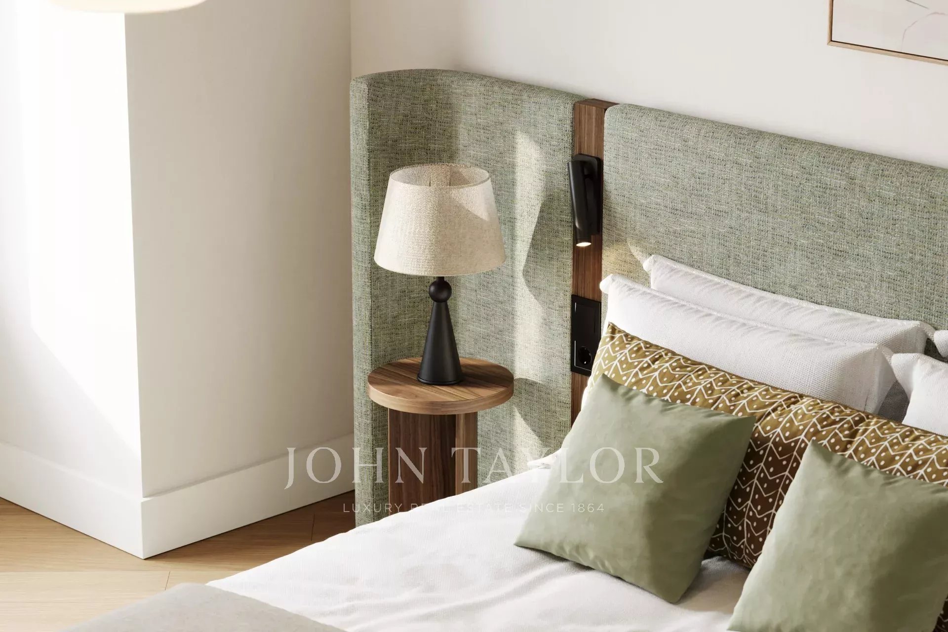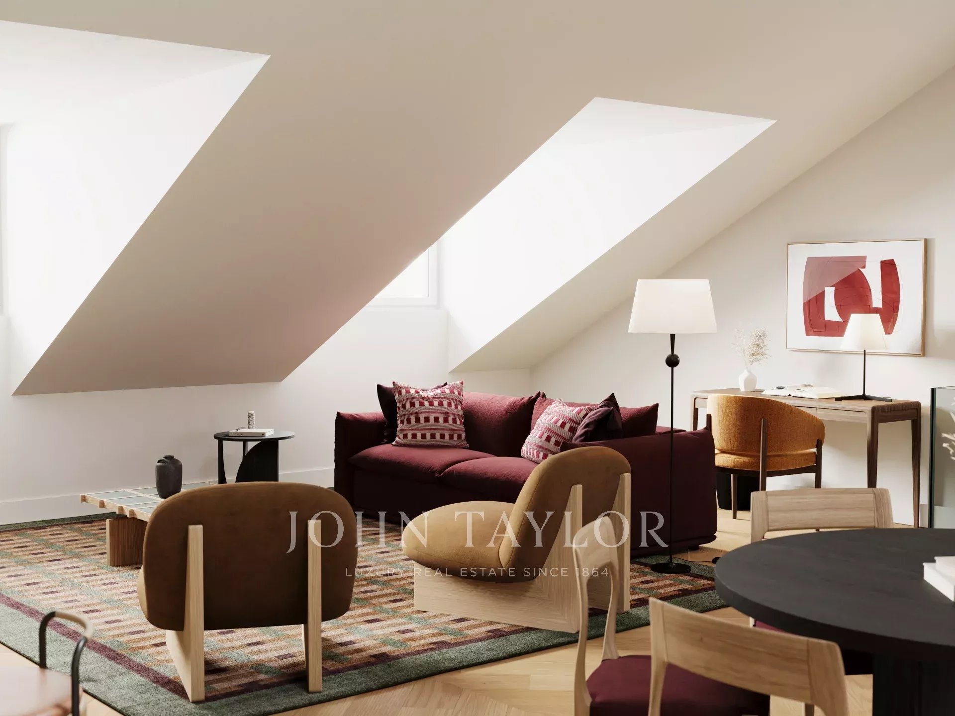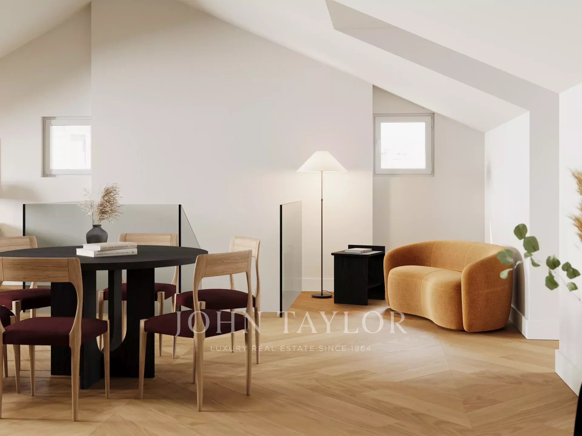 Con aproximadamente 184 m² de espacio interior y una notable altura de techo de 3,51 metros, este apartamento destaca por su escala y calidad. En la planta baja (5ª planta), le da la bienvenida un amplio vestíbulo que conduce a dos dormitorios en suite, cada uno con armarios empotrados y uno de ellos con acceso a una terraza privada. Una escalera conduce a la planta superior, donde encontrará un amplio salón-comedor con cocina americana y una segunda terraza con impresionantes vistas a la ciudad y al río.