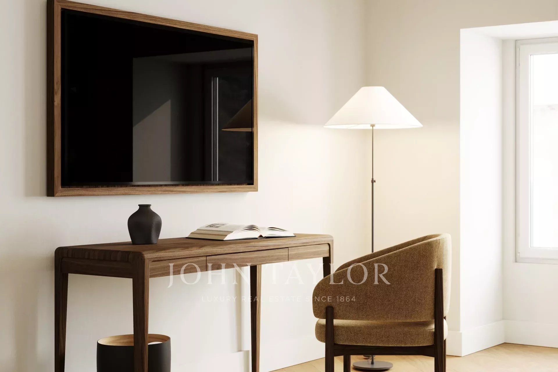 Los acabados de alta calidad incluyen suelos de madera maciza, baños de mármol y una paleta de colores neutros, mientras que los detalles arquitectónicos originales se han conservado en todas partes. La distribución es a la vez práctica y refinada, diseñada para vivir a tiempo completo o como residencia de lujo para estancias más cortas.