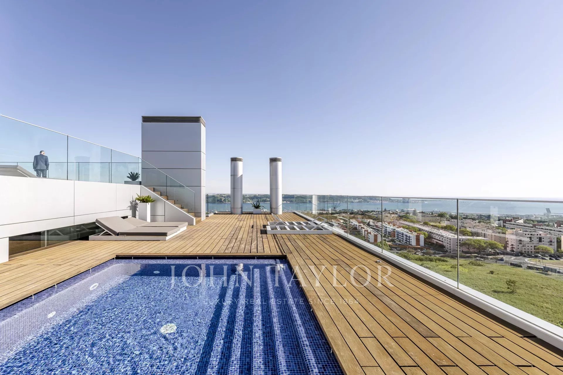 En la planta superior con vistas panorámicas de Lisboa, se puede disfrutar de 2 piscinas con agua calentada por paneles solares, sauna, gimnasio, vestuarios y bar y sala de estar.
