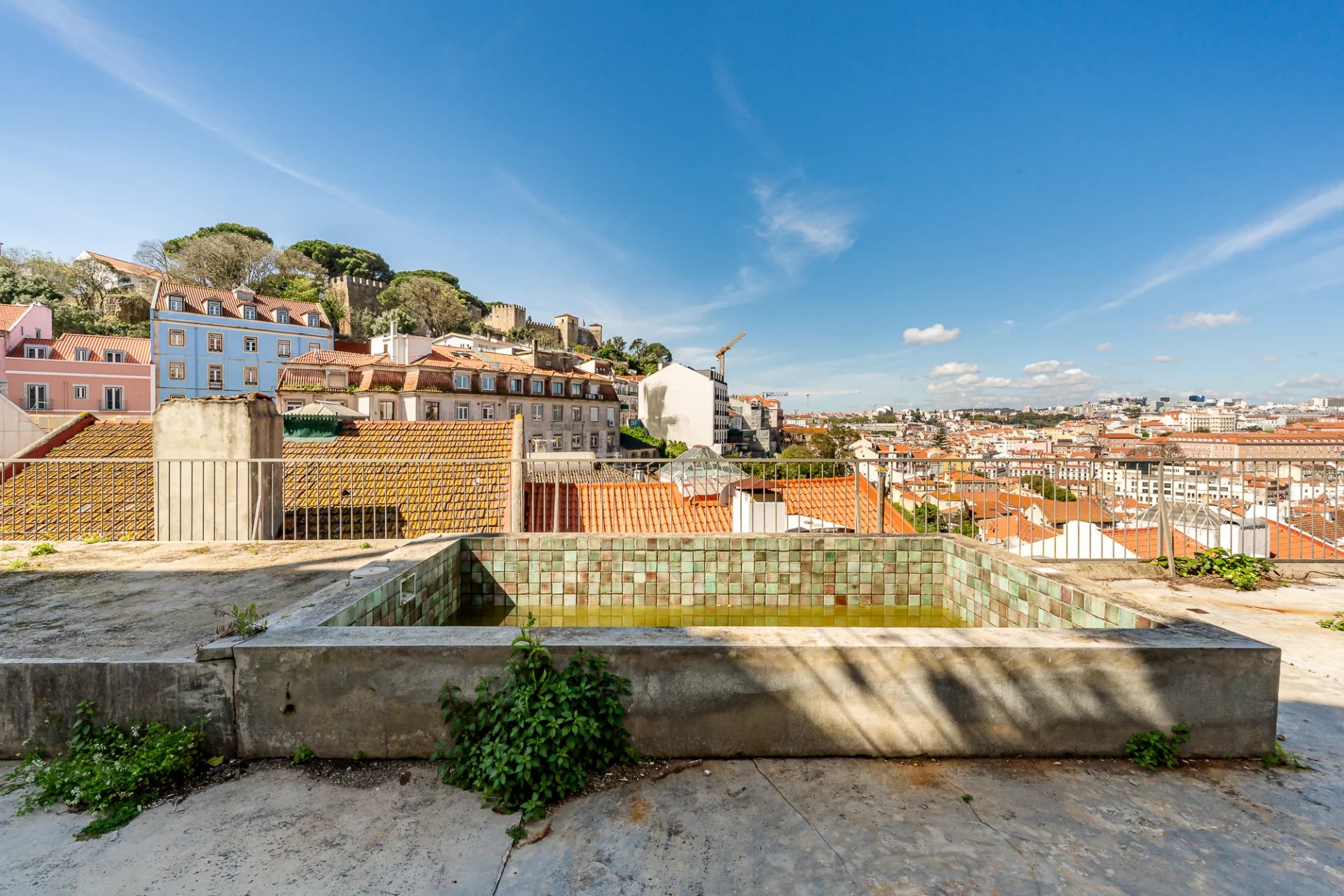 Este dúplex de 300 m², situado en pleno corazón de la Graça, es una oportunidad única para devolverle la vida a una casa con alma, con un generoso jardín privado de 170 m², piscina y unas vistas que quitan el aliento al Castillo de San Jorge y a los tejados de Lisboa.
