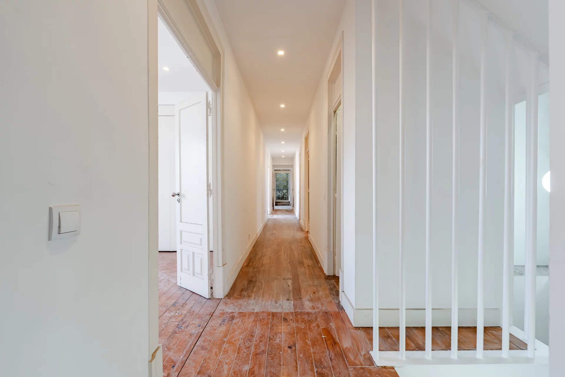 Ubicado en uno de los barrios más emblemáticos, con ese encanto tan particular que mezcla tradición y autenticidad, este piso combina la elegancia de antaño con un enorme potencial de renovación adaptado al gusto contemporáneo. Cuenta con tres amplias suites, todas con baño privado, salones y comedor con techos altos y grandes ventanales que dejan entrar la inconfundible luz de Lisboa, además de un rincón perfecto para despacho o biblioteca. La cocina, espaciosa y funcional, está pensada tanto para el día a día como para recibir a amigos al más puro estilo portugués. Los azulejos originales, pintados a mano, son una auténtica joya que da testimonio del carácter único de la vivienda.