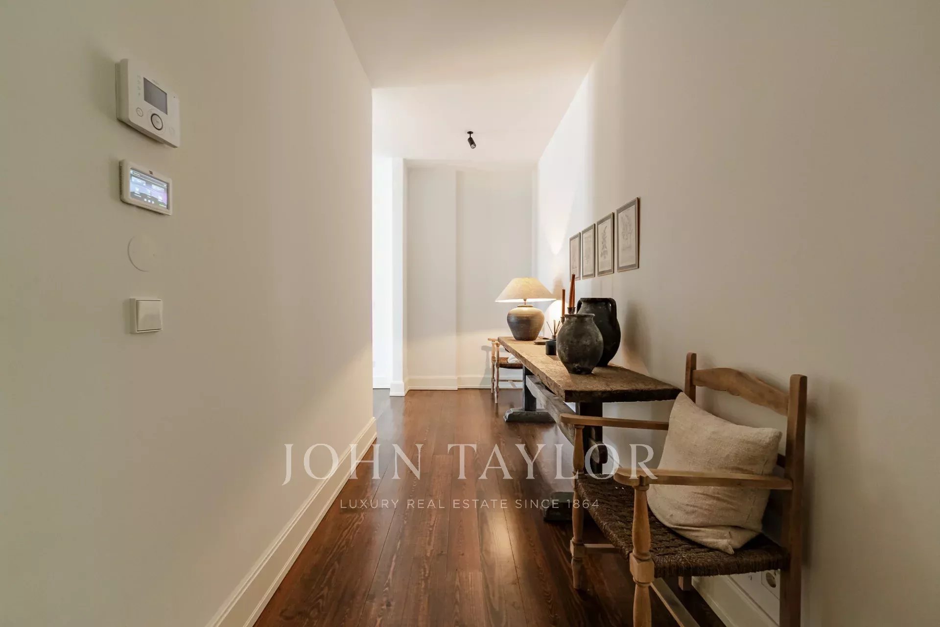 Los interiores combinan elementos clásicos con el confort contemporáneo, incluyendo suelos de madera maciza, acabados a medida y suelo radiante en todos los cuartos de baño, así como en el aseo de cortesía. Cada detalle refleja calidad y esmero, creando una atmósfera que equilibra el encanto clásico con una sofisticación moderna. La cocina está totalmente equipada y dispone de una luminosa zona de comedor y amplio espacio de almacenaje.