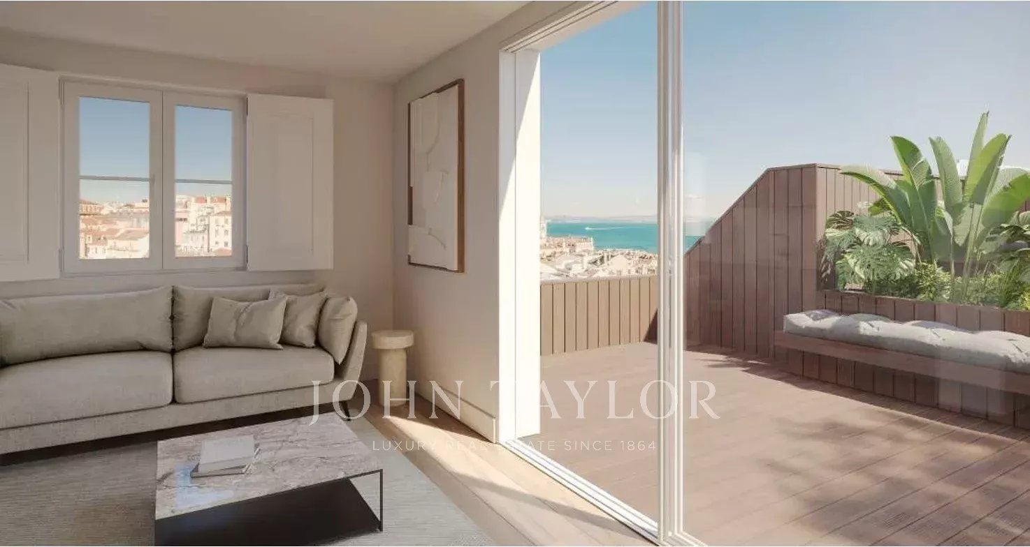 Este apartamento de tres dormitorios, uno de ellos en suite, ofrece unas vistas impresionantes del río Tajo y de la ciudad de Lisboa. Se encuentra en un emblemático edificio del siglo XIX situado en el barrio de Santa Catarina, un lugar muy codiciado en el corazón de la capital.