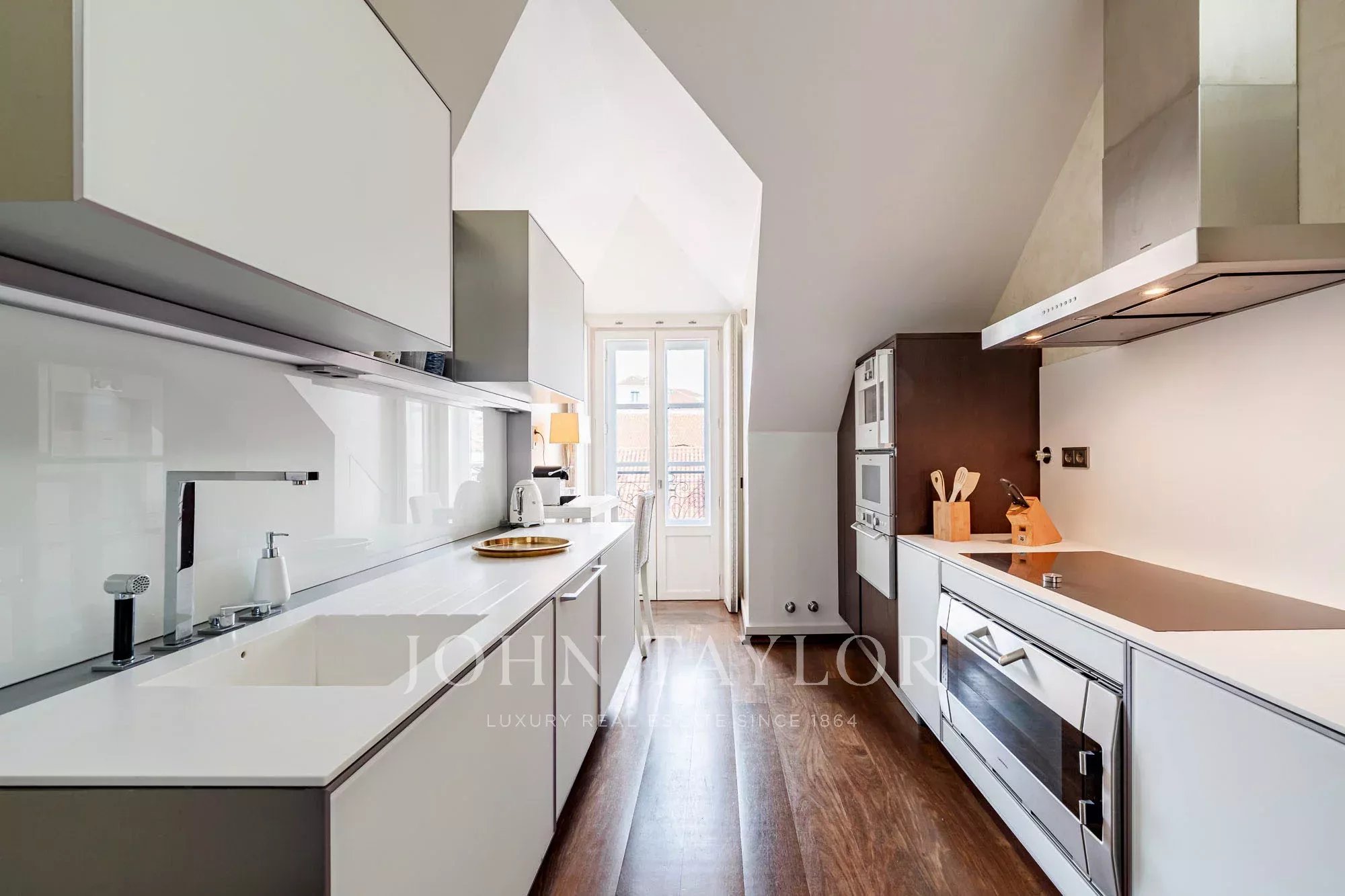 En el corazón de Lisboa, en la emblemática Rua Garrett, este ático dúplex de dos dormitorios con dos plazas de aparcamiento se define por su céntrica ubicación y una fuerte sensación de privacidad.