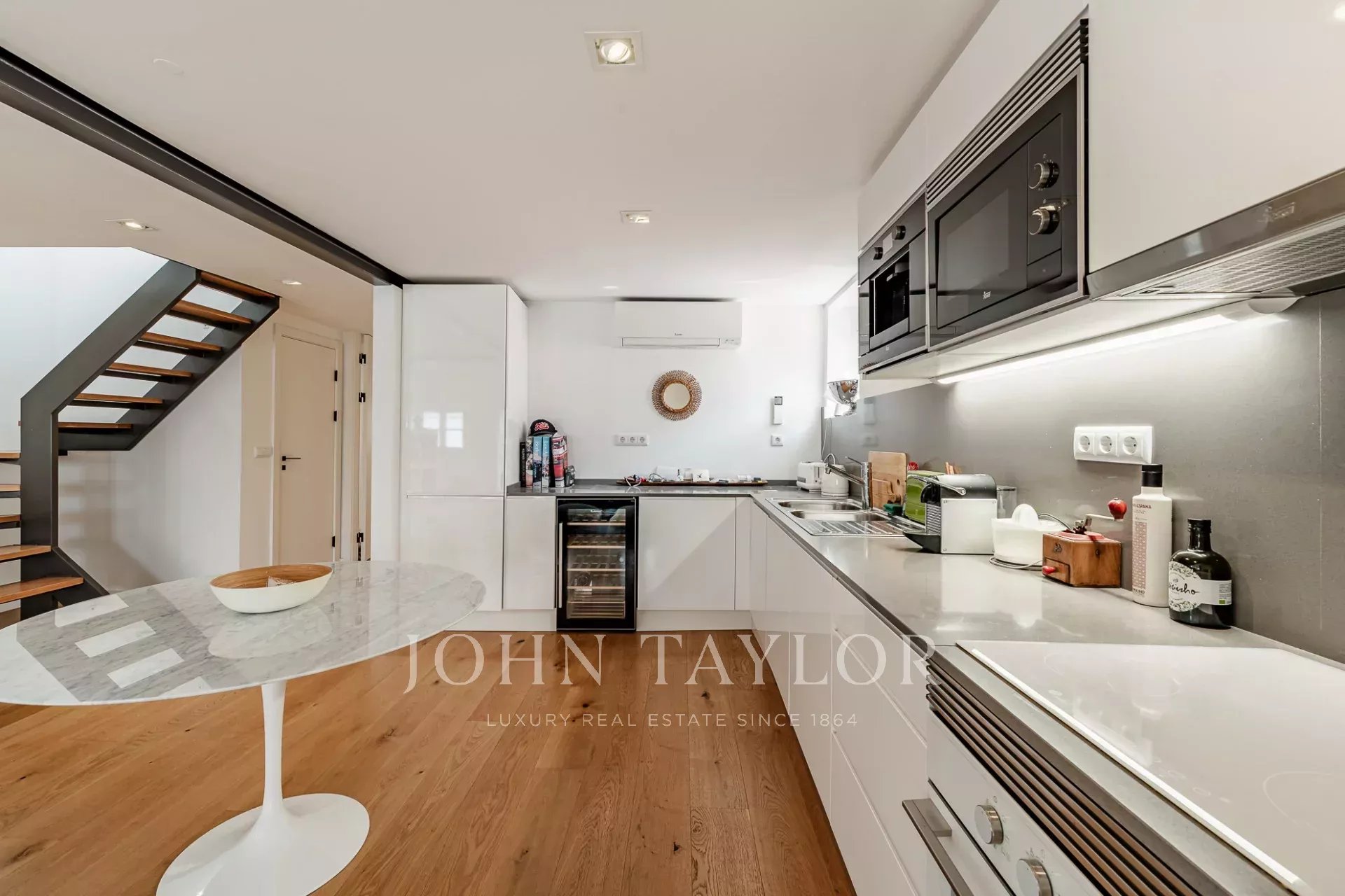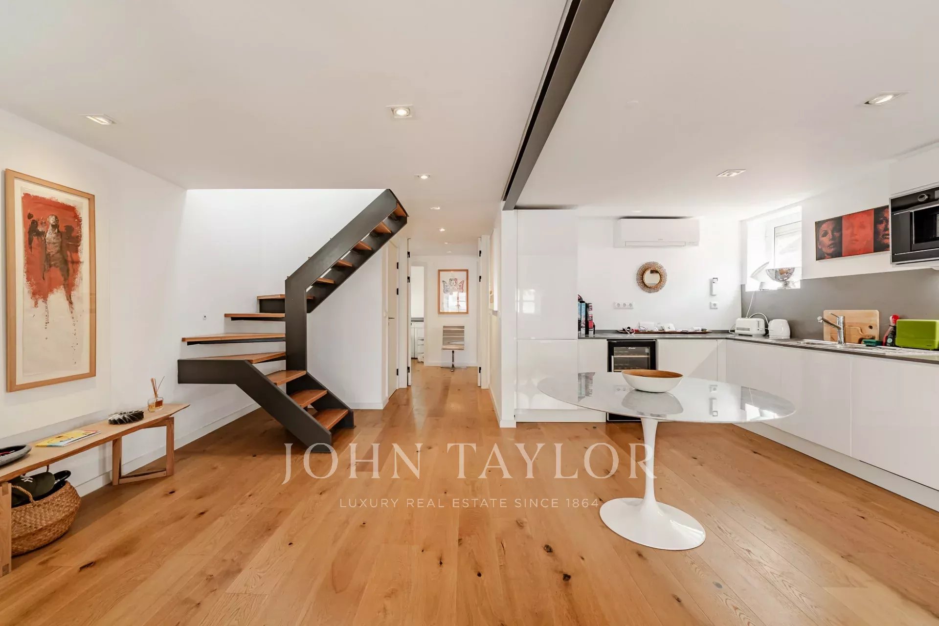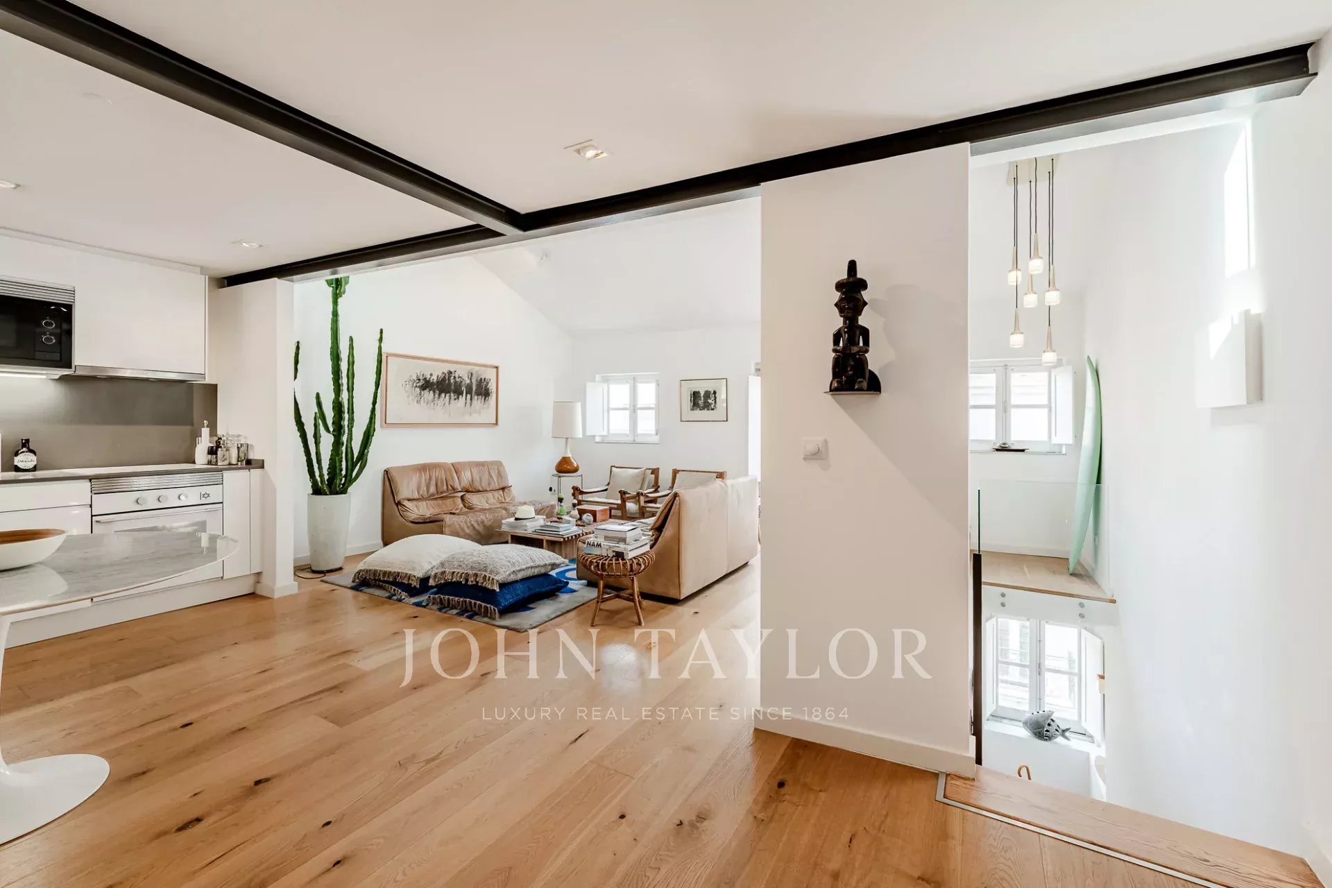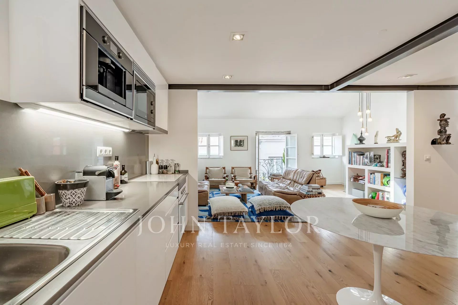 Situado en el último piso de un edificio clásico en el corazón del barrio de Santa Catarina, este dúplex totalmente renovado ofrece dos dormitorios y una armoniosa mezcla de encanto histórico y elegancia contemporánea.