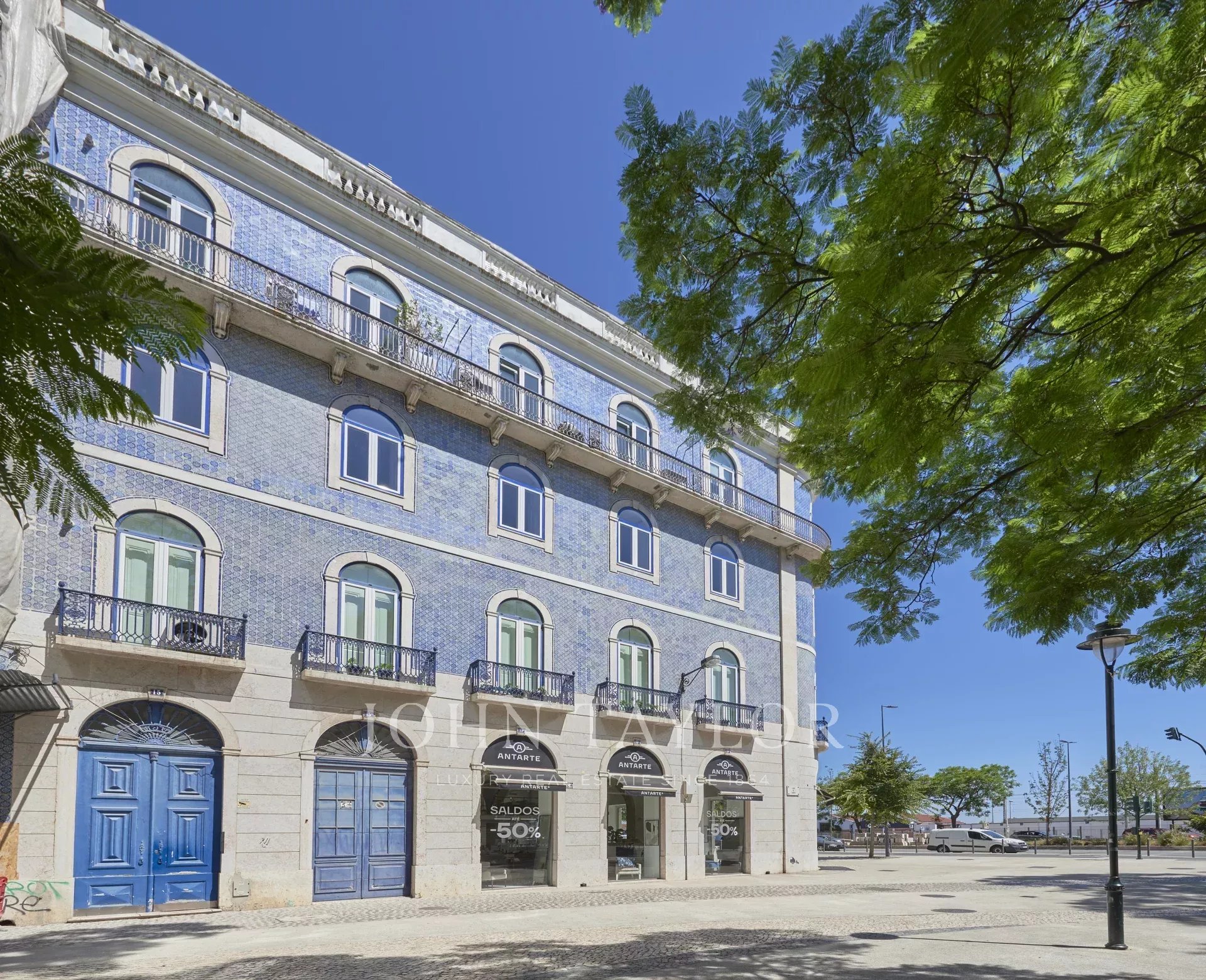 Descubra la elegancia pura en el corazón de Lisboa con este elegante apartamento dúplex de 598 m2, frente al río, situado en un edificio noble e icónico en Santos O Velho.