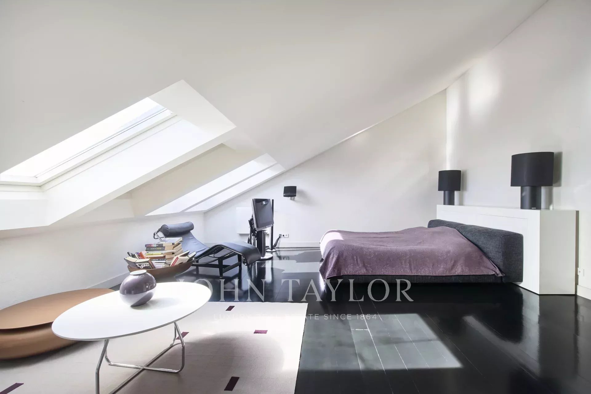 Este elegante dúplex de 4 dormitorios, que ocupa las dos últimas plantas de un edificio tradicional revestido de azulejos en el emblemático Largo de Santos, ofrece 252 m2 de refinada superficie habitable y vistas ininterrumpidas al río Tajo y al puente 25 de Abril.