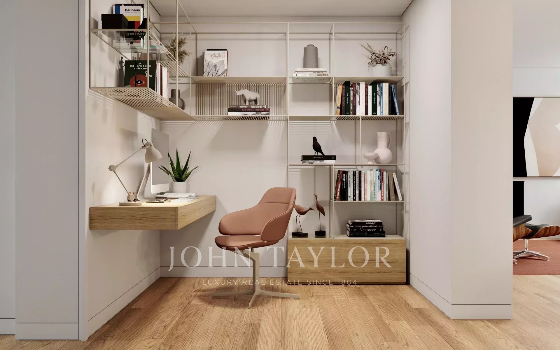 Piso nuevo de 2+1 dormitorios con 116 m2 de área bruta privada, con 2 suites y una oficina, aparcamiento, aire acondicionado, cocina totalmente equipada, suelos de madera y ventanas de doble acristalamiento, con acabados de alta calidad, revestimientos y materiales.