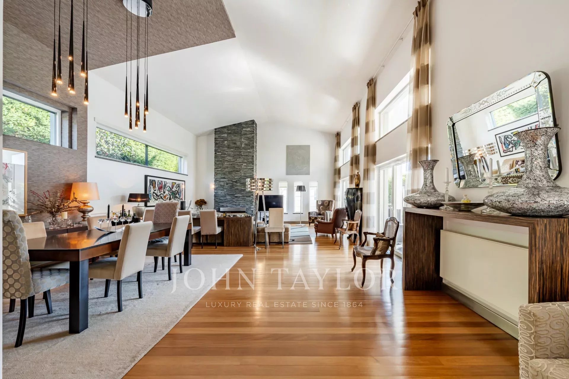 La planta baja le da la bienvenida con un impresionante salón con techos de más de 5 metros de altura, inundando el espacio con luz natural y creando una excepcional sensación de volumen. La moderna cocina está totalmente equipada y se abre al jardín y a la acogedora piscina climatizada, ideal para disfrutar todo el año. En este nivel también encontrará la suite principal, con acceso directo al jardín, y un aseo de invitados.