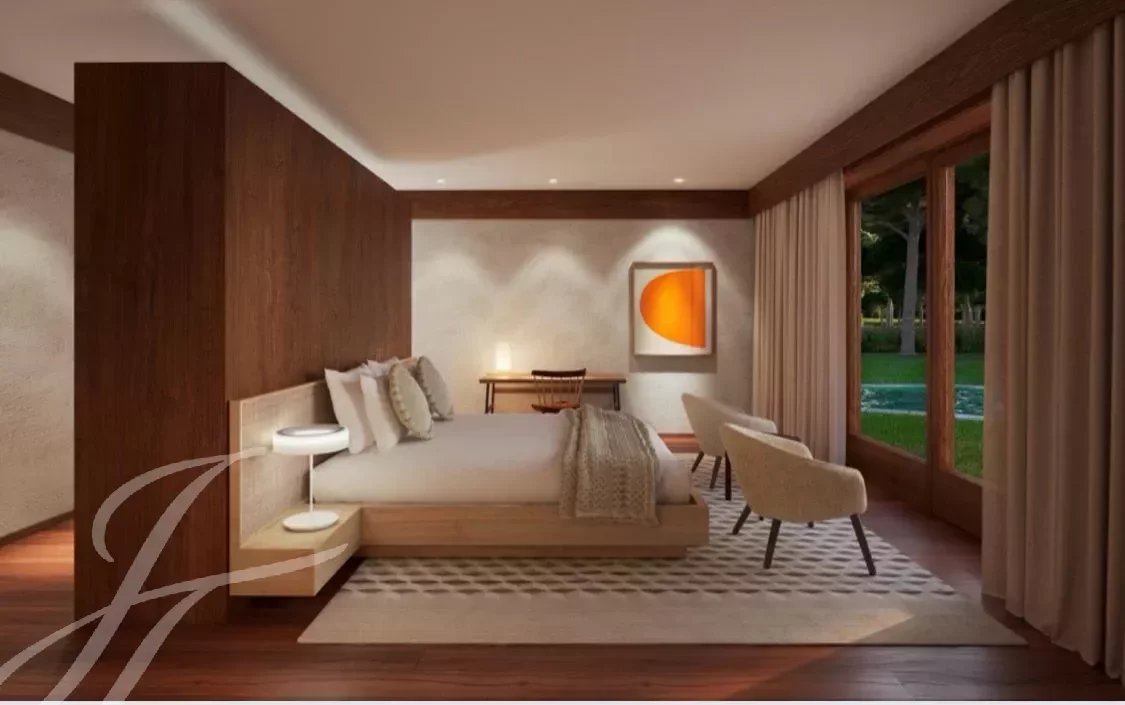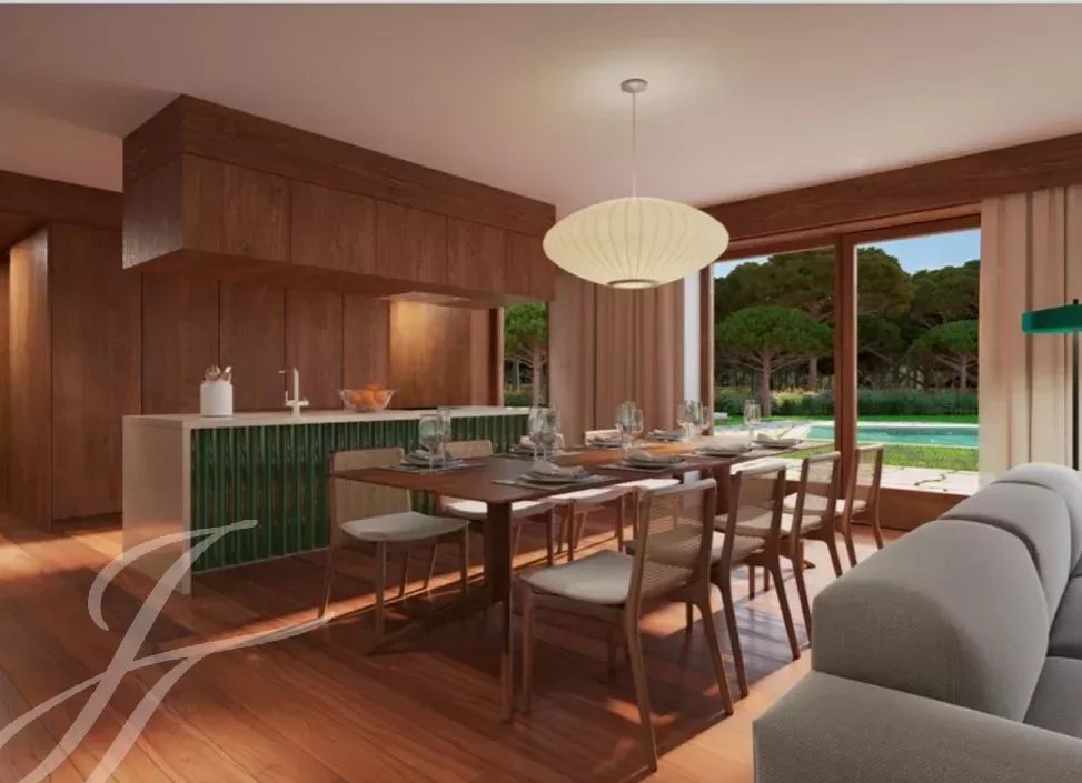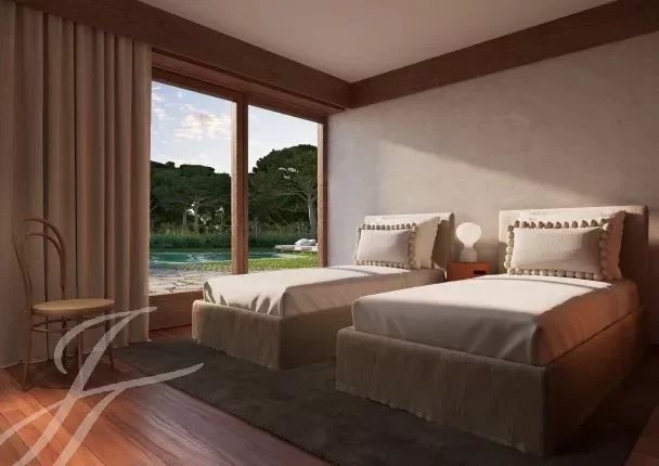 Concebido y diseñado por el renombrado estudio Promontório Arquitectos, este condominio de lujo cuenta con 18 villas independientes, debidamente integradas en la estructura paisajística del campo de golf y en el paisaje de pinares que lo rodea, que sirvió de inspiración para los materiales y colores utilizados, junto con la piedra, la cerámica vidriada y la madera natural.
