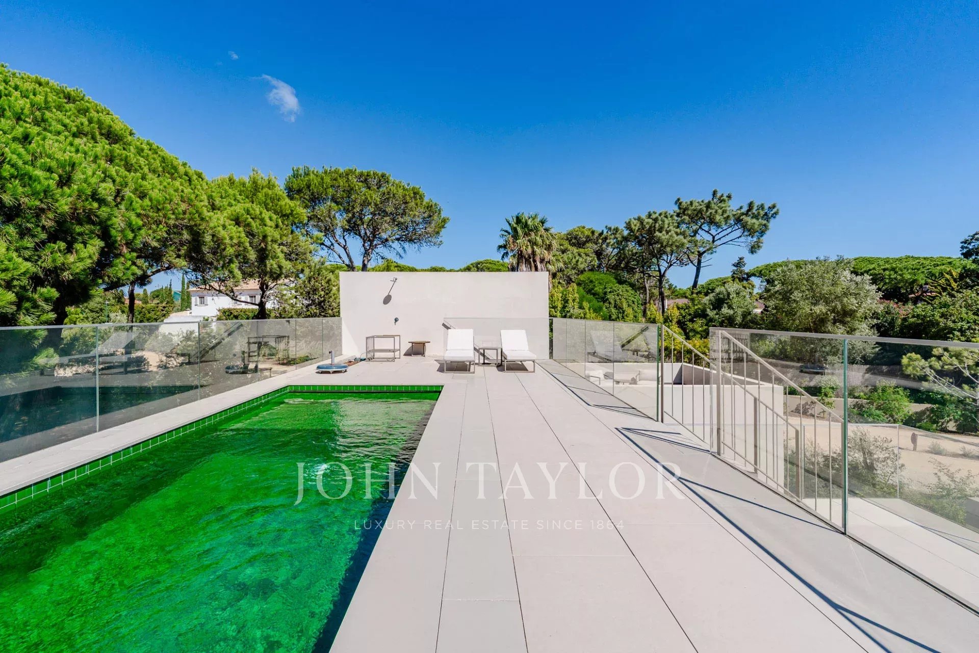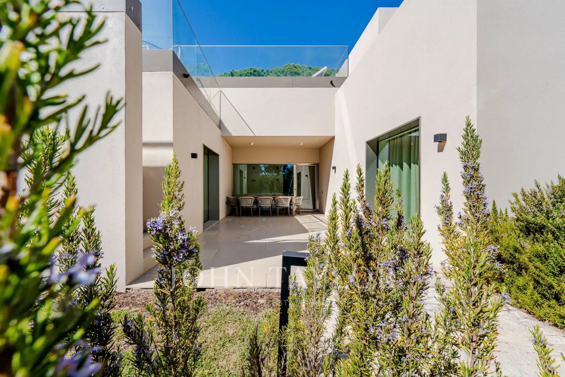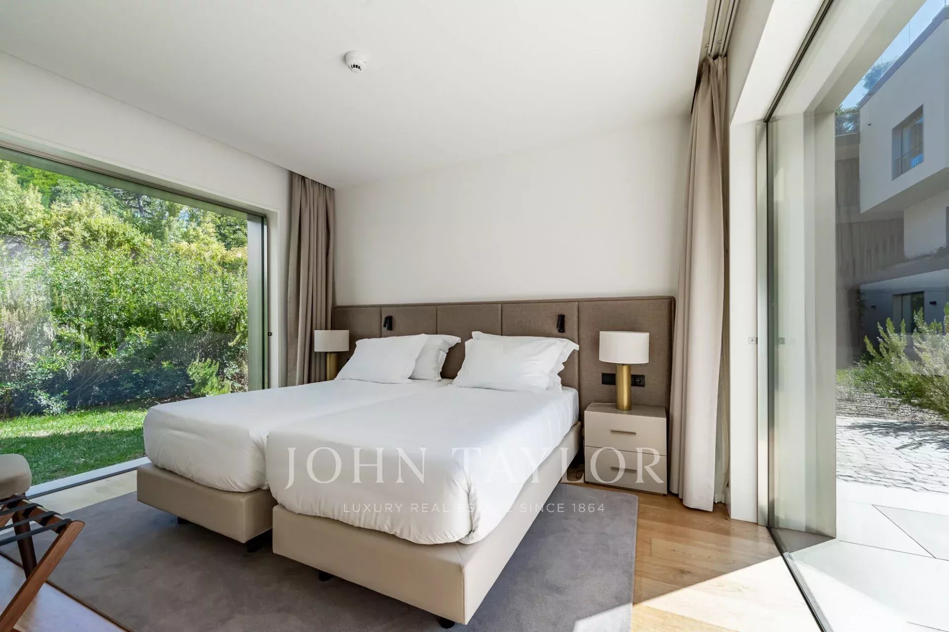 En la planta superior, la suite principal goza de un balcón privado y acceso directo a la terraza donde se encuentra la piscina.